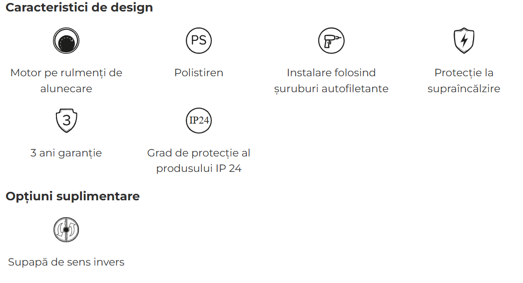 Ventilatorul include o protectie la supraincalzire, asigurand o functionare sigura si fiabila.