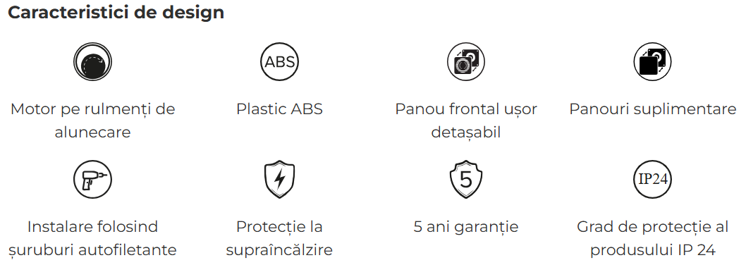 • Poate fi instalat pe perete sau tavan, conectat la canale sau puturi de ventilatie