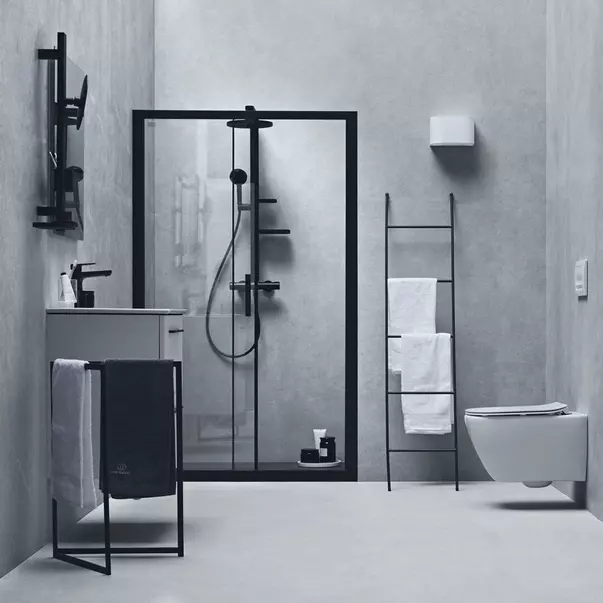 Coloana de dus cu baterie termostatata negru mat Ideal Standard Alu+ Detalii Coloana de dus cu baterie termostatata negru mat Ideal Standard Alu+ Ideal Standard Alu+ este o linie de dus pe care o asteptai: tanara, creativa si expresiva. Disponibila in trei finisaje cu luciu redus - Silk Black, Rosé si Silver - aceasta colectie imbina formele lungi, patrate cu cercuri perfecte pentru un aspect care este deopotriva izbitor si distractiv. Pe langa aspectul estetic, Alu+ prezinta detalii practice utile, inclusiv etajere asortate pentru cosmetice. Gama este, de asemenea, 100% fara crom, plumb si nichel si este fabricata din aluminiu reciclabil de inalta calitate, din care 84% este material reciclat. Sistemele de dus pot fi combinate cu bateriile de lavoar si bideu Cerafine O in aceleasi culori si stil.