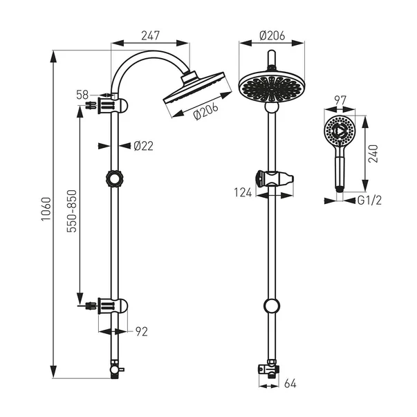 Coloana de dus negru mat Ferro Rondo fara baterie Detalii Coloana de dus negru mat Ferro Rondo fara baterie Designul produselor Ferro variaza de la moderne, cu inspiratie minimalista, pana la cele cu forme retro sau clasice. Varietatea presupune libertatea de a alege ceva care sa se potriveasca perfect cu ambientul pe care ti-l doresti. Ferro subliniaza si intregeste orice tip de interior, atat baia cu amenajare clasica, cat si pe cea cu amenajare moderna. Produsele Ferro au fost concepute cu gandul la client: asamblarea este foarte usoara iar materialul de calitate garanteaza durabilitatea.