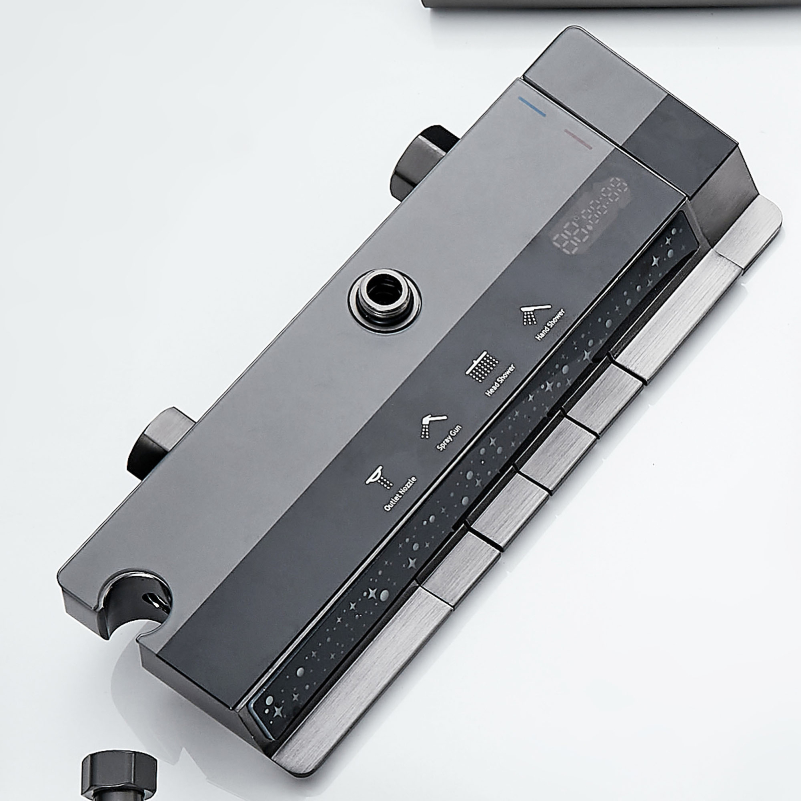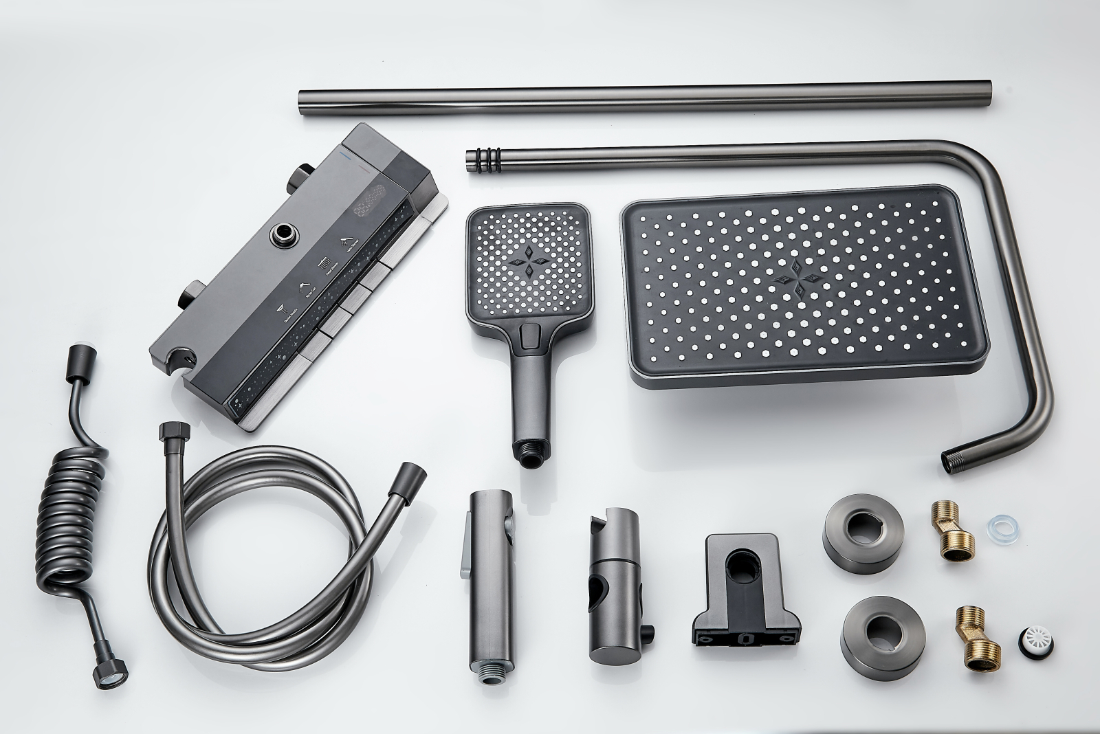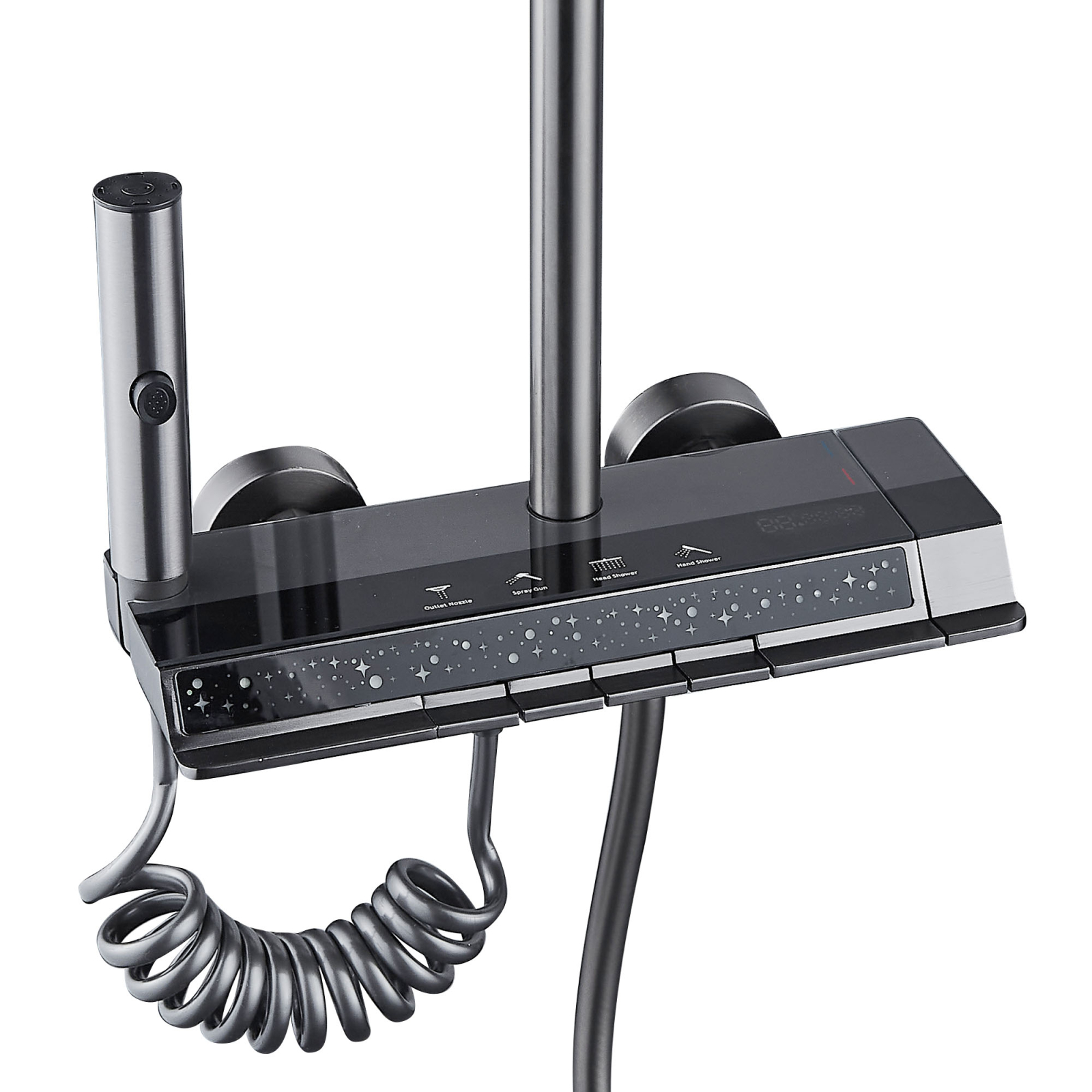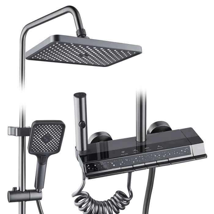 Coloana de dus RAIZ Origins Flow, 4 functii, Afisaj digital, Jet reglabil, Presiune ridicata, Para de dus, Dus fix cu functie ploaie, Functie bideu, Gri