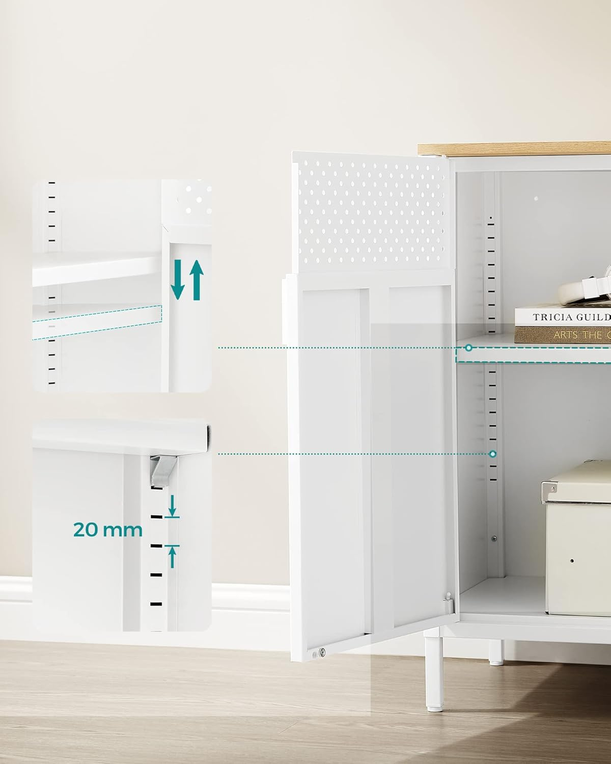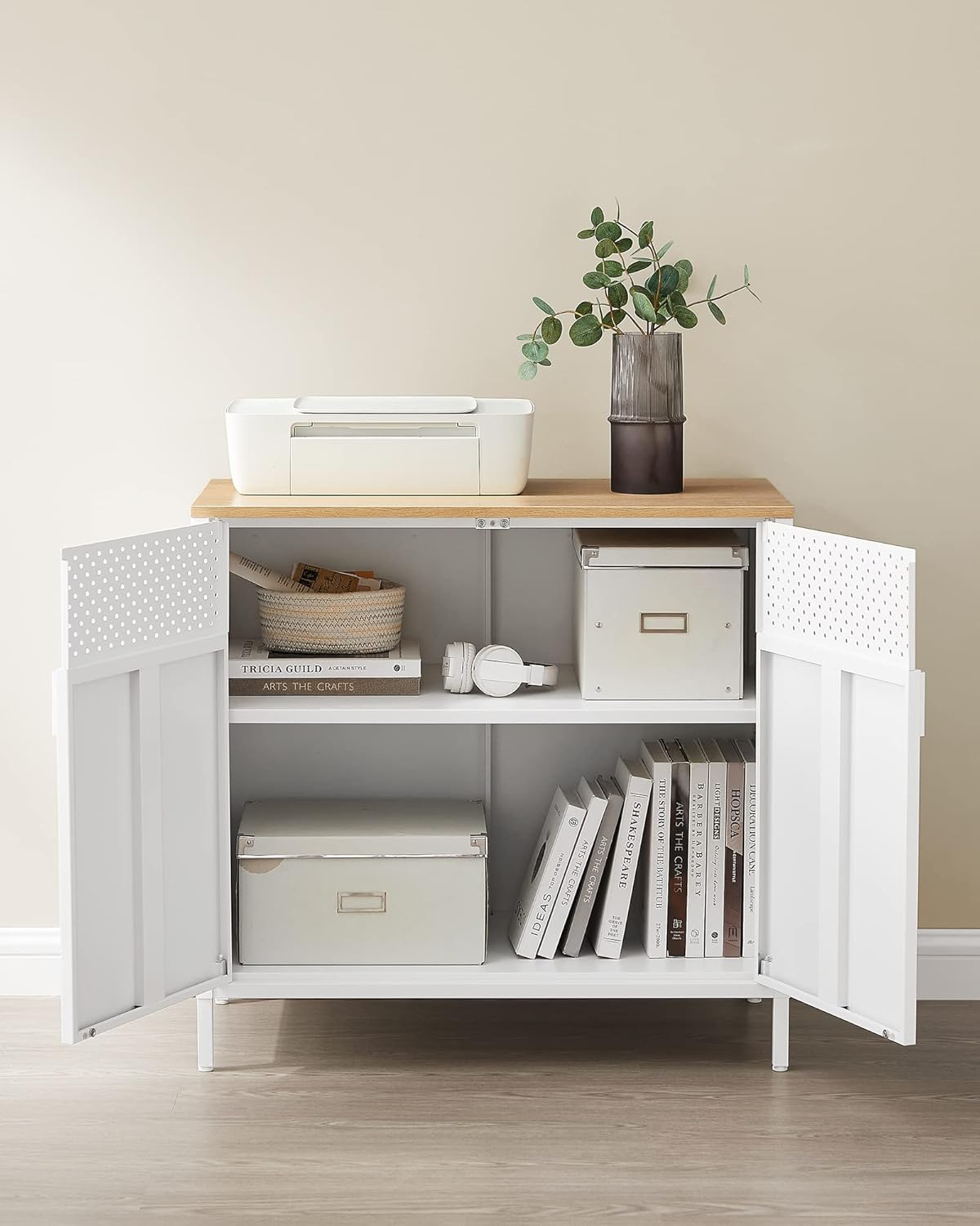 SONGMICS Dulap depozitare metalic cu 2 usi, raft reglabil, cadru otel, stil industrial, 80x40x76 cm, alb si bej