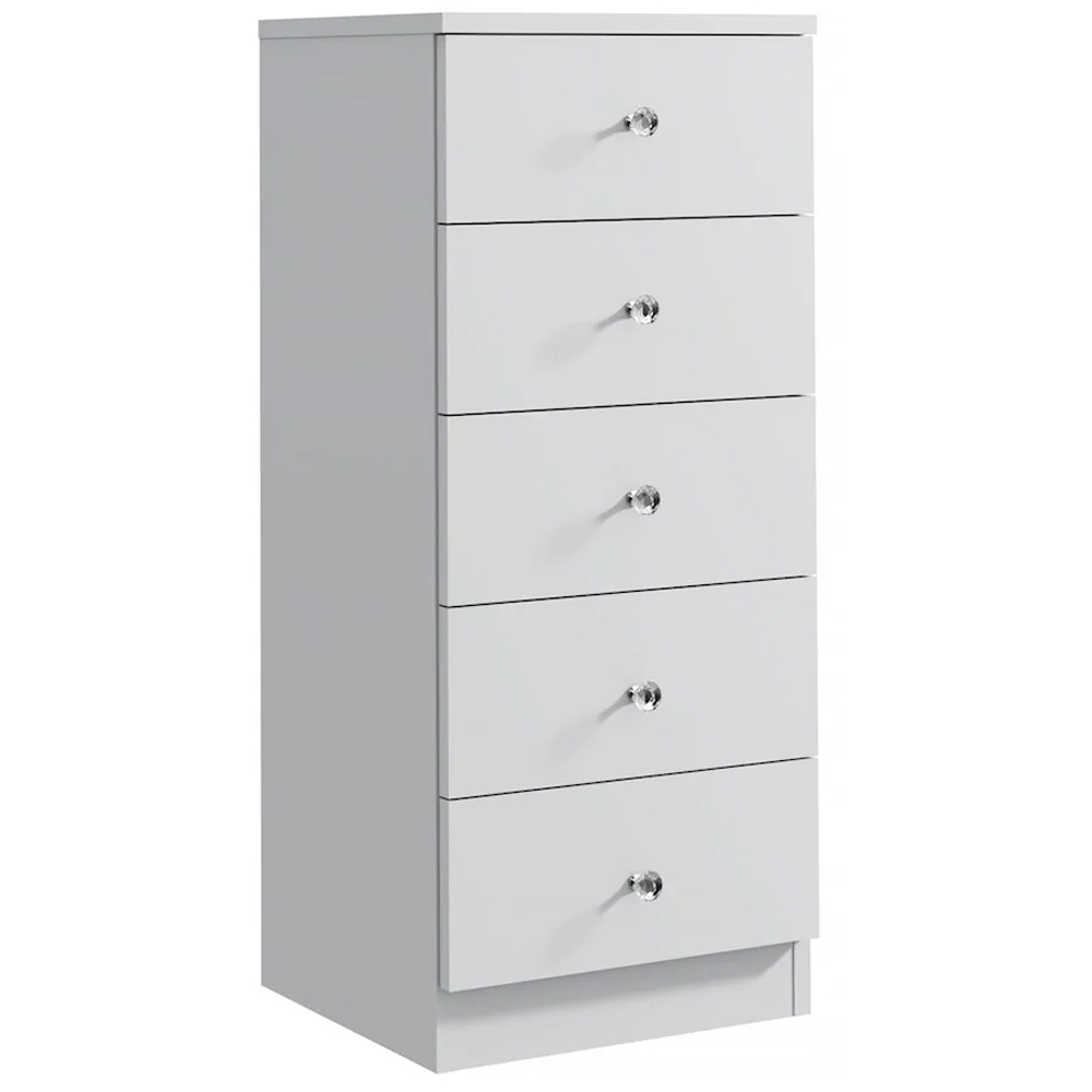 Comoda verticala Cristal cu 5 sertare, MDF, 40x38x94 cm, alb mat