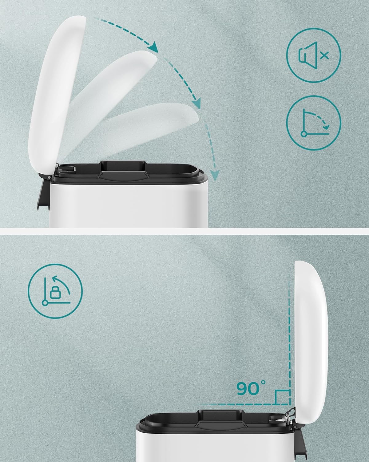 Marca: SONGMICS Capacitate: 30 litri Culoare: Alb Mecanism de deschidere: Step-On Material Cos de gunoi din otel, galeata interioara din plastic Greutatea articolului: 4,5 kilograme Despre acest articol O binefacere pentru bucataria ta: Cosul dvs. de gunoi nu trebuie sa arate ca un gunoi; cu o culoare alba eleganta si un design elegant, acest cos de gunoi cu pedala de 30L este un accesoriu la moda pentru bucataria dvs. Are o latura moale: Desi este fabricat cu un exterior metalic rigid, cosul de gunoi este delicat-mecanismul de amortizare face ca capacul sa se inchida usor, incet si silentios, fara un zgomot puternic. Pastrat i-l deschis: Daca faceti curatenie in bucatarie, pastrati cu usurinta cosul de gunoi deschis pentru o utilizare frecventa, ridicand manual capacul inapoi complet; dati pur si simplu o impingere pentru a-l inchide dupa utilizare, mentinand mirosurile la distanta. Galeata in cosul de gunoi: Gaura special conceputa mentine sacul de plastic la locul sau; daca sacul de gunoi se rupe accidental si se varsa, este suficient sa scoateti galeata interioara cu manere laterale pentru o curatare usoara. Ce primiti: O pubela de gunoi pentru deseuri si va pastreaza casa curata, astfel incat sa nu intrati in panica chiar daca exista vizite neprogramate de la prieteni.