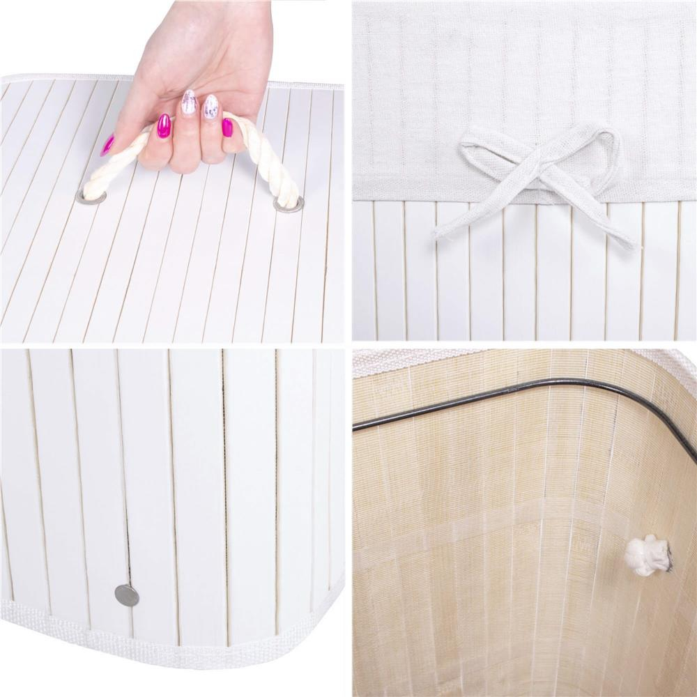 Cosul de rufe cu structura din bambus este o solutie practica si eleganta pentru depozitarea rufelor murdare in baie sau spalatorie. Sacul textil interior este detasabil si poate fi curatat usor, iar capacul prevazut cu maner din sfoara pastreaza continutul ascuns si ordonat. Designul compact si capacitatea de 72 litri il fac potrivit pentru utilizarea zilnica.