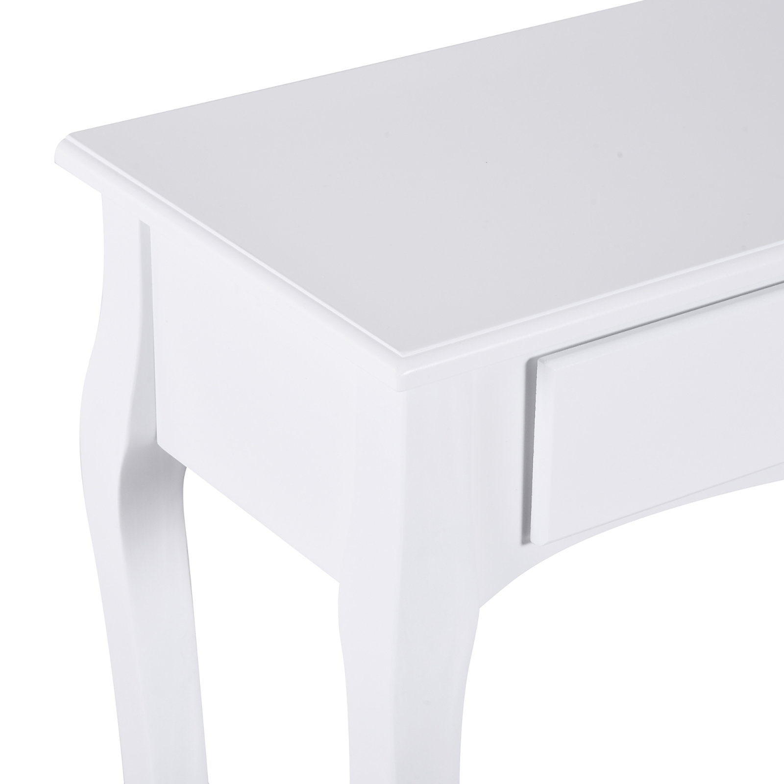 Poti alege pentru acasa [BRAND NAME], consola pentru hol, 100x33x76 cm, alba daca vrei sa ai un obiect de mobilier simplu, util, care se potriveste pentru diverse stiluri in ceea ce priveste decorul interior. Poti opta pentru o astfel de consola pentru hol, fiind spatiul perfect pe care poti lasa cheile si alte obiecte care iti sunt necesare cand pleci de acasa. Avand in vedere ca este alba si are un design interesant, [BRAND NAME], consola pentru hol, 100x33x76 cm, alba poate fi si piesa care aduce un plus estetic locuintei tale. Dispune de sertare si de un raft de depozitare in care poti lasa orice obiecte ai nevoie. Poti aseza si o oglinda deasupra si decorezi astfel intr-un mod inedit orice hol din casa. Este realizata din lemn MDF si pin masiv deci va rezista foarte bine in timp. Poti sa cureti foarte usor aceasta consola cu o laveta umeda. Poate suporta o sarcina maxima de 100 kg, deci este un obiect de mobilier rezistent.