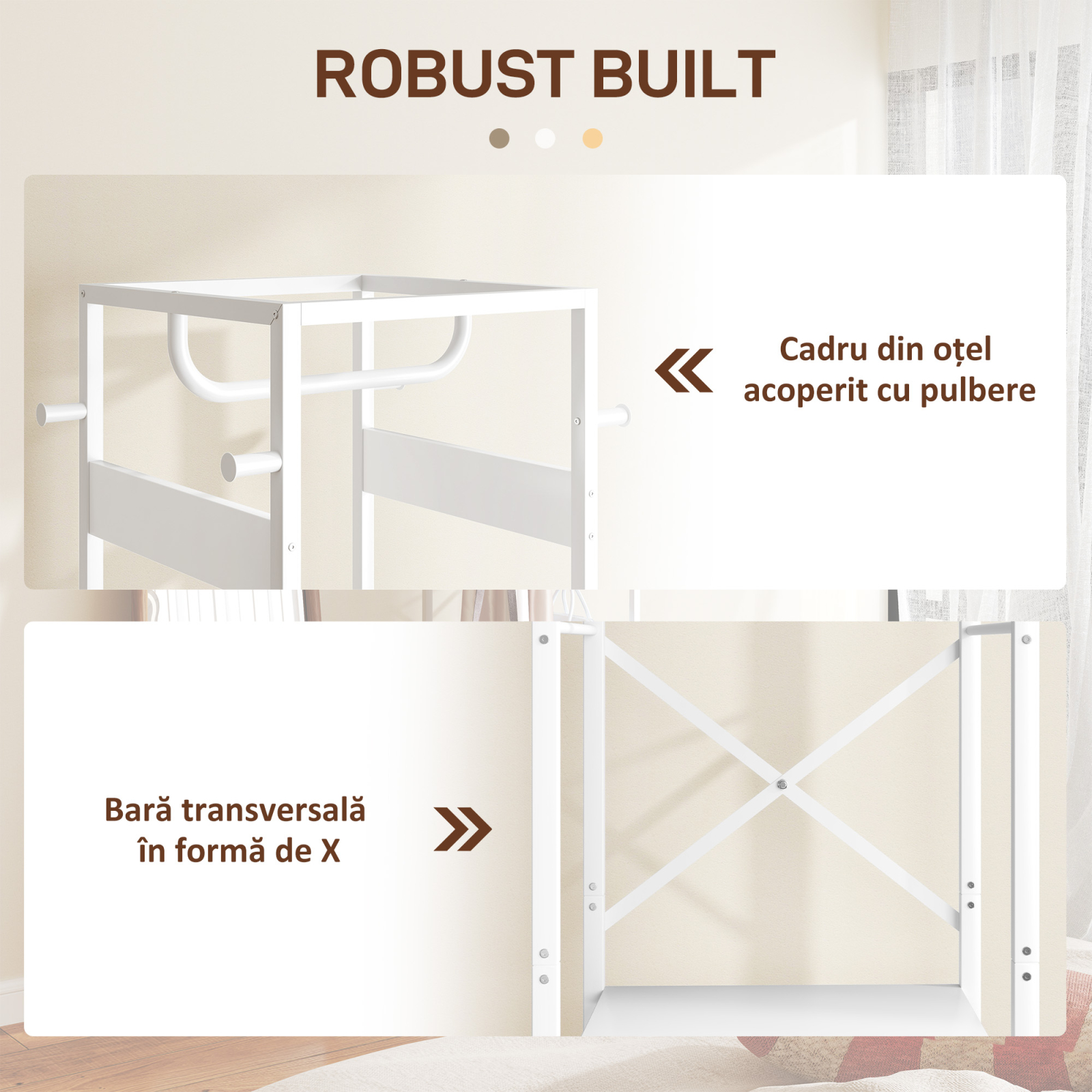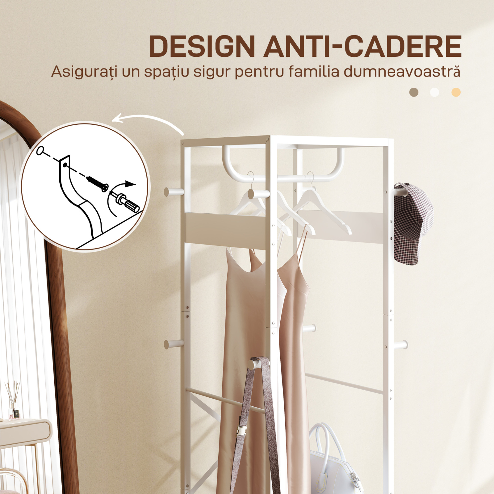 Reinnoieste-ti holul sau dormitorul cu un cuier de podea practic [BRAND NAME]. Acest model compact in stil industrial are o bara de 40 cm si un spatiu de agatare de 95 cm, plus doua rafturi deschise care permit combinarea stilului cu functionalitatea. Structura sa din otel robust cu finisaj pulverizat si stilul industrial sunt capabile sa decoreze orice incapere, mentinand intotdeauna hainele tale in ordine.