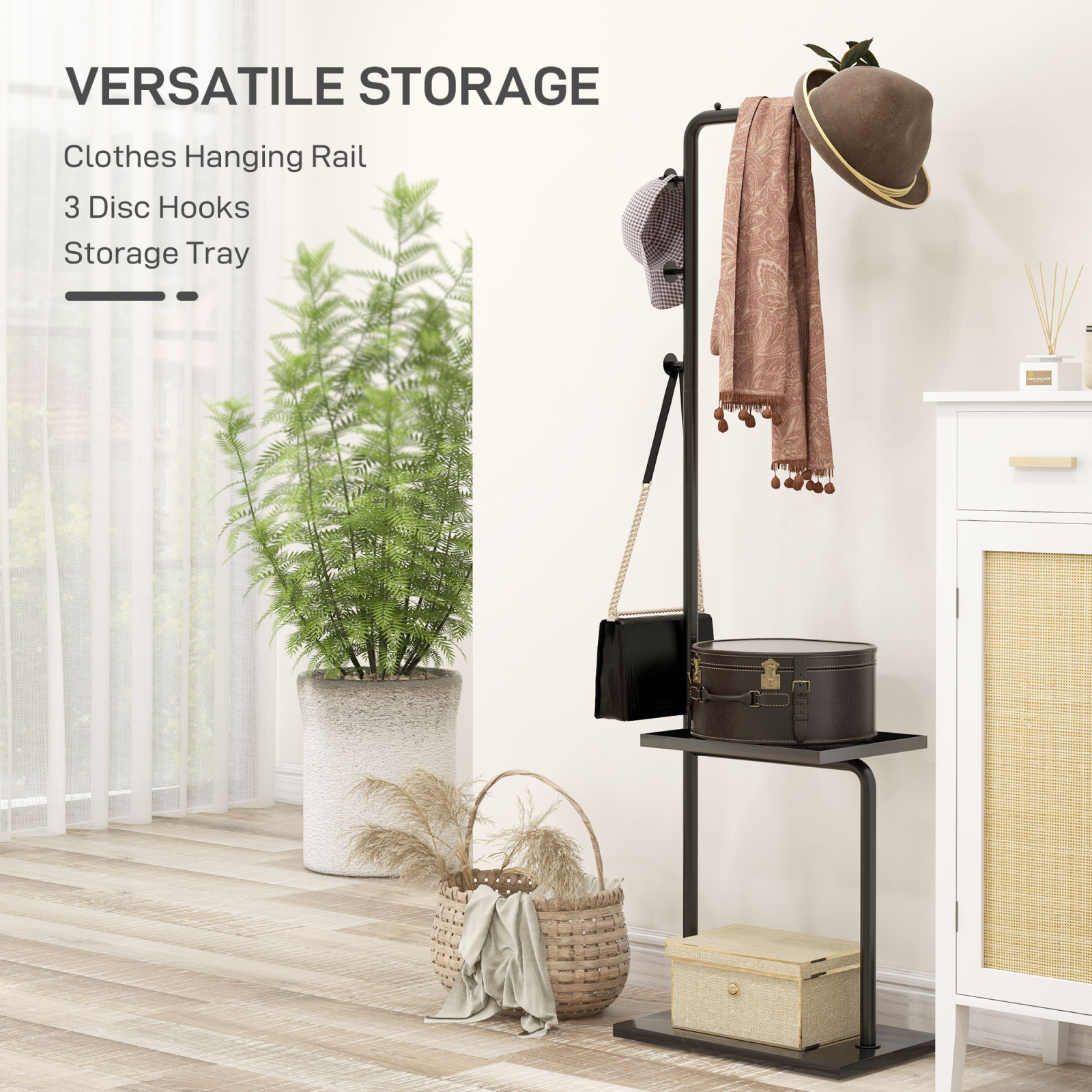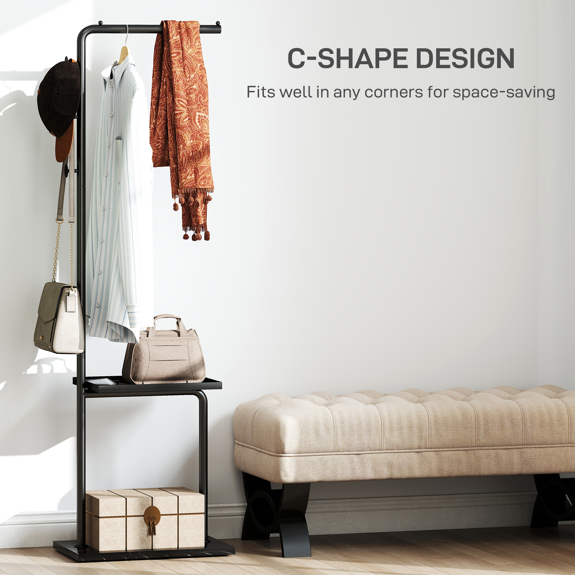 Acest elegant cuier de podea [BRAND NAME] este perfect pentru organizarea tinutelor si accesoriilor in ordine. Designul in forma de C cu suport pentru palarii si haine adauga o nota distinctiva, potrivindu-se perfect in colturile camerelor, birourilor si coridoarelor. Baza lata asigura stabilitate si echilibru. Include o bara pentru haine, trei carlige si un raft pentru aranjarea ordonata a hainelor, palariilor, posetelor si accesoriilor. Alegerea perfecta pentru orice intrare!