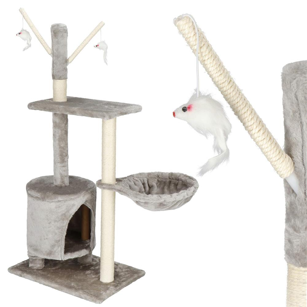 Culoare: crem/gri deschis Numar de niveluri: 4 Inaltime totala: 108 cm Lungimea bazei: 49 cm Latimea bazei: 36 cm Grosimea bazei: 1,5 cm Casa: 30 x 27 cm (diametru x inaltime) Grosimea bazei casei: 1,5 cm Pat: 32 x 32 x 2,5 cm Grosimea marginii patului: 6 mm Platforma 1: 40 x 24 cm (lungime x latime) Grosimea bazei: 1,5 cm 2 x tuburi de montare pentru jucarii: 24 x 2 cm (lungime x grosime) Lungimea tuburilor de constructie: 9 / 24 / 29 / 31 / 35 / 41 cm Grosimea tuburilor de constructie: 3,5 / 5,5 cm Lungimea jucariei suspendate: min. 21 cm max. 35 cm Latimea jucariei suspendate: 6,5 cm Inaltimea pana la baza casei: 13 cm (masurata de la baza) Inaltimea pana la varful casei: 39 cm Inaltime pana la pat: 45 cm Inaltime pana la 1 platforma: 77 cm Inaltime de la varful casei la 1 platforma: 37 cm Inaltime de la fundul patului la 1 platforma: 44 cm Inaltime de la platforma la tubul cu jucaria: 41,5 cm Vrei ca pisica ta sa se distreze la nesfarsit intr-un loc placut si relaxant? Aceasta este implinirea celor mai profunde vise atat ale proprietarilor, cat si ale animalelor lor de companie - un stalp de zgarieturi pe mai multe niveluri! Stabilitate: stalpul de zgariere este proiectat pentru o stabilitate neclintita. Pisica ta poate sa se catere, sa sara si sa se zgarie fara griji. Design pe mai multe niveluri pentru joc optim: locul de joaca ofera nu doar unul, ci mai multe niveluri de explorat. Pisica ta poate urca pe varfuri si cobori in adancuri, descoperind noi perspective de joaca si relaxare. Placut la atingere: realizat dintr-un material exceptional de placut la atingere, stalpul de zgariere ofera labei pisicii sensibilitatea si confortul de care are nevoie. Durabilitate: realizat din material durabil, va rezista nu numai la zgarieturile de zi cu zi, ci si la multe luni de utilizare intensiva, asigurand durabilitate ani de zile. Distractie si bucurie: Cu o varietate de niveluri si locuri ascunse de explorat, pisica ta va gasi o multime de moduri de a petrece timp activ si distractiv. Materiale naturale, sigure pentru pisici: sfoara din jurul stalpilor este fabricata din sisal, o fibra tare si foarte durabila. Acesta este cu siguranta momentul potrivit pentru a oferi pisicii tale iubite un loc ideal de dezvoltare, joaca si odihna. Locul nostru de joaca nu este doar o piesa de mobilier, este o oaza de placere pentru animalul tau de companie.