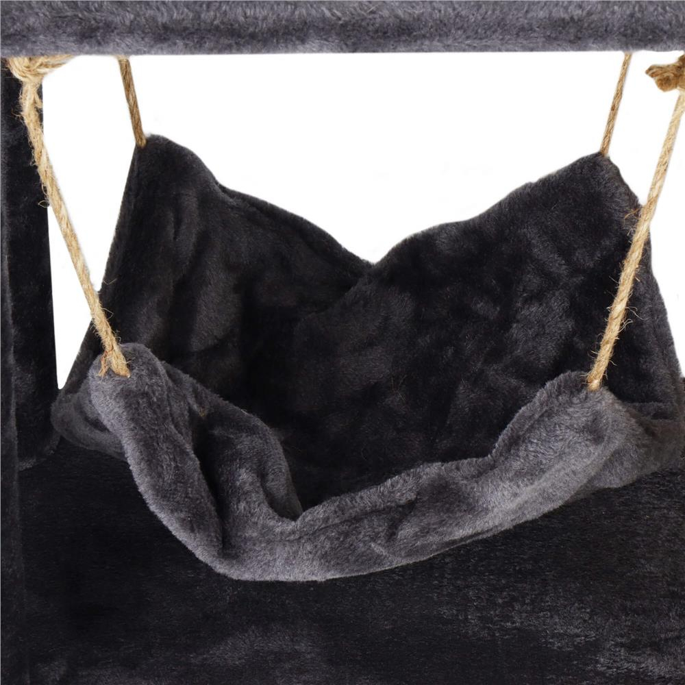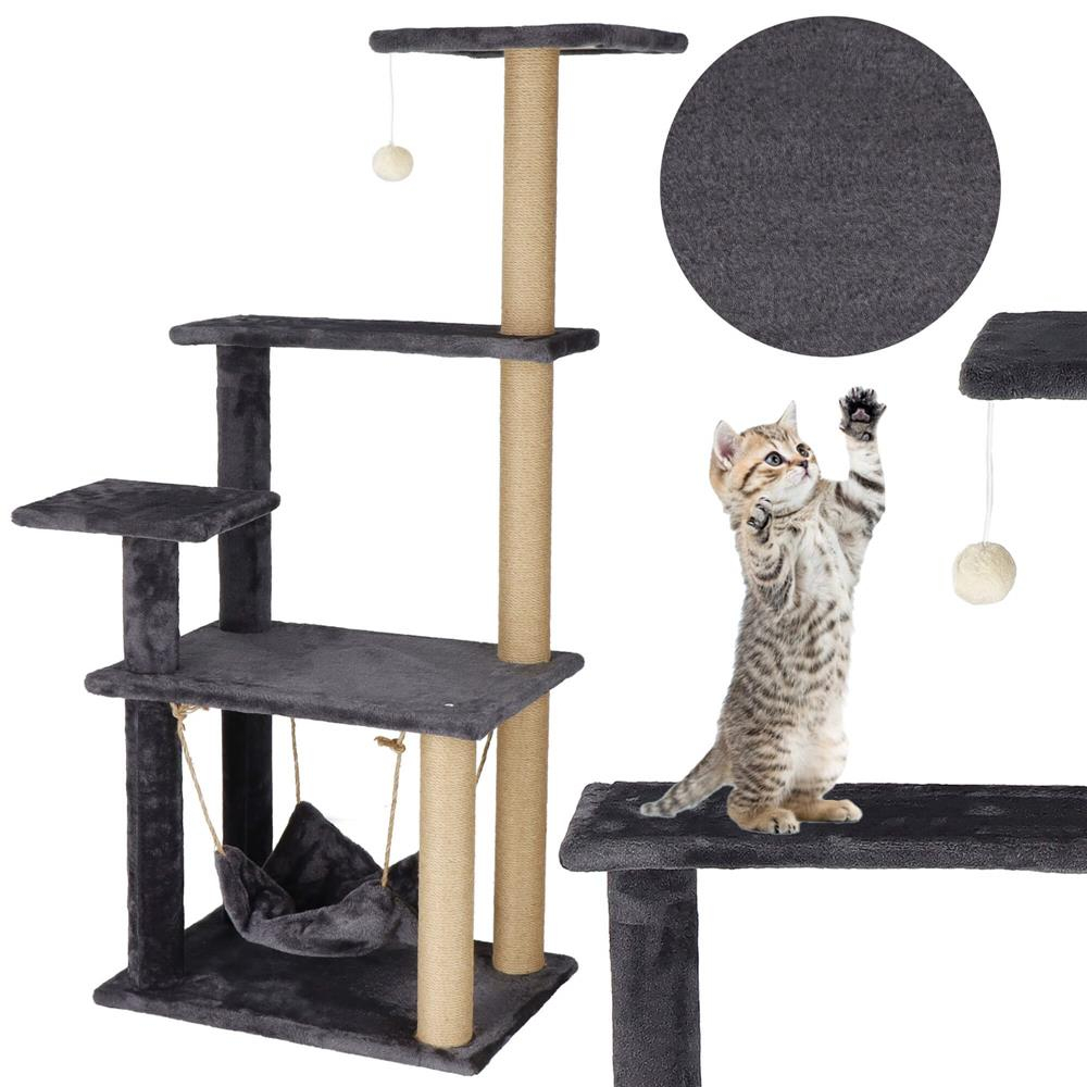Culoare: grafit 6x niveluri Numar de tuburi de constructie: 8 Dimensiuni: Inaltime totala: 121 cm Lungimea bazei: cm: 1,5 cm: 52 cm Latimea bazei: 37 cm Hamac: 34 x 34 cm Lungimea cablului de fixare a hamacului: aprox. 30 cm Distanta hamacului fata de baza reglabila cu ajutorul corzilor Platforma 1: 52 x 37 cm (lungime x latime) Platforma 2: 25 x 25 cm (lungime x latime) Platforma 3: 52 x 19 cm (lungime x latime) Platforma 4: 30 x 30 cm (lungime x latime) Grosimea bazei si a platformelor: 1,5 cm Lungimea cordonului elastic cu pompon: min. 15 cm / max. 28] cm Grosimea pomponului: aprox. 3,5 cm Lungimea tuburilor de constructie: 19 / 34 / 39 cm Grosimea tuburilor de constructie: 6 / 6,5 cm Aranjament: Inaltime pana la 1 platforma: 43 cm (masurat de la baza) Inaltimea pana la a 2-a platforma: 65 cm Inaltimea pana la a 3-a platforma: 84,5 cm Inaltimea pana la a 4-a platforma: 121 cm Inaltimea de la 1 platforma la 2: 21 cm Inaltimea de la platforma 1 la platforma 3: 42 cm Inaltimea de la platforma 2 la platforma 3: 21 cm Inaltimea de la platforma 3 la platforma 4: 36,5 cm Inaltimea de la 1 la 4 platforma: 78 cm Vrei ca pisica ta sa se distreze la nesfarsit intr-un loc placut unde si relaxant? Aceasta este implinirea celor mai profunde vise atat ale proprietarilor, cat si ale animalelor lor de companie - un stalp de zgarieturi pe mai multe niveluri! Stabilitate: stalpul este proiectat pentru o stabilitate neclintita. Pisica ta poate sa se catere, sa sara si sa se zgarie fara griji. Design pe mai multe niveluri pentru joc optim: locul de joaca ofera nu doar unul, ci mai multe niveluri de explorat. Pisica ta poate urca pe varfuri si cobori in adancuri, descoperind noi perspective de joaca si relaxare. Placut la atingere: realizat dintr-un material exceptional de placut la atingere, stalpul de zgariere ofera labei pisicii sensibilitatea si confortul de care are nevoie. Durabilitate: realizat din material durabil, va rezista nu numai la zgarieturile de zi cu zi, ci si la multe luni de utilizare intensiva, asigurand durabilitate ani de zile. Distractie si bucurie: Cu o varietate de niveluri si locuri ascunse de explorat, pisica ta va gasi o multime de moduri de a petrece timp activ si distractiv. Materiale naturale, sigure pentru pisici: sfoara din jurul stalpilor este fabricata din sisal, o fibra tare si foarte durabila. Acesta este cu siguranta momentul potrivit pentru a oferi pisicii tale iubite un loc ideal de dezvoltare, joaca si odihna. Locul nostru de joaca nu este doar o piesa de mobilier, este o oaza de placere pentru animalul tau de companie. Nu mai astepta - ofera pisicii tale un cadou care ii va ridica calitatea vietii la un nivel complet nou!