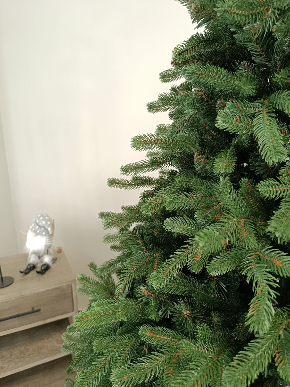 Imagine reala de prezentare pentru modelul Carpati, varianta 230cm Acesti brazi au un aspect ultra-realist si sunt greu de distins in comparatie cu cei naturali. Ramurile lor sunt dens stratificate si mentin toate decoratiunile de Craciun la inaltime. Ramurile arata foarte bine chiar si fara decoratiuni, sunt realizati din materiale calitative si ating cele inalte standarde de siguranta ale Uniunii Europene.Ramurile ramificate permit modelarea si impodobirea acestuia dupa preferintele fiecaruia. Pomii pot fi rapid ansamblati si dezansamblati, sunt usor de intretinut si sigur va vor face casa sa radieze de frumusete si a spirit de Craciun.Bradul este format din crengi care pot fi modelate si aranjate. Se poate monta in cca. 30 minute si este practic, ecologic si durabil. Este un brad foarte bogat, cu ramuri ce imita foarte bine bradul natural atat prin culoare cat si prin forma/textura. Ramurile se pot strange foarte usor in jurul tulpinii, fiind compact si usor de depozitat. Suportul bradului este inclus Inaltimea totala a bradului (dimensiune masurata de la podea pana in varf, cu tot cu suport): 250cm Diametrul (latimea la baza in cel mai lat punct): 160cm Numarul total al ramificatiilor: 1532 dintre care: Crengute 2D, material PVC: 747 Crengute 3D, material PE: 785 Suport inclus: metal Zapada: NU Alte decoratiuni: - Greutate (fara ambalaj): 21.6kg Dimensiune ambalaj carton: 39 x 39 x 118cm Design exclusiv realizat de SERSIMO Market, fabricat in Ucraina
