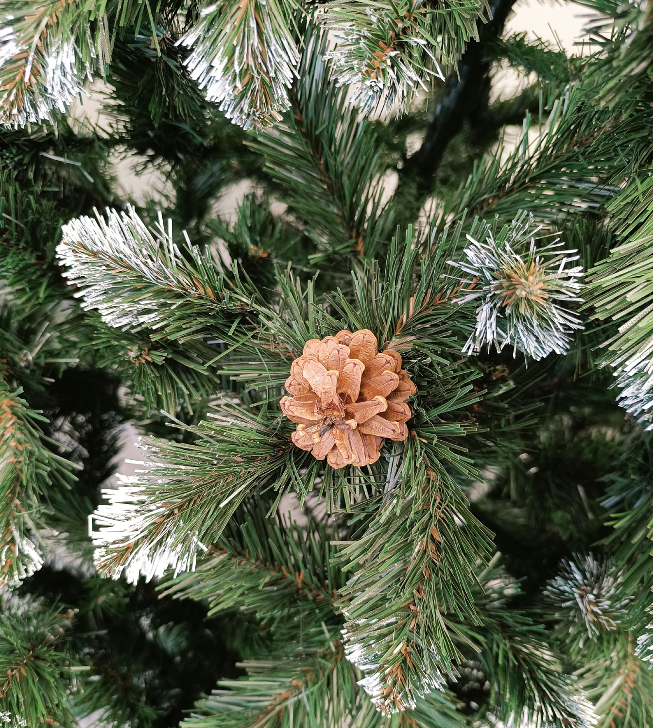 Imagine reala de prezentare pentru modelul Lidia Nins cu conuri, varianta 220cm PARAMETRII: - Inaltimea totala a bradului (dimensiune masurata de la podea pana in varf, cu tot cu suport): 180cm - Diametrul (latimea la baza in cel mai lat punct): 118cm - Numarul total al ramificatiilor: 300 dintre care:- Crengute 2D, material PVC: 300- Crengute 3D, material PE: -- Suport inclus: plastic- Zapada: DA- Alte decoratiuni: cu conuri naturale- Greutate (fara ambalaj): 4.6kg- Dimensiune ambalaj carton: 24 x 23 x 85cm BRAD DE CRACIUN UNIC PENTRU CRACIUN UNIC Ce poate fi mai fermecator decat atmosfera unica a Craciunului? Si probabil ca niciunul dintre noi nu se indoieste ca un brad splendid impodobit este cel mai important element care construieste aceasta atmosfera magica de Craciun. La urma urmei, ritualul anual al impodobirii in familie a bradului de Craciun este unul dintre cele mai de neuitat momente, evocand multe amintiri frumoase. Bradul de Craciun prezentat va reflecta atmosfera minunata a Craciunului intr-un mod unic, si in acelasi timp atat de cunoscut si de indragit, subliniindu-i caldura si atmosfera de familie. DESCOPERA AVANTAJELE POMULUI NOSTRU DE CRACIUN – manopera precisa, imbinand soliditatea cu eleganta– densitate mare de ramuri si ace– distributie uniforma a acelor pe toata ramura – fara goluri– spatiu liber sub etajul inferior pentru cadouri– posibilitate de modelare a crengutelor in mai multe moduri– varietatea si realismul capetelor de crenguta– culoarea acelor imitand perfect acele naturale– diferentierea ramurilor – in functie de nivelul de inaltime– grosimea si durabilitatea firelor– fiabilitatea intregii structuri – arborele este aproape imposibil de distins de brazii naturali Cu bradul Christmas Deluxe by Sersimo® – un element inseparabil al Craciunului – veti petrece aceasta perioada magica de iarna intr-o aura de bucurie si caldura. Ganditi-va doar cat de frumos vor arata decoratiunile – stralucitoare, presarate cu sclipici, incalzind interiorul. Chiar si oamenii care nu impartasesc entuziasmul de Craciun recunosc ca un brad de Craciun impodobit frumos creeaza o atmosfera aparte. Cel mai mare avantaj al bradului nostru de Craciun este numarul mare de ramuri dens aranjate. Datorita densitatii si elegantei sale captivante, nu necesita prezenta a numeroase decoratiuni, fiind cu adevarat un decor grozav al oricarui interior! Etajul cel mai de jos al pomului de Craciun este la inaltimea potrivita, astfel incat sa puteti pune cu usurinta cadourile de Craciun sub el.Crengile pot fi indoite cu usurinta in diferite directii pentru a modela diferitele ramuri ale pomului si a le da forme diferite. Crengutele individuale au finaluri realiste si variate, iar niciuna nu este taiata intr-un mod artificial si inestetic. Culoarea lor intr-un mod extrem de realist imita culoarea reala a coniferelor si nu se estompeaza in timp. Sarma ascunsa cu grija nu se vede prin ace si, in acelasi timp, este suficient de groasa si rezistenta pentru ca bradul sa va serveasca ani de zile! Ace din folie PVC, puternice si durabile, sunt in acelasi timp extrem de placute la atingere. Deoarece bradul de Craciun – spre deosebire de copacii adevarati – nu ii pierde, nu va fi nevoie sa aspirati camera in mod regulat. Mai mult decat atat, acele sunt distribuite uniform pe toata lungimea ramurii, garantand astfel un efect vizual de densitate, fara goluri.https://youtube.com/shorts/CsnLbo2fH7c Design exclusiv realizat de SERSIMO, fabricat in Ucraina