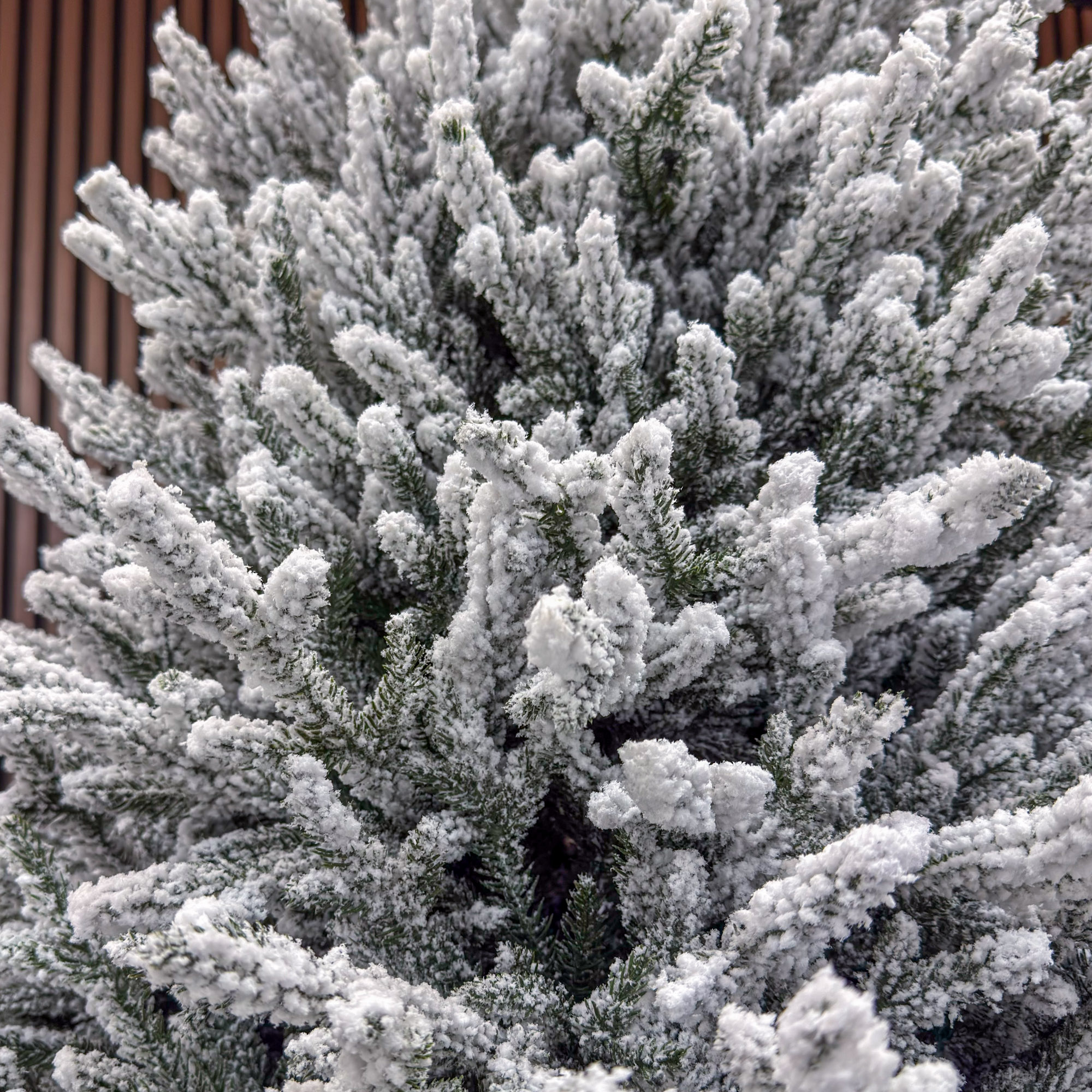 Imagine reala de prezentare pentru modelul Alesea Elite, nins, integral 3D, 200 cm PARAMETRII: – Inaltimea totala a bradului (dimensiune masurata de la podea pana in varf, cu tot cu suport): 200 cm – Diametrul (latimea la baza in cel mai lat punct):  140 cm – Numarul total al ramificatiilor: 1745  dintre care:– Crengute 2D, material PVC: -– Crengute 3D, material PE: 1745– Suport inclus: metal– Zapada: DA– Alte decoratiuni: -– Greutate (fara ambalaj): 26 kg– Dimensiune ambalaj carton: 80 x 40 x 120 cm– Sistem instalare: balamale tip umbrela BRAD DE CRACIUN UNIC PENTRU CRACIUN UNIC Ce poate fi mai fermecator decat atmosfera unica a Craciunului? Si probabil ca niciunul dintre noi nu se indoieste ca un brad splendid impodobit este cel mai important element care construieste aceasta atmosfera magica de Craciun. La urma urmei, ritualul anual al impodobirii in familie a bradului de Craciun este unul dintre cele mai de neuitat momente, evocand multe amintiri frumoase. Bradul de Craciun prezentat va reflecta atmosfera minunata a Craciunului intr-un mod unic, si in acelasi timp atat de cunoscut si de indragit, subliniindu-i caldura si atmosfera de familie. DESCOPERA AVANTAJELE POMULUI NOSTRU DE CRACIUN – manopera precisa, imbinand soliditatea cu eleganta– densitate mare de ramuri si ace– distributie uniforma a acelor pe toata ramura – fara goluri– spatiu liber sub etajul inferior pentru cadouri– posibilitate de modelare a crengutelor in mai multe moduri– varietatea si realismul capetelor de crenguta– culoarea acelor imitand perfect acele naturale– diferentierea ramurilor – in functie de nivelul de inaltime– grosimea si durabilitatea firelor– fiabilitatea intregii structuri – arborele este aproape imposibil de distins de brazii naturali Cu bradul Christmas Deluxe by Sersimo® – un element inseparabil al Craciunului – veti petrece aceasta perioada magica de iarna intr-o aura de bucurie si caldura. Ganditi-va doar cat de frumos vor arata decoratiunile – stralucitoare, presarate cu sclipici, incalzind interiorul. Chiar si oamenii care nu impartasesc entuziasmul de Craciun recunosc ca un brad de Craciun impodobit frumos creeaza o atmosfera aparte. Cel mai mare avantaj al bradului nostru de Craciun este numarul mare de ramuri dens aranjate. Datorita densitatii si elegantei sale captivante, nu necesita prezenta a numeroase decoratiuni, fiind cu adevarat un decor grozav al oricarui interior! Etajul cel mai de jos al pomului de Craciun este la inaltimea potrivita, astfel incat sa puteti pune cu usurinta cadourile de Craciun sub el.Crengile pot fi indoite cu usurinta in diferite directii pentru a modela diferitele ramuri ale pomului si a le da forme diferite. Crengutele individuale au finaluri realiste si variate, iar niciuna nu este taiata intr-un mod artificial si inestetic. Culoarea lor intr-un mod extrem de realist imita culoarea reala a coniferelor si nu se estompeaza in timp. Sarma ascunsa cu grija nu se vede prin ace si, in acelasi timp, este suficient de groasa si rezistenta pentru ca bradul sa va serveasca ani de zile! Ace din folie PVC, puternice si durabile, sunt in acelasi timp extrem de placute la atingere. Deoarece bradul de Craciun – spre deosebire de copacii adevarati – nu ii pierde, nu va fi nevoie sa aspirati camera in mod regulat. Mai mult decat atat, acele sunt distribuite uniform pe toata lungimea ramurii, garantand astfel un efect vizual de densitate, fara goluri.