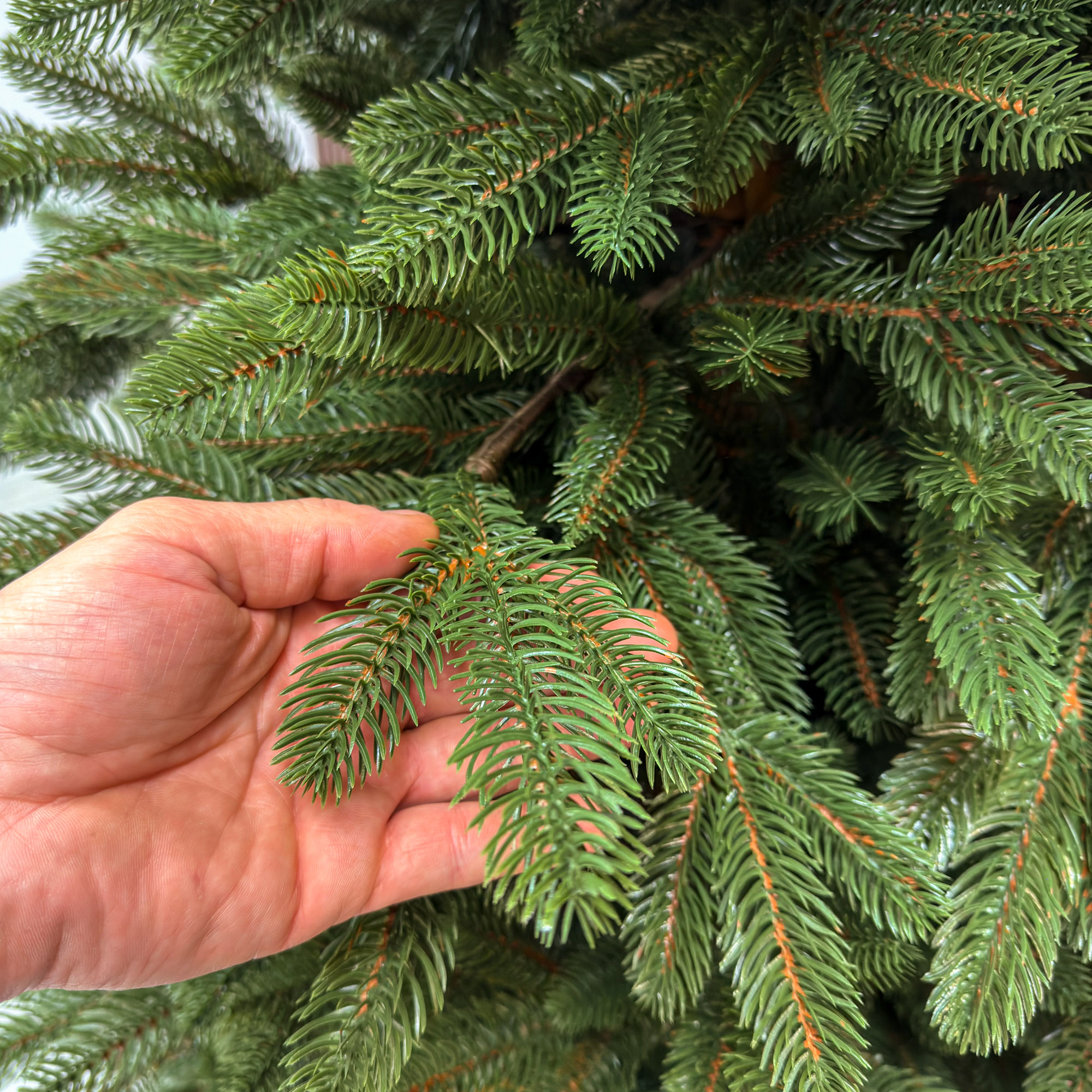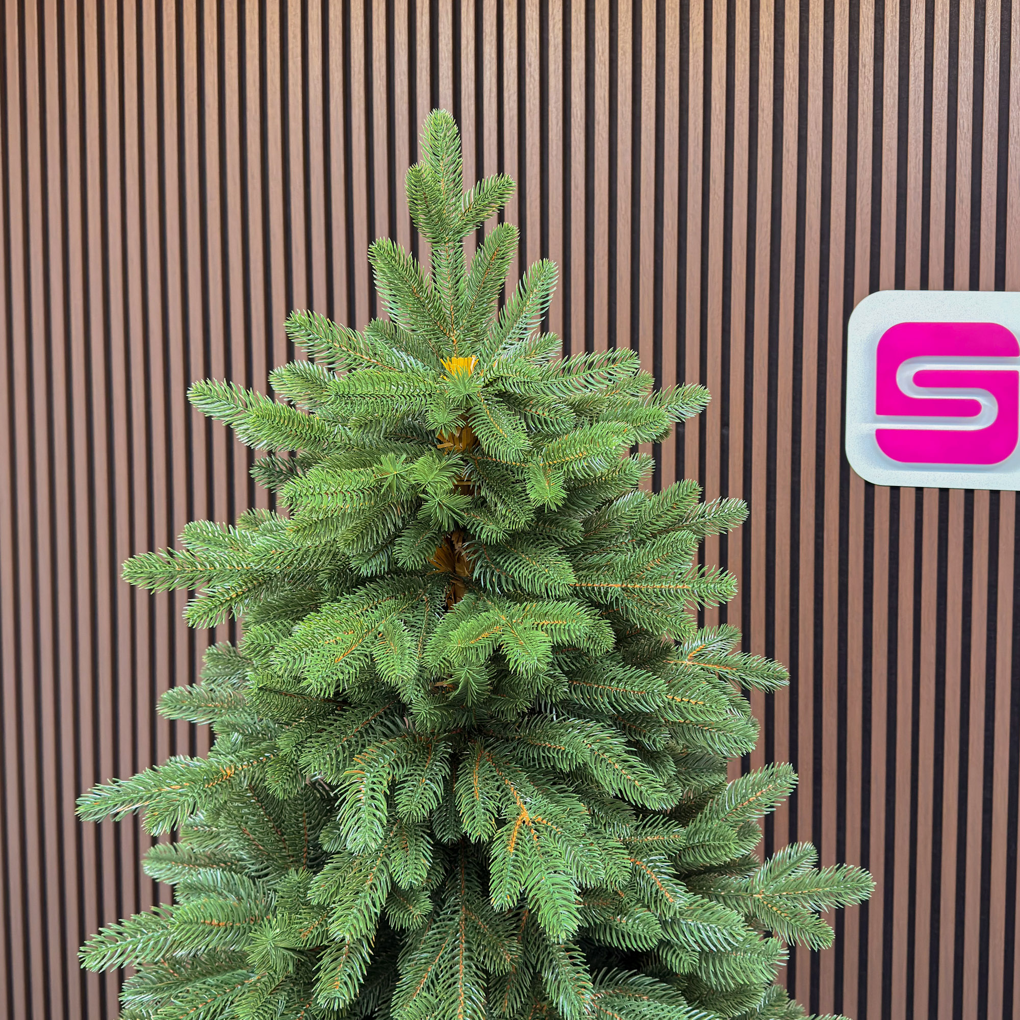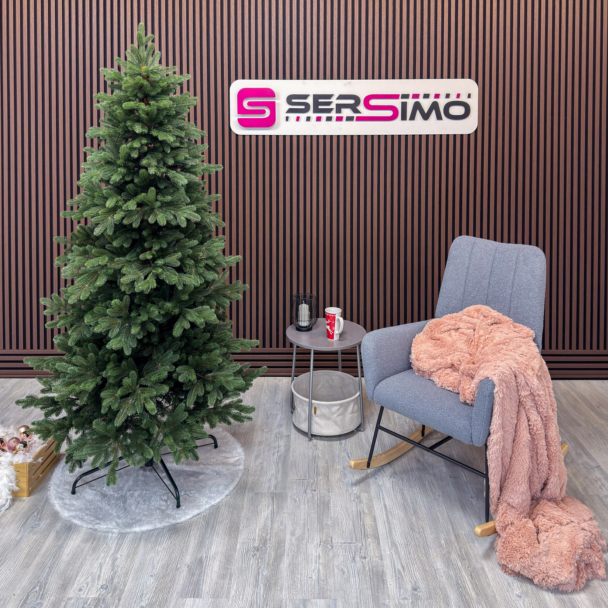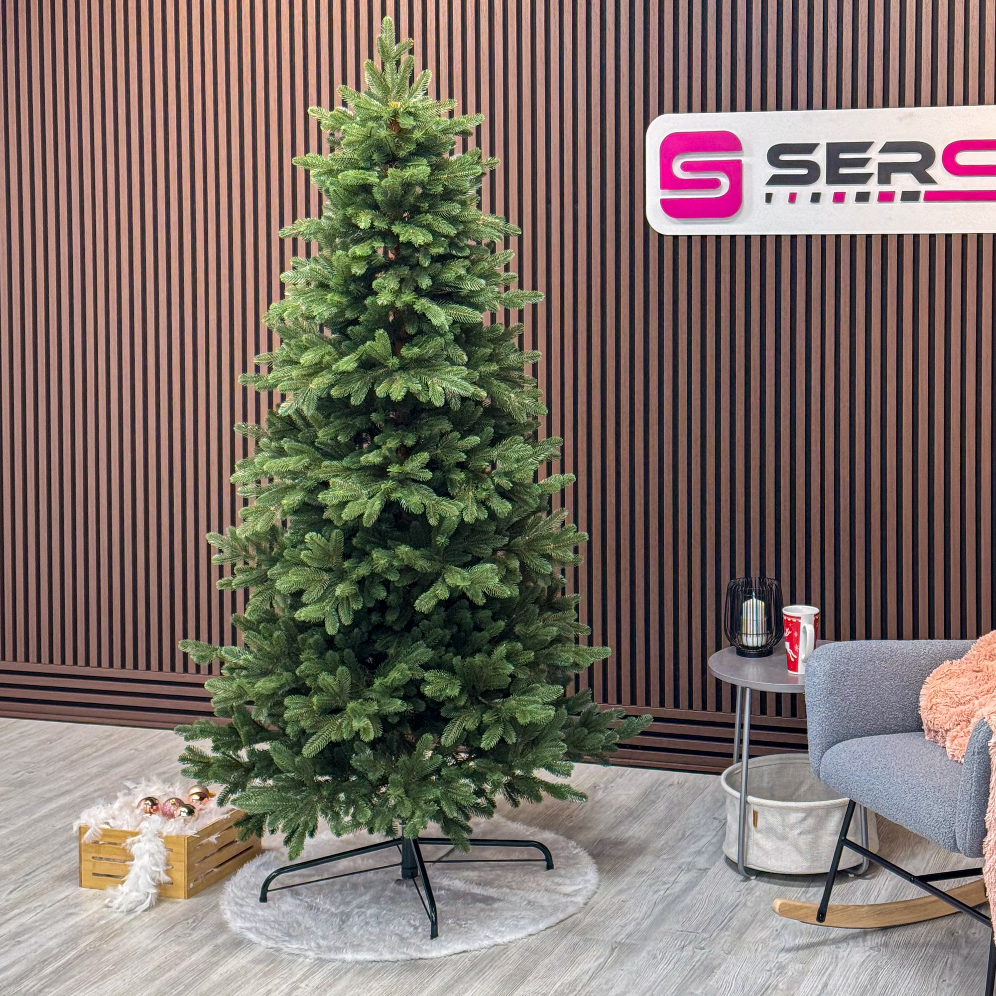 Imagine reala de prezentare pentru modelul Sofie Elite, verde, integral 3D, 210 cm PARAMETRII: – Inaltimea totala a bradului (dimensiune masurata de la podea pana in varf, cu tot cu suport): 210cm – Diametrul (latimea la baza in cel mai lat punct): 115cm – Numarul total al ramificatiilor: 647 dintre care:– Crengute 2D, material PVC: -– Crengute 3D, material PE: 647– Suport inclus: metal– Zapada: NU– Alte decoratiuni: -– Greutate (fara ambalaj): 13.0kg– Dimensiune ambalaj carton: 31 x 31 x 125cm– Sistem instalare: crengi atasate de tulpina BRAD DE CRACIUN UNIC PENTRU CRACIUN UNIC Ce poate fi mai fermecator decat atmosfera unica a Craciunului? Si probabil ca niciunul dintre noi nu se indoieste ca un brad splendid impodobit este cel mai important element care construieste aceasta atmosfera magica de Craciun. La urma urmei, ritualul anual al impodobirii in familie a bradului de Craciun este unul dintre cele mai de neuitat momente, evocand multe amintiri frumoase. Bradul de Craciun prezentat va reflecta atmosfera minunata a Craciunului intr-un mod unic, si in acelasi timp atat de cunoscut si de indragit, subliniindu-i caldura si atmosfera de familie. DESCOPERA AVANTAJELE POMULUI NOSTRU DE CRACIUN – manopera precisa, imbinand soliditatea cu eleganta– densitate mare de ramuri si ace– distributie uniforma a acelor pe toata ramura – fara goluri– spatiu liber sub etajul inferior pentru cadouri– posibilitate de modelare a crengutelor in mai multe moduri– varietatea si realismul capetelor de crenguta– culoarea acelor imitand perfect acele naturale– diferentierea ramurilor – in functie de nivelul de inaltime– grosimea si durabilitatea firelor– fiabilitatea intregii structuri – arborele este aproape imposibil de distins de brazii naturali Cu bradul Christmas Deluxe by Sersimo® – un element inseparabil al Craciunului – veti petrece aceasta perioada magica de iarna intr-o aura de bucurie si caldura. Ganditi-va doar cat de frumos vor arata decoratiunile – stralucitoare, presarate cu sclipici, incalzind interiorul. Chiar si oamenii care nu impartasesc entuziasmul de Craciun recunosc ca un brad de Craciun impodobit frumos creeaza o atmosfera aparte. Cel mai mare avantaj al bradului nostru de Craciun este numarul mare de ramuri dens aranjate. Datorita densitatii si elegantei sale captivante, nu necesita prezenta a numeroase decoratiuni, fiind cu adevarat un decor grozav al oricarui interior! Etajul cel mai de jos al pomului de Craciun este la inaltimea potrivita, astfel incat sa puteti pune cu usurinta cadourile de Craciun sub el.Crengile pot fi indoite cu usurinta in diferite directii pentru a modela diferitele ramuri ale pomului si a le da forme diferite. Crengutele individuale au finaluri realiste si variate, iar niciuna nu este taiata intr-un mod artificial si inestetic. Culoarea lor intr-un mod extrem de realist imita culoarea reala a coniferelor si nu se estompeaza in timp. Sarma ascunsa cu grija nu se vede prin ace si, in acelasi timp, este suficient de groasa si rezistenta pentru ca bradul sa va serveasca ani de zile! Ace din folie PVC, puternice si durabile, sunt in acelasi timp extrem de placute la atingere. Deoarece bradul de Craciun – spre deosebire de copacii adevarati – nu ii pierde, nu va fi nevoie sa aspirati camera in mod regulat. Mai mult decat atat, acele sunt distribuite uniform pe toata lungimea ramurii, garantand astfel un efect vizual de densitate, fara goluri.