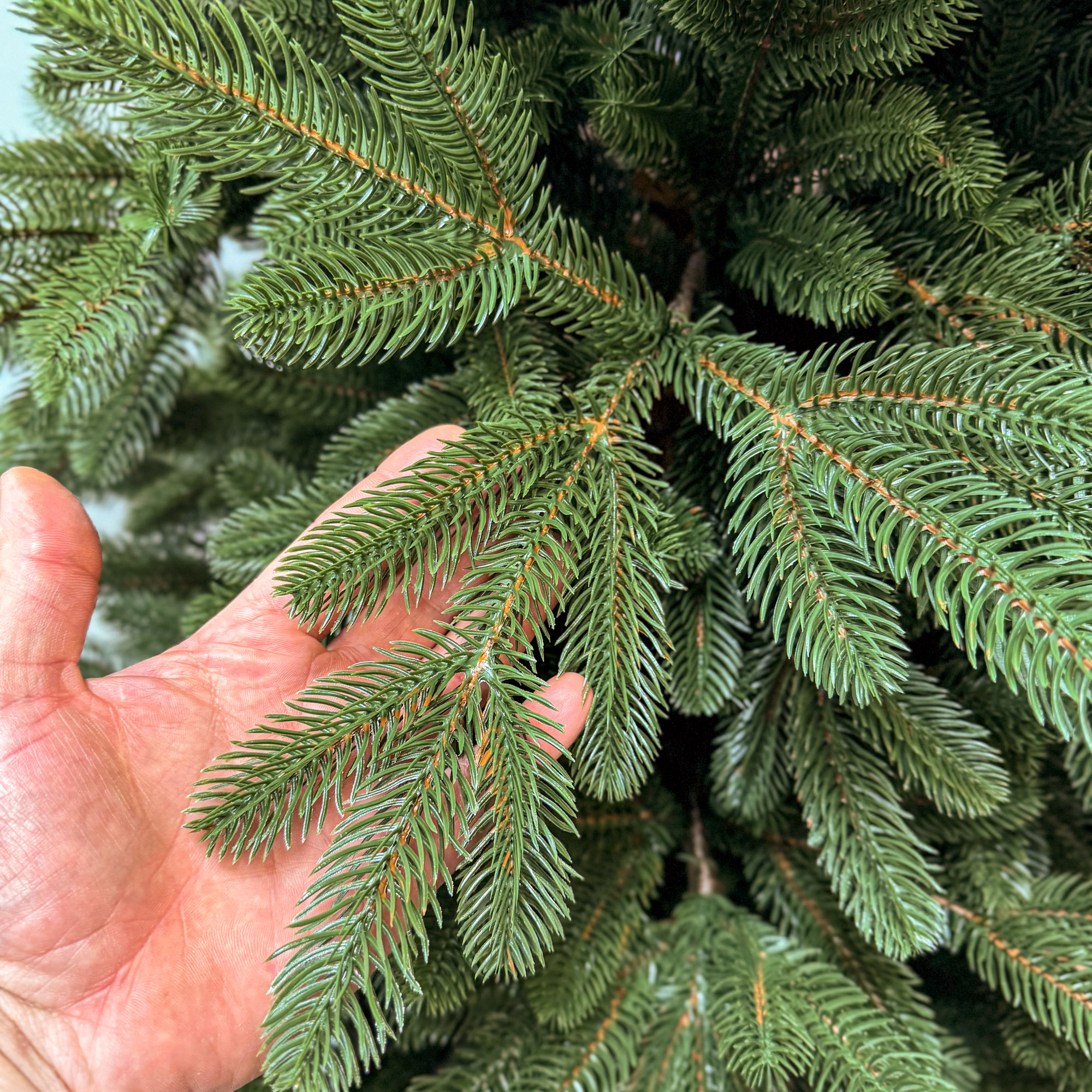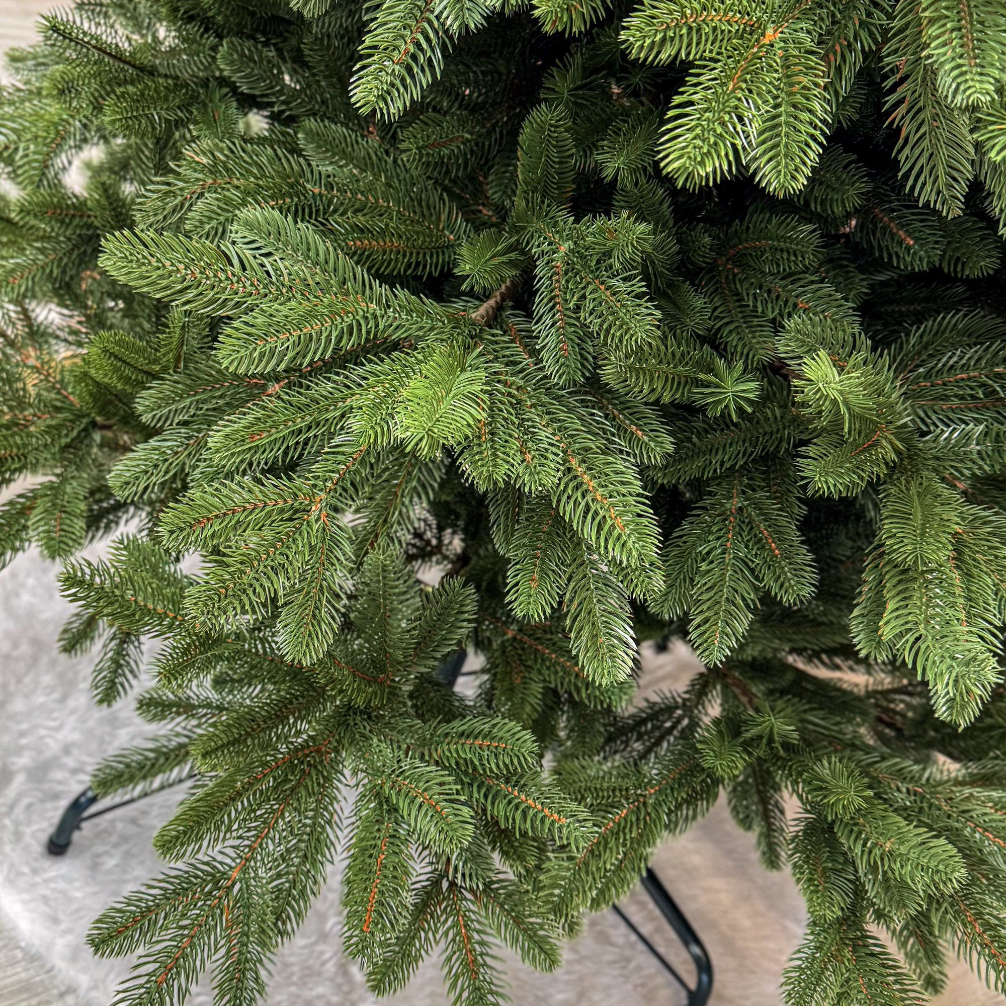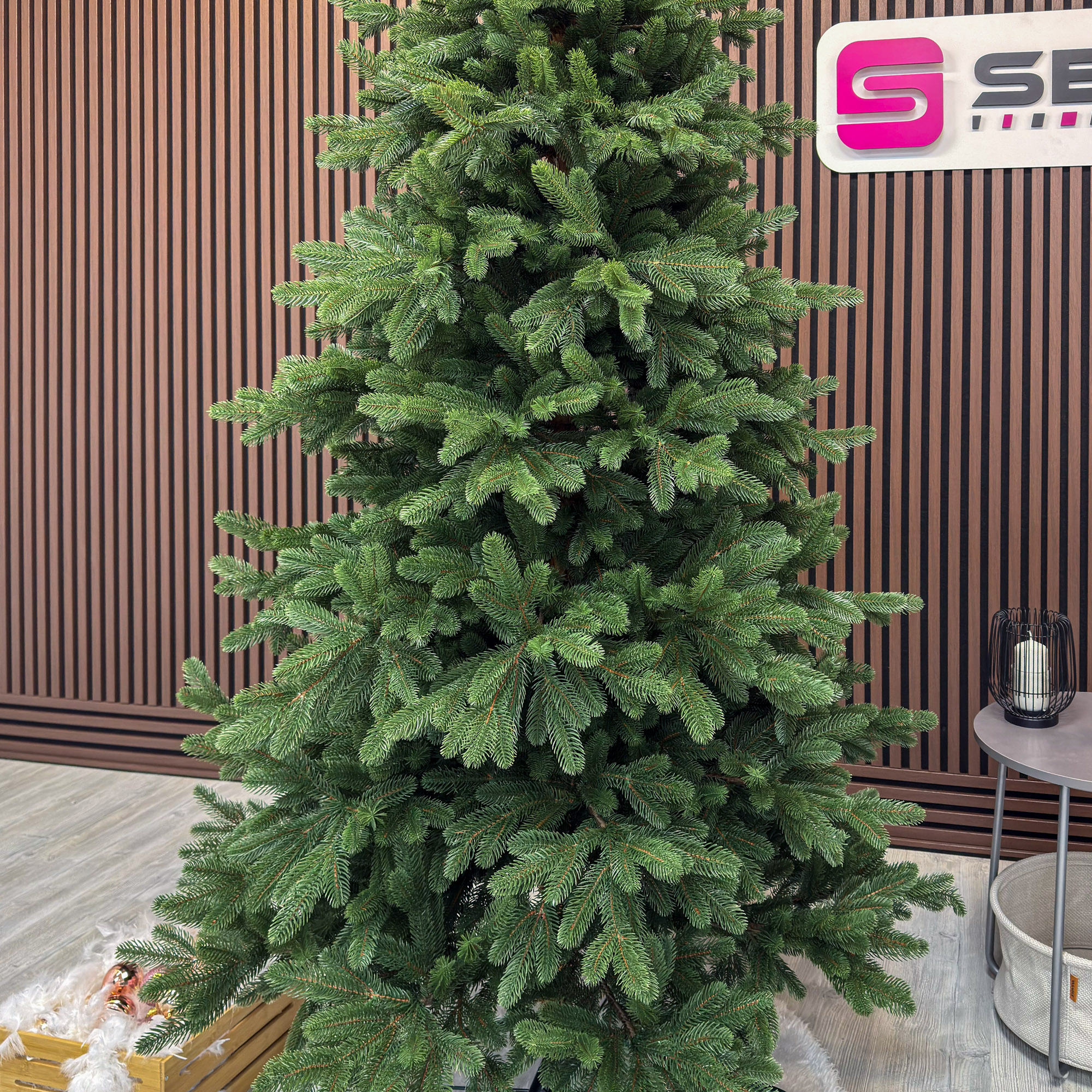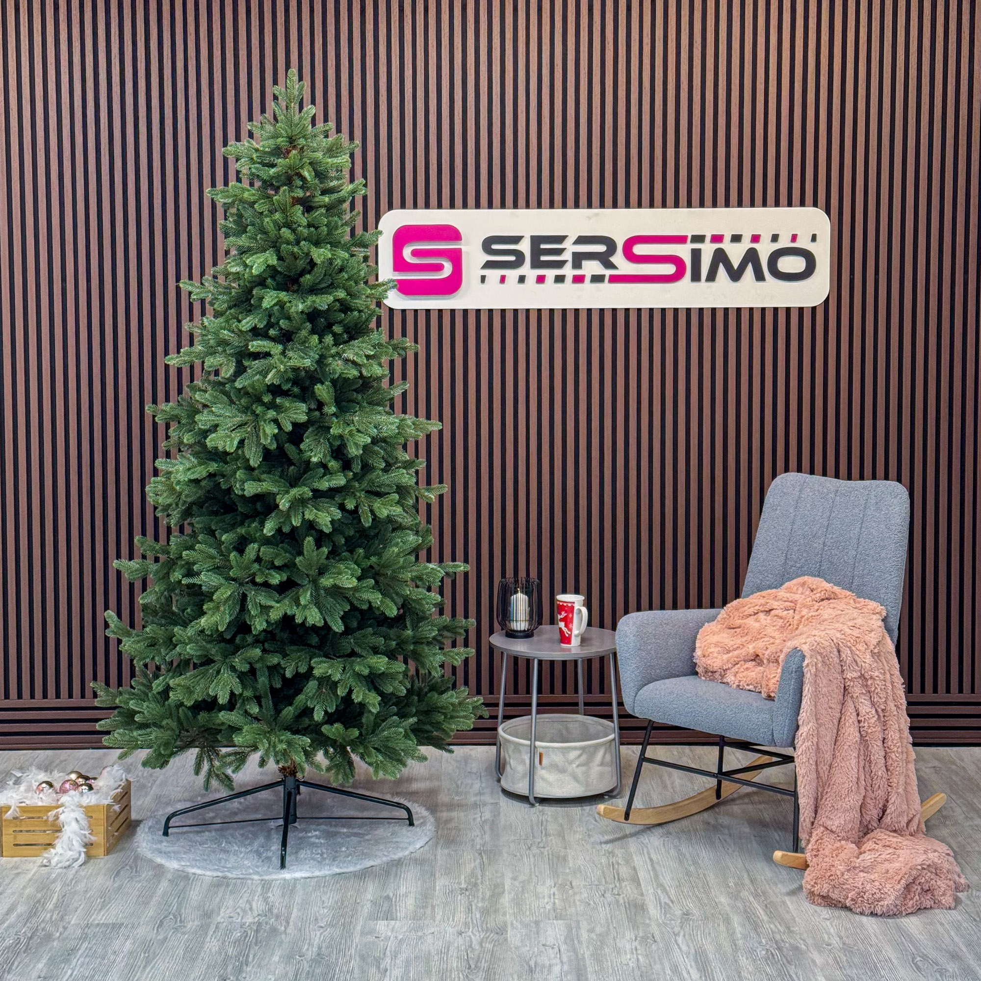 Imagine reala de prezentare pentru modelul Sofie Elite, verde, integral 3D, 230 cm PARAMETRII: – Inaltimea totala a bradului (dimensiune masurata de la podea pana in varf, cu tot cu suport): 230cm – Diametrul (latimea la baza in cel mai lat punct): 120cm – Numarul total al ramificatiilor: 840 dintre care:– Crengute 2D, material PVC: -– Crengute 3D, material PE: 840– Suport inclus: metal– Zapada: NU– Alte decoratiuni: -– Greutate (fara ambalaj): 17.3kg– Dimensiune ambalaj carton: 35 x 35 x 125cm– Sistem instalare: crengi atasate de tulpina BRAD DE CRACIUN UNIC PENTRU CRACIUN UNIC Ce poate fi mai fermecator decat atmosfera unica a Craciunului? Si probabil ca niciunul dintre noi nu se indoieste ca un brad splendid impodobit este cel mai important element care construieste aceasta atmosfera magica de Craciun. La urma urmei, ritualul anual al impodobirii in familie a bradului de Craciun este unul dintre cele mai de neuitat momente, evocand multe amintiri frumoase. Bradul de Craciun prezentat va reflecta atmosfera minunata a Craciunului intr-un mod unic, si in acelasi timp atat de cunoscut si de indragit, subliniindu-i caldura si atmosfera de familie. DESCOPERA AVANTAJELE POMULUI NOSTRU DE CRACIUN – manopera precisa, imbinand soliditatea cu eleganta– densitate mare de ramuri si ace– distributie uniforma a acelor pe toata ramura – fara goluri– spatiu liber sub etajul inferior pentru cadouri– posibilitate de modelare a crengutelor in mai multe moduri– varietatea si realismul capetelor de crenguta– culoarea acelor imitand perfect acele naturale– diferentierea ramurilor – in functie de nivelul de inaltime– grosimea si durabilitatea firelor– fiabilitatea intregii structuri – arborele este aproape imposibil de distins de brazii naturali Cu bradul Christmas Deluxe by Sersimo® – un element inseparabil al Craciunului – veti petrece aceasta perioada magica de iarna intr-o aura de bucurie si caldura. Ganditi-va doar cat de frumos vor arata decoratiunile – stralucitoare, presarate cu sclipici, incalzind interiorul. Chiar si oamenii care nu impartasesc entuziasmul de Craciun recunosc ca un brad de Craciun impodobit frumos creeaza o atmosfera aparte. Cel mai mare avantaj al bradului nostru de Craciun este numarul mare de ramuri dens aranjate. Datorita densitatii si elegantei sale captivante, nu necesita prezenta a numeroase decoratiuni, fiind cu adevarat un decor grozav al oricarui interior! Etajul cel mai de jos al pomului de Craciun este la inaltimea potrivita, astfel incat sa puteti pune cu usurinta cadourile de Craciun sub el.Crengile pot fi indoite cu usurinta in diferite directii pentru a modela diferitele ramuri ale pomului si a le da forme diferite. Crengutele individuale au finaluri realiste si variate, iar niciuna nu este taiata intr-un mod artificial si inestetic. Culoarea lor intr-un mod extrem de realist imita culoarea reala a coniferelor si nu se estompeaza in timp. Sarma ascunsa cu grija nu se vede prin ace si, in acelasi timp, este suficient de groasa si rezistenta pentru ca bradul sa va serveasca ani de zile! Ace din folie PVC, puternice si durabile, sunt in acelasi timp extrem de placute la atingere. Deoarece bradul de Craciun – spre deosebire de copacii adevarati – nu ii pierde, nu va fi nevoie sa aspirati camera in mod regulat. Mai mult decat atat, acele sunt distribuite uniform pe toata lungimea ramurii, garantand astfel un efect vizual de densitate, fara goluri.