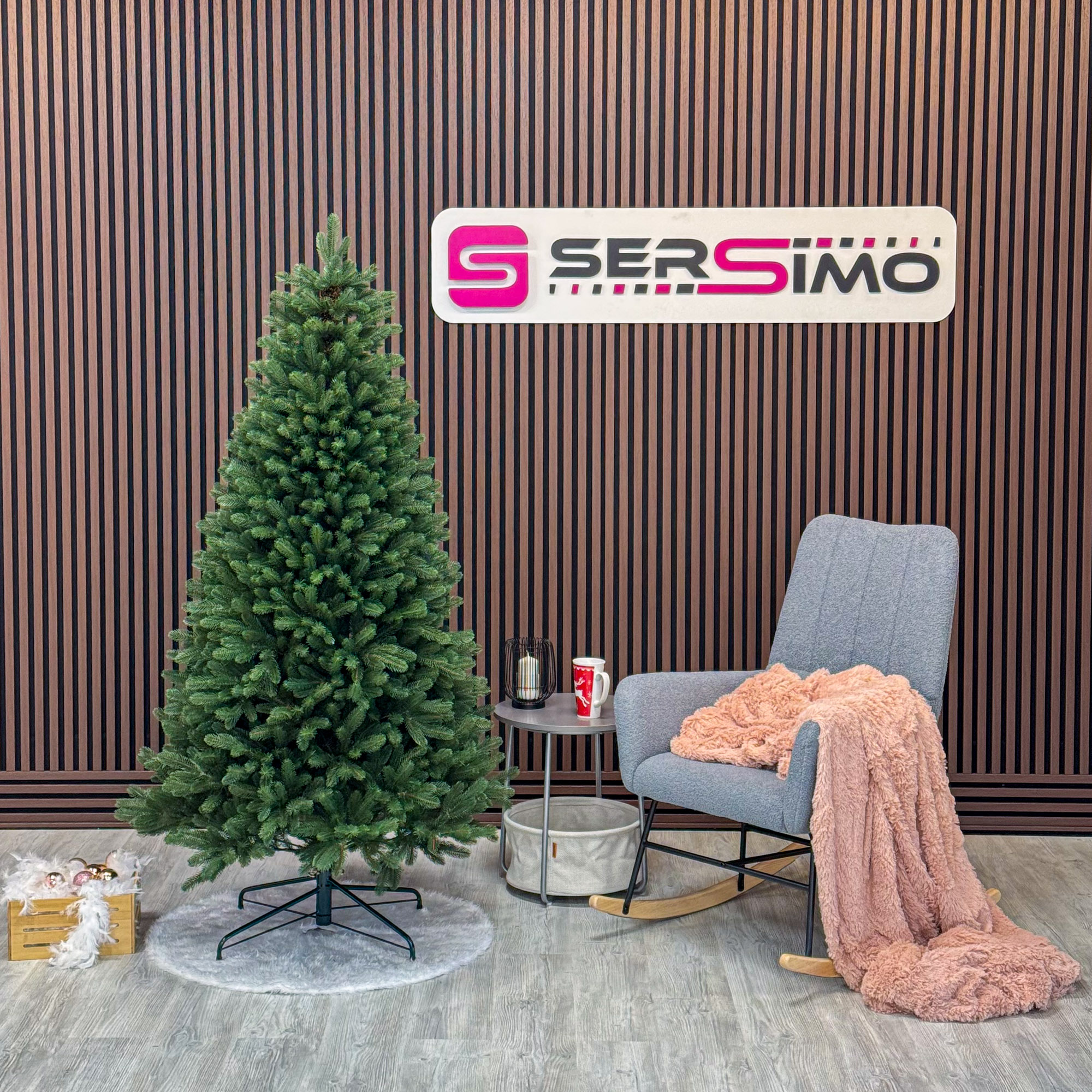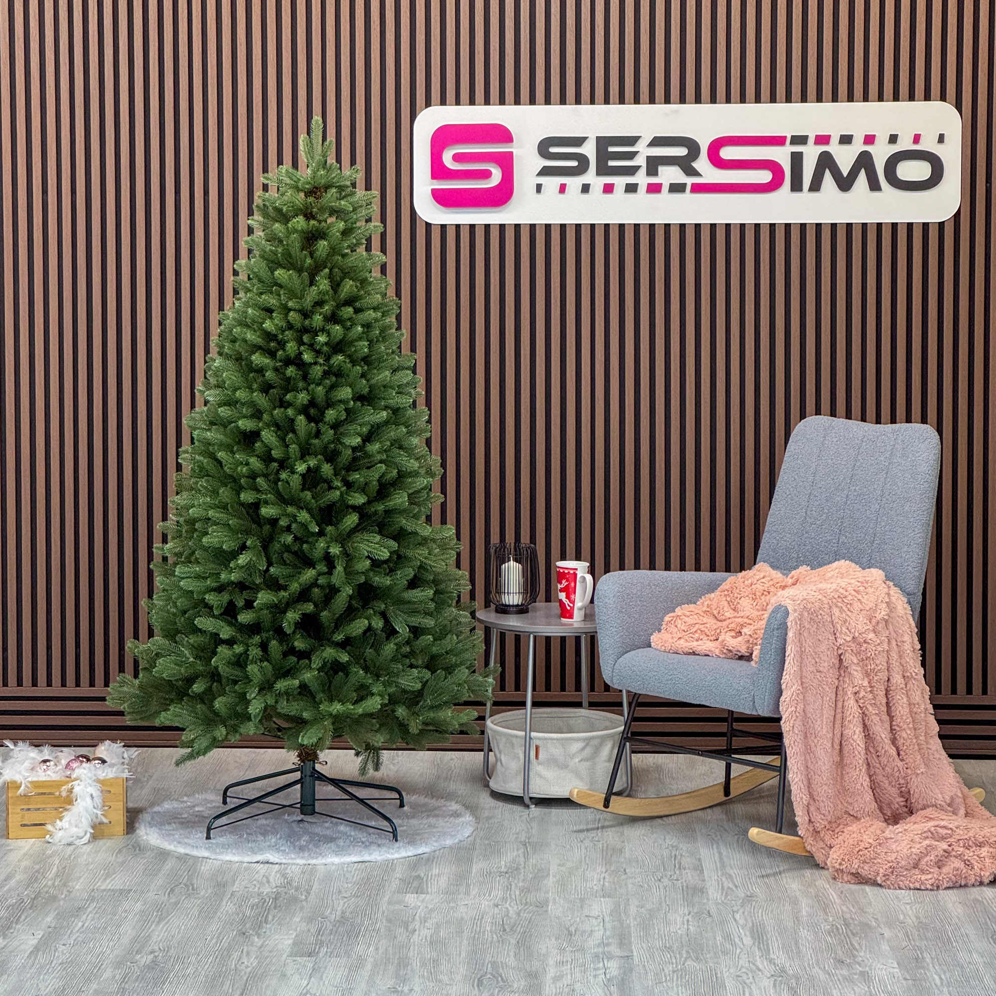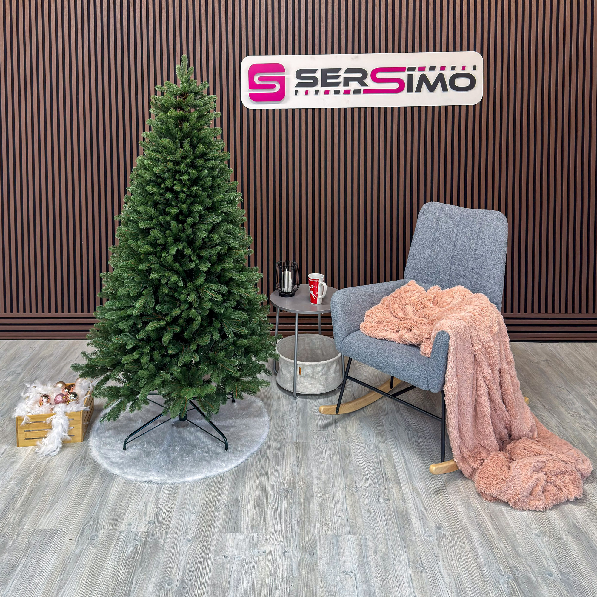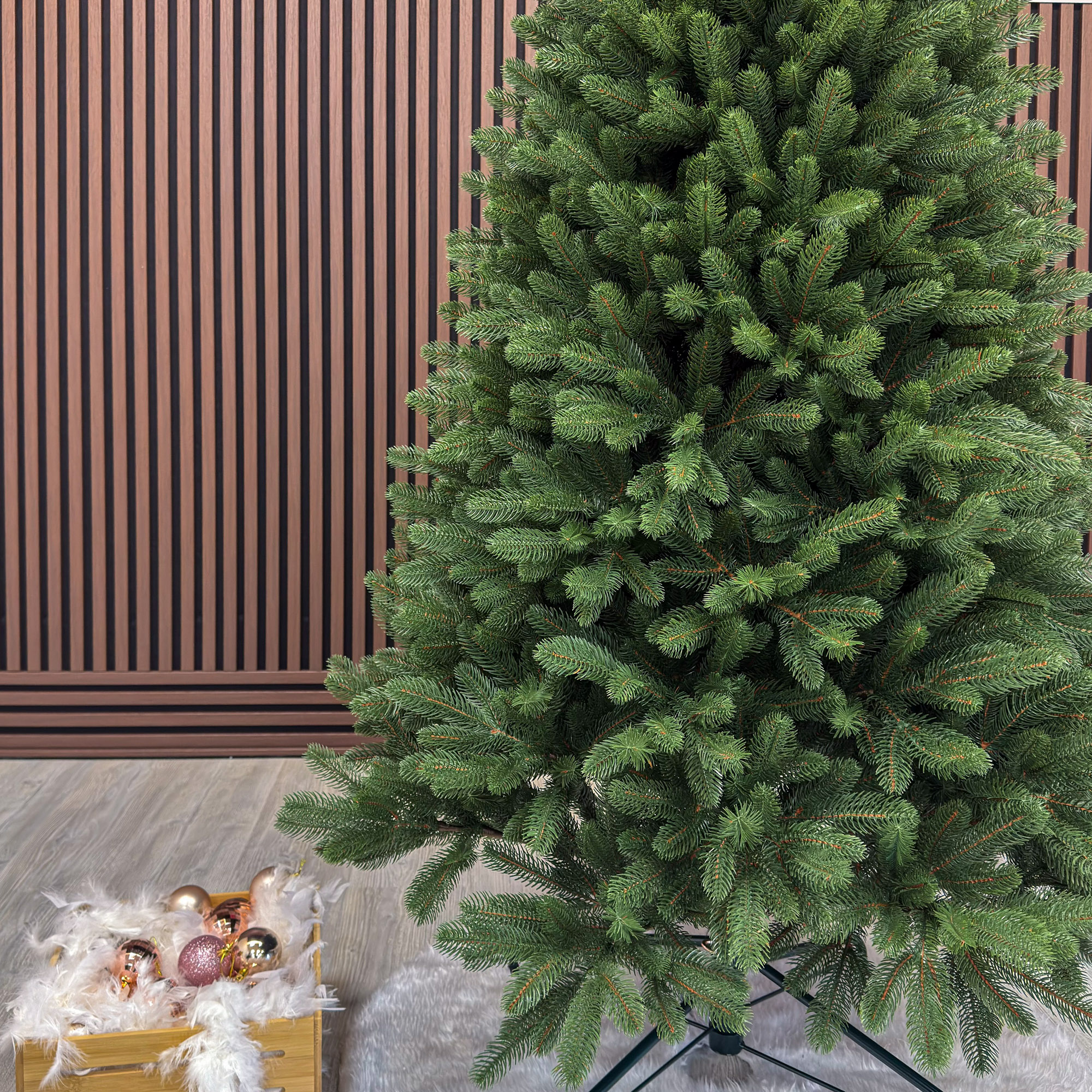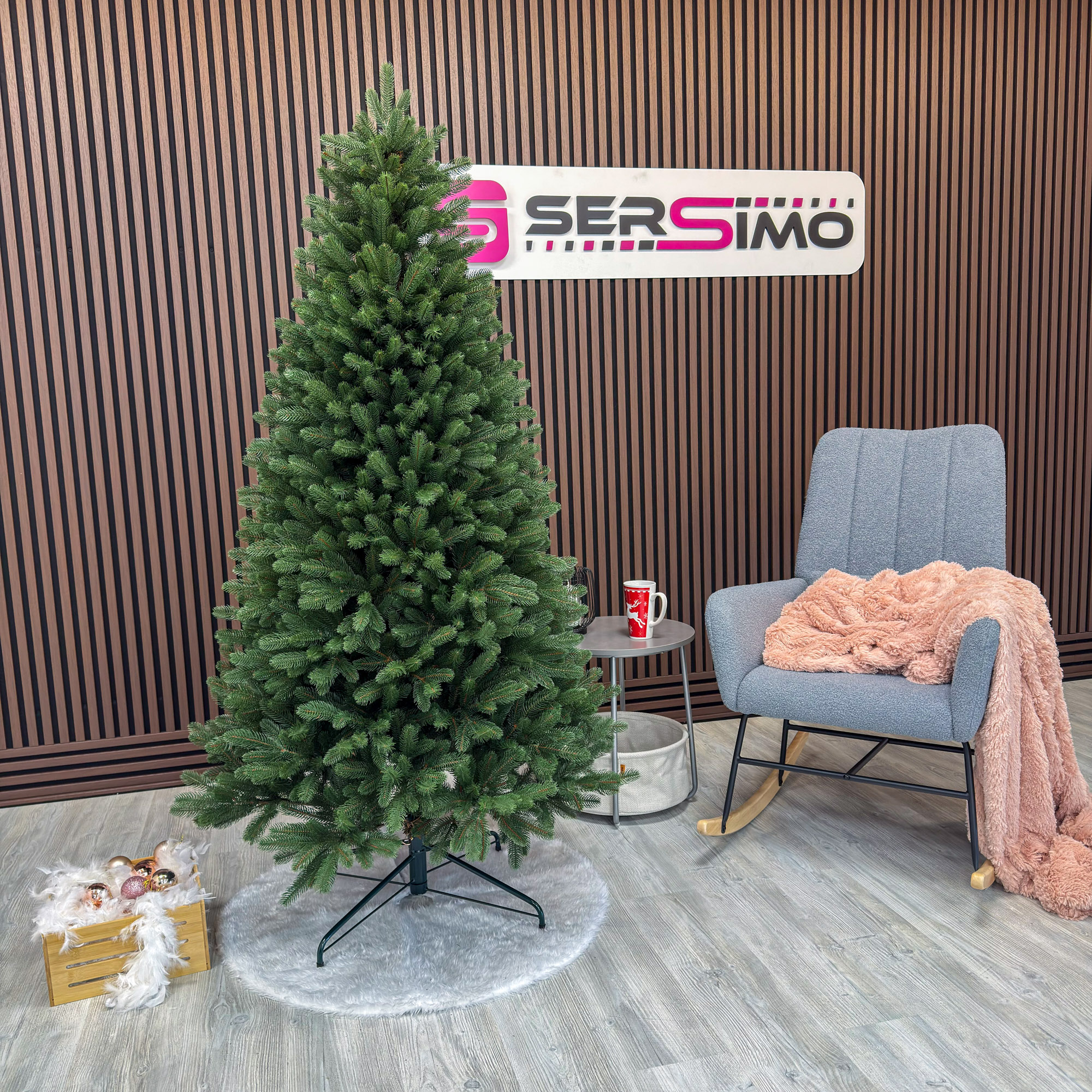 Imagine reala de prezentare pentru modelul Viorisse Elite, verde, integral 3D, 190 cm PARAMETRII: – Inaltimea totala a bradului (dimensiune masurata de la podea pana in varf, cu tot cu suport): 190 cm – Diametrul (latimea la baza in cel mai lat punct): 105 cm – Numarul total al ramificatiilor: 900 dintre care:– Crengute 2D, material PVC: -– Crengute 3D, material PE: 900– Suport inclus: metal– Zapada: NU– Alte decoratiuni: -– Greutate (fara ambalaj): 15 kg– Dimensiune ambalaj carton: 31 x 31 x 125 cm– Sistem instalare: umbrela cu balamale BRAD DE CRACIUN UNIC PENTRU CRACIUN UNIC Ce poate fi mai fermecator decat atmosfera unica a Craciunului? Si probabil ca niciunul dintre noi nu se indoieste ca un brad splendid impodobit este cel mai important element care construieste aceasta atmosfera magica de Craciun. La urma urmei, ritualul anual al impodobirii in familie a bradului de Craciun este unul dintre cele mai de neuitat momente, evocand multe amintiri frumoase. Bradul de Craciun prezentat va reflecta atmosfera minunata a Craciunului intr-un mod unic, si in acelasi timp atat de cunoscut si de indragit, subliniindu-i caldura si atmosfera de familie. DESCOPERA AVANTAJELE POMULUI NOSTRU DE CRACIUN – manopera precisa, imbinand soliditatea cu eleganta– densitate mare de ramuri si ace– distributie uniforma a acelor pe toata ramura – fara goluri– spatiu liber sub etajul inferior pentru cadouri– posibilitate de modelare a crengutelor in mai multe moduri– varietatea si realismul capetelor de crenguta– culoarea acelor imitand perfect acele naturale– diferentierea ramurilor – in functie de nivelul de inaltime– grosimea si durabilitatea firelor– fiabilitatea intregii structuri – arborele este aproape imposibil de distins de brazii naturali Cu bradul Christmas Deluxe by Sersimo® – un element inseparabil al Craciunului – veti petrece aceasta perioada magica de iarna intr-o aura de bucurie si caldura. Ganditi-va doar cat de frumos vor arata decoratiunile – stralucitoare, presarate cu sclipici, incalzind interiorul. Chiar si oamenii care nu impartasesc entuziasmul de Craciun recunosc ca un brad de Craciun impodobit frumos creeaza o atmosfera aparte. Cel mai mare avantaj al bradului nostru de Craciun este numarul mare de ramuri dens aranjate. Datorita densitatii si elegantei sale captivante, nu necesita prezenta a numeroase decoratiuni, fiind cu adevarat un decor grozav al oricarui interior! Etajul cel mai de jos al pomului de Craciun este la inaltimea potrivita, astfel incat sa puteti pune cu usurinta cadourile de Craciun sub el.Crengile pot fi indoite cu usurinta in diferite directii pentru a modela diferitele ramuri ale pomului si a le da forme diferite. Crengutele individuale au finaluri realiste si variate, iar niciuna nu este taiata intr-un mod artificial si inestetic. Culoarea lor intr-un mod extrem de realist imita culoarea reala a coniferelor si nu se estompeaza in timp. Sarma ascunsa cu grija nu se vede prin ace si, in acelasi timp, este suficient de groasa si rezistenta pentru ca bradul sa va serveasca ani de zile! Ace din folie PVC, puternice si durabile, sunt in acelasi timp extrem de placute la atingere. Deoarece bradul de Craciun – spre deosebire de copacii adevarati – nu ii pierde, nu va fi nevoie sa aspirati camera in mod regulat. Mai mult decat atat, acele sunt distribuite uniform pe toata lungimea ramurii, garantand astfel un efect vizual de densitate, fara goluri.