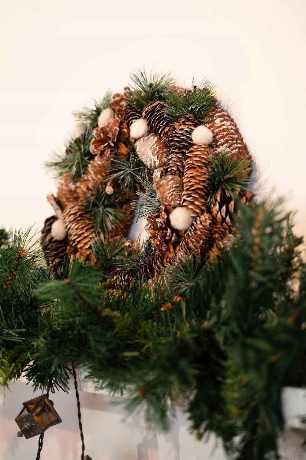 Specificatii tehnice Culoare: bej Material: conuri de pin, EPS Dimensiuni produs: diametru 34 cm x grosime 7 cm Scurta descriere Coronita decorativa aduce eleganta naturala si o nota festiva in decorul tau de sarbatori. Conurile de pin, ramurile fine si accentele glitterate se imbina perfect, evocand farmecul padurii in prag de iarna. Caracteristici principale Design natural cu detalii stralucitoare pentru o atmosfera calda de Craciun Realizata din conuri de pin autentice si ramuri decorative Accente bej si glitter pentru un aspect elegant Poate fi utilizata ca decor de usa, masa sau perete Reutilizabila, ideala pentru decoratiuni traditionale sau moderne
