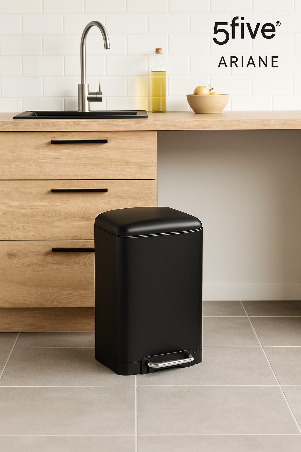Specificatii tehnice Marca: 5Five Model: Ariane Material: Otel/PP Culoare: Negru Dimensiuni produs: L. 30 x P. 29.5 x H. 53.3 cm Capacitate: 20 L Sistem de inchidere: Cu amortizare (inchidere lina si silentioasa) Tip deschidere: Cu pedala Scurta descriere Cosul de gunoi 5Five Ariane de 20L este o alegere eleganta si practica pentru spatiile moderne. Realizat din otel si PP durabil, are un sistem de inchidere lina si silentioasa, iar pedala permite deschiderea igienica fara atingere. Cuva interioara detasabila asigura o curatare usoara si confort in utilizare zilnica. Caracteristici principale Design modern si functional Sistem de inchidere silentioasa Pedala practica pentru deschidere usoara Cuva interioara detasabila Capacitate 20L, potrivit pentru uz casnic