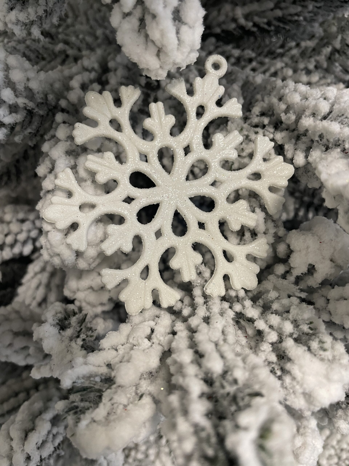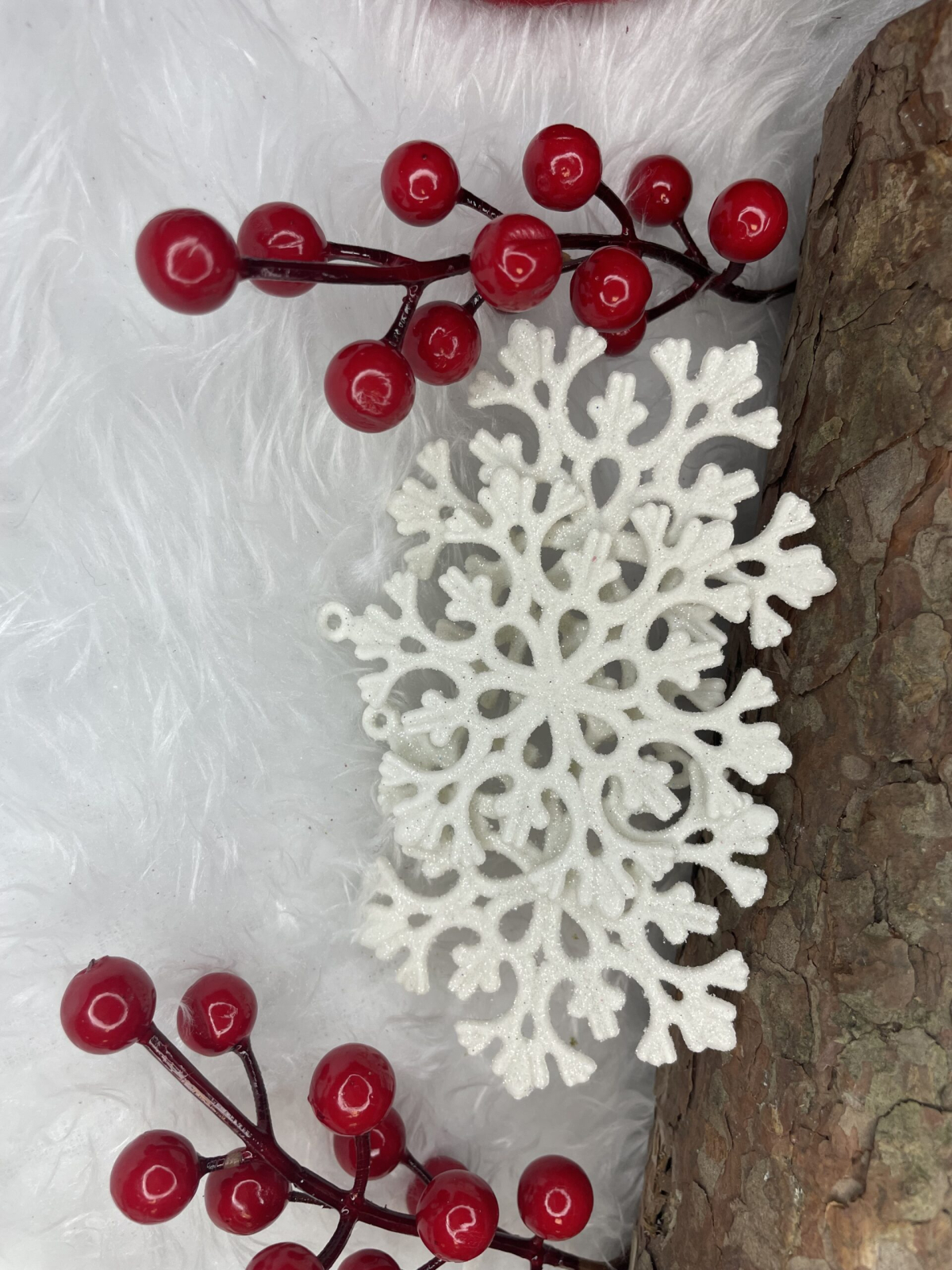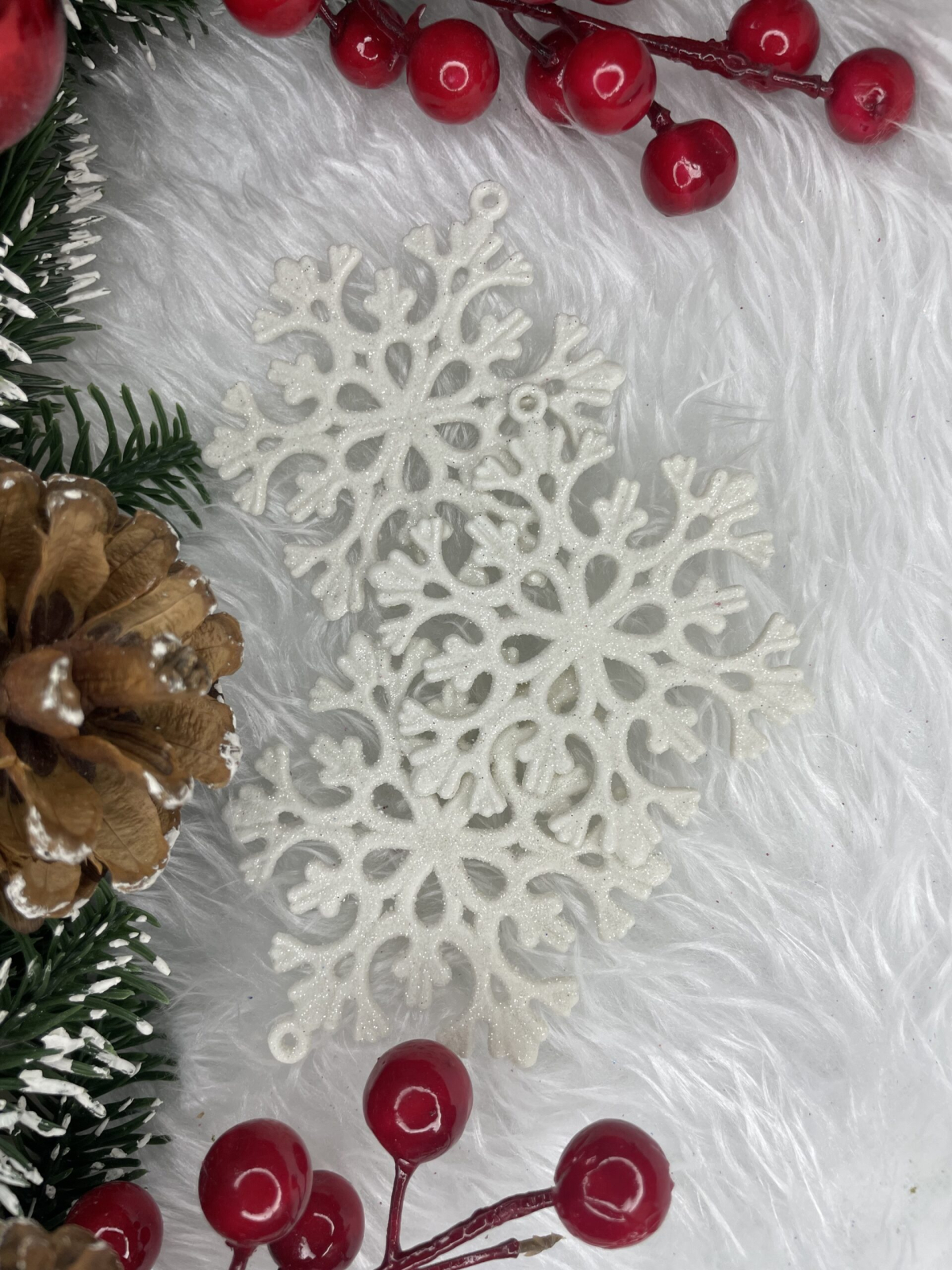 Dimensiune: 8 cm Culoare: alb Tipul de decor: sclipici Numar de bucati per pachet:8 Material: plastic Puncte forte: decor frumos cu sclipici Craciunul, ca si intreaga perioada de iarna, este o perioada magica, plina de caldura si de o atmosfera unica, creata datorita unui spectacol de decoratiuni fabuloase si constelatii luminoase incantatoare. Pandantivele frumoase in forma de fulgi de zapada va vor decora frumos bradul de Craciun. Setul este format din 8 fulgi de zapada cu decupaje frumoase. Realizat cu grija - cu atentie la cel mai mic detaliu Indestructibil - sigur pentru casele cu copii si animale de companie Finisaj cu sclipici - un aspect unic Copiii care adora sa impodobeasca bradul, precum si o pisica care vaneaza cu insistenta un brad de Craciun, se vor putea bucura de aceasta perioada speciala fara teama de a se rani. Vei ramane calm chiar daca unul dintre pandantivele noastre iti cade din maini.