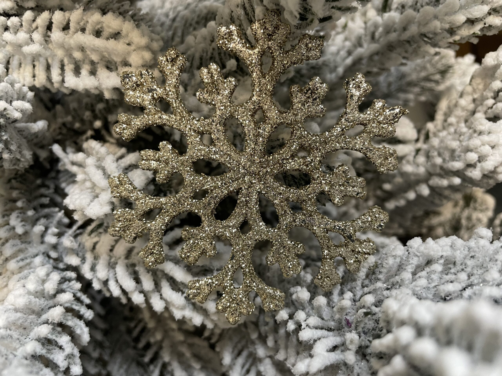 Dimensiune: 8 cm Culoare: auriu Tipul de decor: sclipici Numar de bucati per pachet: 8 Material: plastic Puncte forte: decor frumos cu sclipici Craciunul, ca si intreaga perioada de iarna, este o perioada magica, plina de caldura si de o atmosfera unica, creata datorita unui spectacol de decoratiuni fabuloase si constelatii luminoase incantatoare. Pandantivele frumoase in forma de fulgi de zapada va vor decora frumos bradul de Craciun. Setul este format din 8 fulgi de zapada cu decupaje frumoase.. Realizat cu grija - cu atentie la cel mai mic detaliu Indestructibil - sigur pentru casele cu copii si animale de companie Finisaj cu sclipici - un aspect unic Copiii care adora sa impodobeasca bradul, precum si o pisica care vaneaza cu insistenta un brad de Craciun, se vor putea bucura de aceasta perioada speciala fara teama de a se rani. Vei ramane calm chiar daca unul dintre pandantivele noastre iti cade din maini.