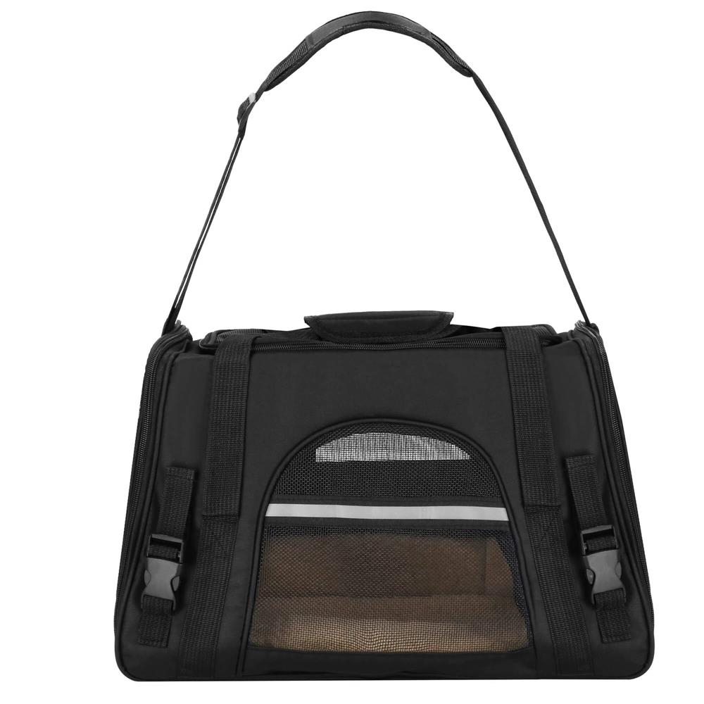 Culoare: negru Material: poliester Sarcina maxima: 12 kg Marime: M Dimensiuni: 27 x 44 x 24,5 cm Manere + curea de umar Pliabil: da Fiecarui proprietar de animale de companie ii pasa de confortul si siguranta acestora. De asemenea, este bine cunoscut faptul ca animalele domestice calatoresc uneori cu noi sau necesita vizite la veterinar, iar uneori trebuie pur si simplu sa fie izolate de ceilalti, de exemplu, dupa o interventie chirurgicala sau in timpul bolii. Prin urmare, un suport usor si practic pentru animale de companie este un accesoriu esential pentru proprietarii de animale mai mici, cum ar fi caini, pisici, iepuri sau rozatoare. Un mare avantaj al suportului este posibilitatea de pliere - este format din piese conectate cu fermoar . Pentru a asambla suportul, peretii laterali trebuie fixati impreuna direct, iar elementele ramase ale suportului se potrivesc in interior intre ele - datorita acestui lucru, va ocupa foarte putin spatiu! Gaurile de ventilatie ofera animalului dvs. un sentiment de confort ridicat - ceea ce este extrem de important pentru micutii bolnavi. Acestia vor putea calatori in liniste si confort, usurandu-le sederea departe de casa, care este destul de stresanta pentru micii nostri prieteni.