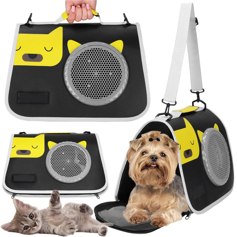 Culoare: negru, galben, gri Material: poliester, plastic, MDF Sarcina maxima: 10 kg Marime: S/M Dimensiuni: 24 x 40 x 24 cm Prindere de mana + curea de umar Pliabil: da Fiecarui proprietar de animale de companie ii pasa de confortul si siguranta acestora. De asemenea, este bine cunoscut faptul ca animalele domestice calatoresc uneori cu noi sau necesita vizite la veterinar, iar uneori trebuie pur si simplu sa fie izolate de ceilalti, de exemplu, dupa o interventie chirurgicala sau in timpul bolii. Prin urmare, un suport usor si practic pentru animale de companie este un accesoriu esential pentru proprietarii de animale mai mici, cum ar fi caini, pisici, iepuri sau rozatoare. Un mare avantaj al suportului este posibilitatea de pliere - este format din piese conectate cu fermoar . Pentru a asambla suportul, peretii laterali trebuie fixati impreuna direct, iar elementele ramase ale suportului se potrivesc in interior intre ele - datorita acestui lucru, va ocupa foarte putin spatiu! Gaurile de ventilatie ofera animalului dvs. un sentiment de confort ridicat - ceea ce este extrem de important pentru micutii bolnavi. Acestia vor putea calatori in liniste si confort, usurandu-le sederea departe de casa, care este destul de stresanta pentru micii nostri prieteni.