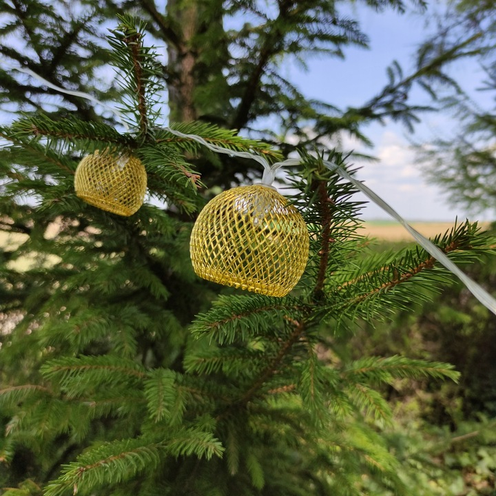 Specificatie: Ghirlanda solara 10 becuri Baterie 1.2 V Lungime 1.8 M Lungime cablu de alimentare 2 M Distanta dintre becuri 20 cm Moduri de iluminare: 2 ( continuu, intermitent) Culare: alb cald Timp de incarcare: 8 ore la soare Ghirlanda luminoasa decorativa este solutia perfecta pentru gradina ta! Ghirlandele schimba atmosfera locului de indata ce incep sa straluceasca cu lumina lor calda si blanda. Ghirlanda solara poate fi folosita pentru a ilumina decorativ, printre altele: pergole, balustrade, balcoane, terase, gard, arhitectura gradinii. Ghirlanda este destinata utilizarii in aer liber si trebuie expusa la lumina soarelui in timpul zilei pentru a incarca eficient bateria.Este realizata din material durabil, ceea ce contribuie la durabilitate si viata lunga.In plus fata de avantajul sau practic incontestabil, cu siguranta va face mai atractiva petrecerea timpului in aer liber cu familia, prietenii sau singuri.