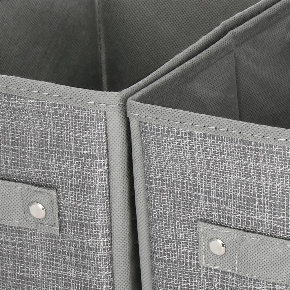 Organizatorul va asigura ca fiecare camera va fi ingrijita si ordonata. Setul este format din 4 cutii diferite care vor avea grija de lenjerie, curele sau sosete. Organizatoarele permit o mai buna gestionare a spatiului in sertare. Datorita acestora, elementele sortate sunt usor de gasit, astfel nu pierzi timpul, de exemplu, in cautarea unui al doilea ciorap. Produsul este fabricat din material netesut rezistent. Peretii laterali rigidizati ai organizatorului fac structura stabila si impiedica indoirea. Culorile clasice se vor potrivi frumos in orice dulap si garderoba. Organizatoarele sunt foarte usoare de desfasurat si pliat. In plus, datorita structurii lor usoare, sunt usor de mutat in alte locuri.Setul include trei organizatoare ceva mici si unul mai mare. O astfel de diviziune permite selectarea diferitelor elemente, cum ar fi bijuterii sau lenjerie intima. Sunt perfecte pentru camera unui copil pentru a sorta jucariile mici sub forma de figurine sau accesorii din plastic. Pot fi folosite si pentru depozitarea produselor cosmetice in baie sau a lenjeriei in dressing. Parametri :Culoare: griNumarul de organizatori din set: 4Material: material netesutConstructie stabila cu parti laterale rigidizateCel mai mare organizator:latime: 30 cmlungime: 30 cminaltime: 21 cmOrganizator mediu:latime: 30 cmlungime: 21 cminaltime: 14,5 cm2 organizatori mici cu:latime 15 cmlungime 21 cminaltime 14,5 cm