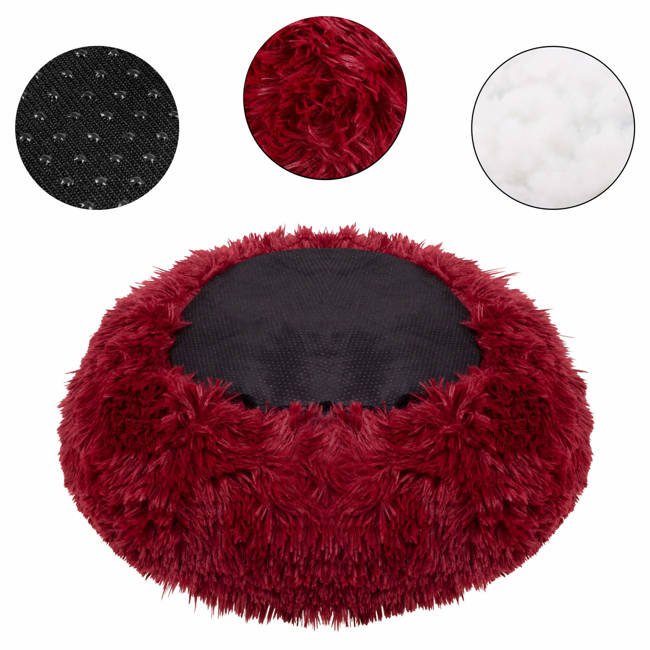 Material: poliester Culoare: visiniu Forma: rotunda Diametru: 40 cm Potrivit pentru catei/pisici cu talie: mai mica de 2.5 kg Baza antiderapanta Acest pat pufos pentru catei si pisici va oferi animalului de companie un loc confortabil pentru odihna si somn. Materialul extrem de placut si pufos ofera un confort extraordinar, oferind in acelasi timp cainilor sau pisicilor un colt cald si sigur. Culcusul prezentat va fi un loc din care animalul tau de companie nu va dori sa se miste! Structura placuta, moale Materialul din care a fost facut patul va permite fiecarui animal de companie sa se simta confortabil si placut. Puful lung, extrem de placut la atingere, va infasoara animalul de companie, mentinandu-l cald. In plus, materialul moale si delicat nu va irita pielea sau parul unui caine sau al unei pisici. Fundul antiderapant, lipit ferm de sol Un mare avantaj al patului este baza sa, care este echipata cu proeminente antiderapante, datorita careia acesta nu aluneca pe podea. Acest element asigura faptul ca produsul se lipeste de podea stabil si nu se misca atunci cand animalul de companie se aseaza in el. Potrivit pentru a fi spalat in masina Dupa cum stiti, animalelor de companie le place adesea sa se murdareasca si astfel pot murdari culcusul. Prin urmare, producatorul s-a asigurat ca acesta poate fi reimprospatat cu usurinta. Tot ce trebuie sa faceti este sa indepartati bumbacul de umplutura - ascuns in spatele fermoarului din partea de jos - si sa spalati patul la 30 de grade. In plus, posibilitatea de a patrunde in interiorul produsului permite inlocuirea umplerii acestuia. Atentie! Umplutura nu poate fi spalata! Functionalitatea merge mana in mana cu un aspect atragator Patul pufos nu este doar un element confortabil al spatiului animalului de companie, ci si un plus de design la interior. Culoarea frumoasa, manopera solida si forma atractiva fac ca produsul sa arate elegant si eficient. AVANTAJE fabricat dintr-un material placut de inalta calitate, posibilitatea de spalare la 30 de grade, umplutura moale, inlocuibila din vata, fundul antiderapant mentine patul intr-un singur loc, forma usoara care usureaza transportul, culori frumoase, la moda