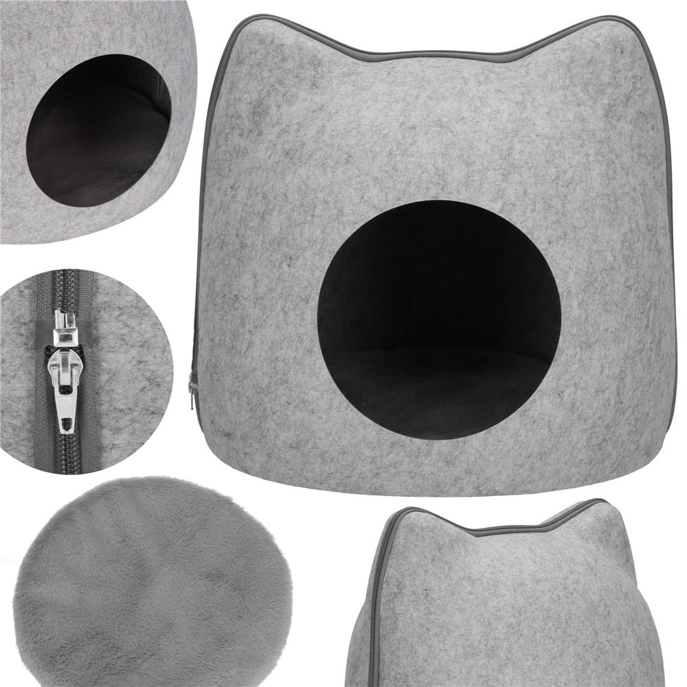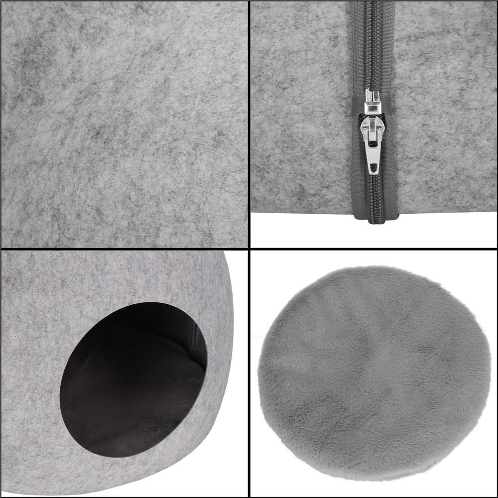 Culoare: gri Material: poliester Patul este format din doua parti, inchise cu fermoar Un pat cu o perna moale detasabila Inaltime totala: 35,5 cm Latime totala: 38 cm Adancime: 36 cm Latime interioara: 37,5 cm Perna moale: 35 x 35 cm Diametru gaura: 18 cm Grosimea muchiei: 2 mm Patul pentru pisici va va permite sa oferiti animalului dvs. de companie un loc regal pentru odihna. Materialul extrem de placut, pufos, asigura un confort deosebit, oferind in acelasi timp pisicii dvs. un colt cald si sigur. Materialul patului va face orice animal de companie sa se simta confortabil. Firele lungi, care sunt extrem de placute la atingere, va vor invalui animalul de companie in caldura. Mai mult, materialul moale si delicat nu va irita pielea sau blana pisoiului dumneavoastra. Un mare avantaj al patului este baza sa, care a fost prevazuta cu stifturi antiderapante pentru a preveni alunecarea patului pe podea. Acest element asigura faptul ca produsul se lipeste ferm de podea si nu se misca atunci cand animalul intra in incapere. In interiorul patului exista o perna moale pentru a oferi si mai mult confort pisicii dumneavoastra. Perna poate fi indepartata si utilizata in afara patului pentru pisici si poate fi, de asemenea, spalata manual. Informatii suplimentare: Va rugam sa spalati manual Nu clorinati sau inalbiti Nu uscati cu masina Nu calcati Nu curatati chimic