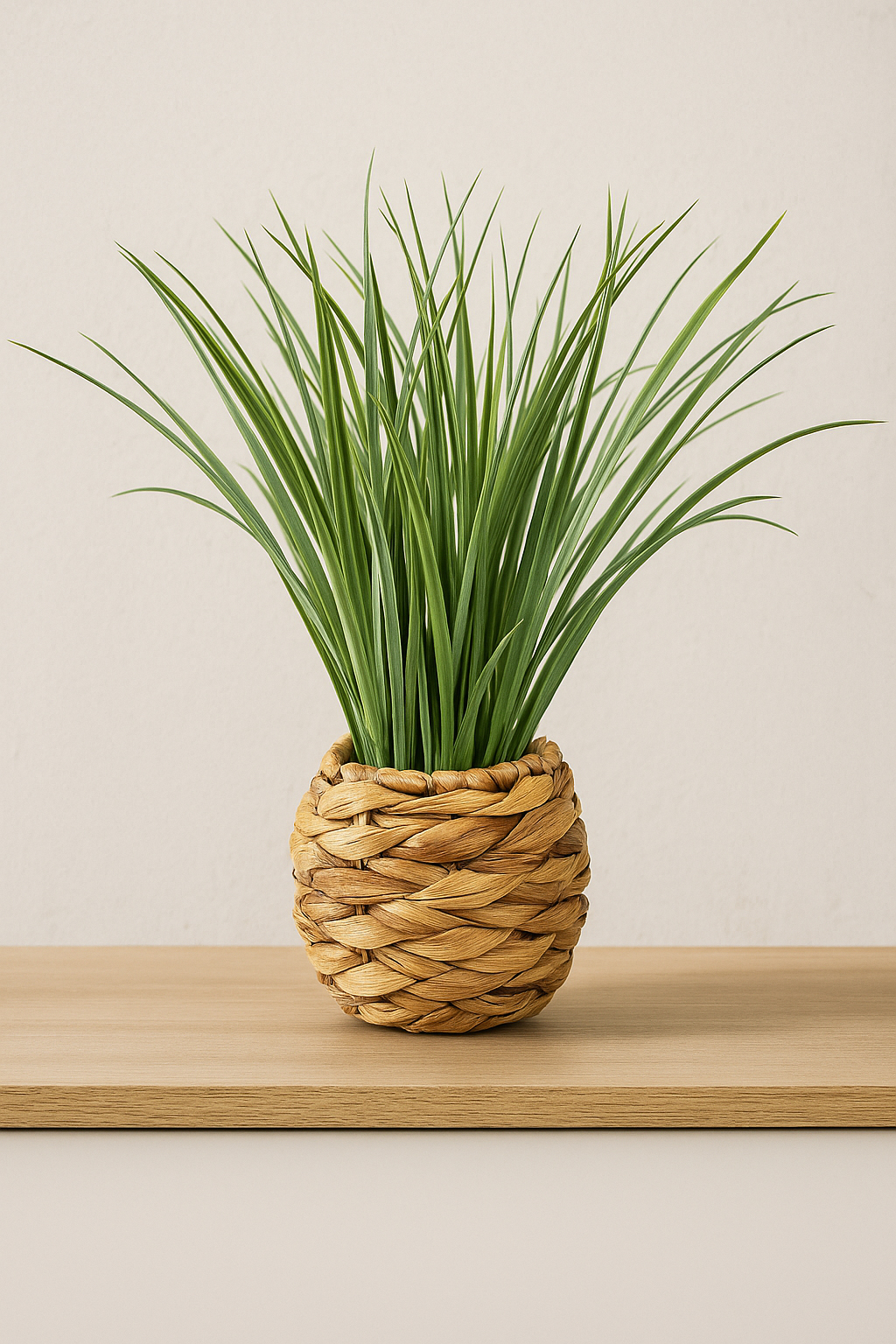 Specificatii tehnice Marca: Atmosphera Culoare: Maro natural Dimensiuni produs: D50 x H48,5 cm Dimensiuni ghiveci: D19 x H17 cm Material: Fibre naturale impletite, polietilena, nisip Scurta descriere Planta decorativa artificiala Atmosphera aduce un strop de verdeata si rafinament in orice spatiu interior. Asezata intr-un ghiveci impletit din fibre naturale, aceasta imita perfect aspectul ierbii reale, fiind ideala pentru decorul livingului, dormitorului sau biroului. Fara intretinere, dar cu efect vizual proaspat si placut, se integreaza armonios in decorurile moderne sau boeme. Caracteristici principale Design natural cu efect realist Ghiveci impletit din jacinta de apa Fara intretinere – nu necesita udare Potrivita pentru orice tip de decor interior Adauga prospetime si caldura ambientului