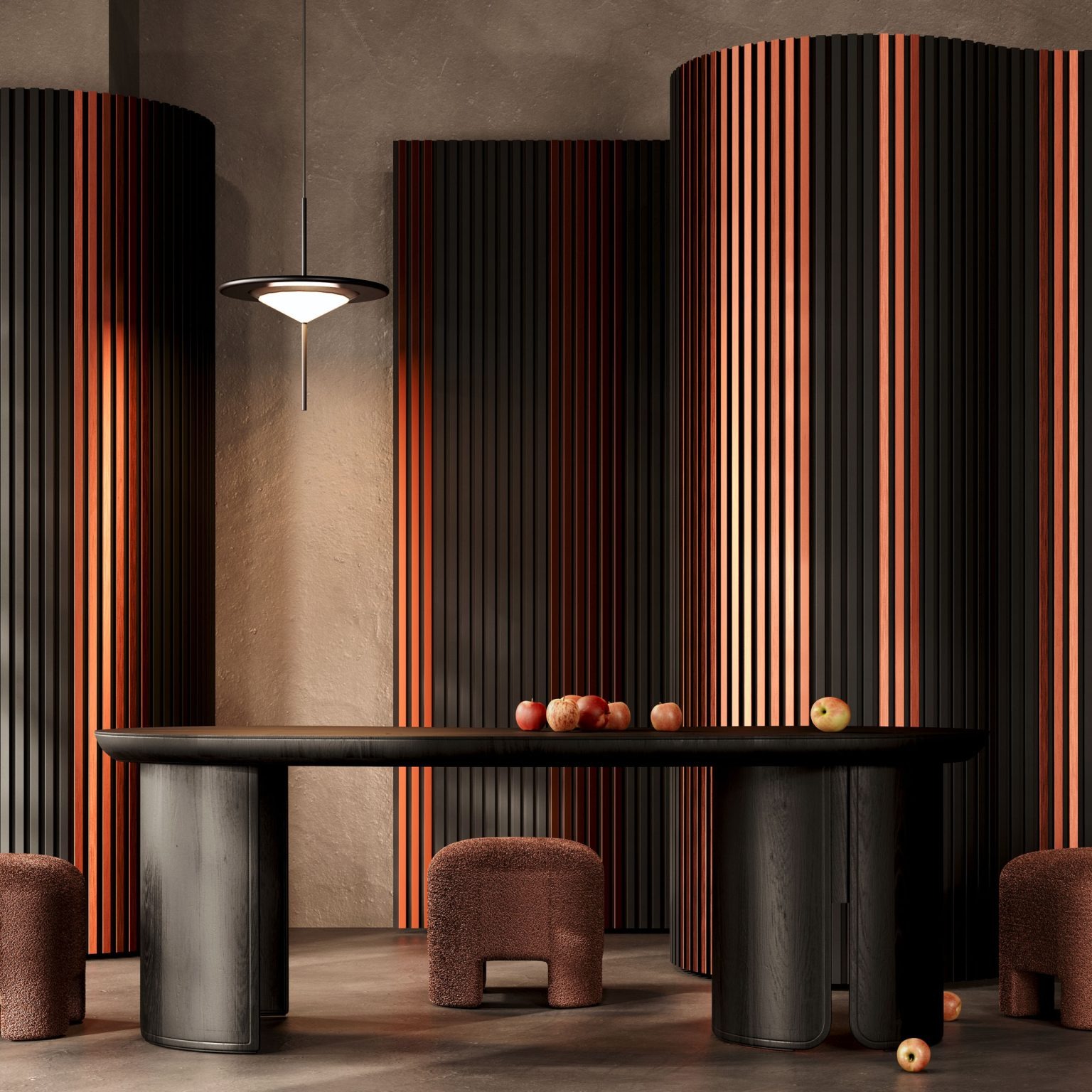 Adauga eleganta si functionalitate spatiului tau cu un panou decorativ acustic tip riflaj, realizat din MDF premium si montat pe un suport PET netesut reciclat. Cu un finisaj sofisticat si un design modern, acest panou este ideal pentru perete sau tavan, in locuinte, birouri sau spatii comerciale. Structura sa acustica ajuta la reducerea zgomotului ambiental, oferind in acelasi timp un aspect vizual rafinat. Se instaleaza usor (multiple variante de fixare: adeziv, holsuruburi, etc) si permite acoperirea suprafetelor fara imbinari vizibile, asigurand un rezultat continuu si uniform. Este o alegere excelenta pentru cei care doresc sa imbina designul contemporan cu un produs sustenabil, realizat in Uniunea Europeana din materiale reciclabile. Specificatii generale Tip produs: Panou decorativ acustic Material lamele: MDF E1 Material suport: Feltru PET reciclat Finisaj: Cupru periat (folie continua pe margini) Culoare suport: Negru Dimensiuni: 260 x 40 x 2 cm (L x l x grosime) Montaj: Pe perete sau tavan Utilizare: Interior (locuinte birouri comerciale studiouri) Caracteristici principale Design modern ideal pentru amenajari elegante sau minimaliste Fonoabsorbant reduce zgomotul ambiental si reverberatiile Instalare rapida fara imbinari vizibile intre panouri Produs non-toxic realizat din materiale certificate EU Fabricat integral in Uniunea Europeana Potrivit pentru dormitor living hol birou sau bucatarie Materiale ecologice cu impact redus asupra mediului Transport si ultilizare: ambalarea si livrarea poate fi facuta in cutii de carton care pot contine pana la 3 bucati, indiferent daca achizitia este facuta la nivel de bucata sau set; Produsul este destinat strict pentru interiorul locuintelor (nu exterior) si acesta nu trebuie montat in zone cu umiditate mare (gen: bai)