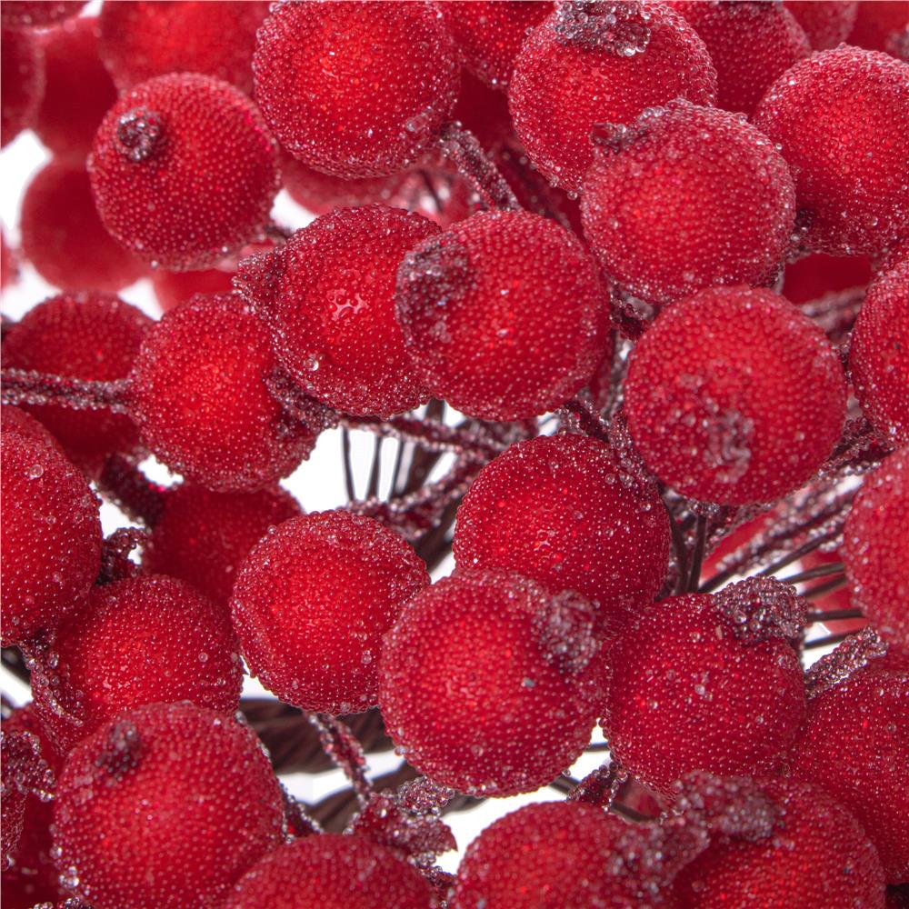 Set decorativ ramuri cu merisoare rosii artificiale inghetate, 15 cm, 200 boabe, rosu