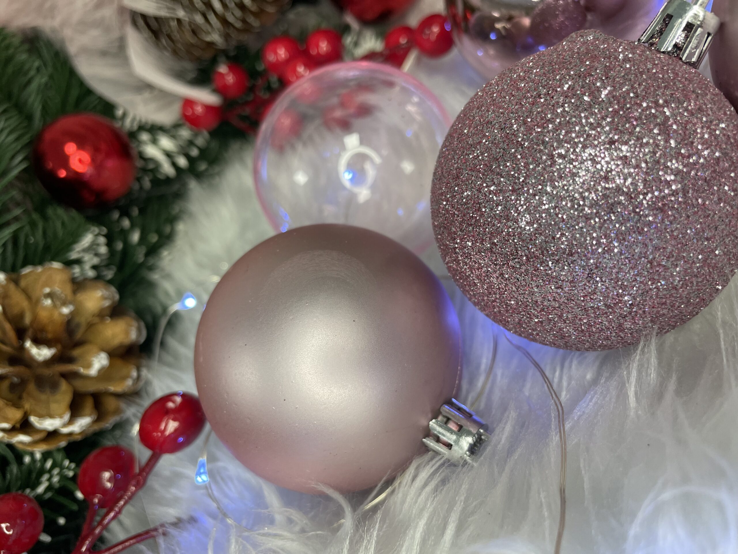 Set globuri de Craciun, 100 bucati, 6cm, roz