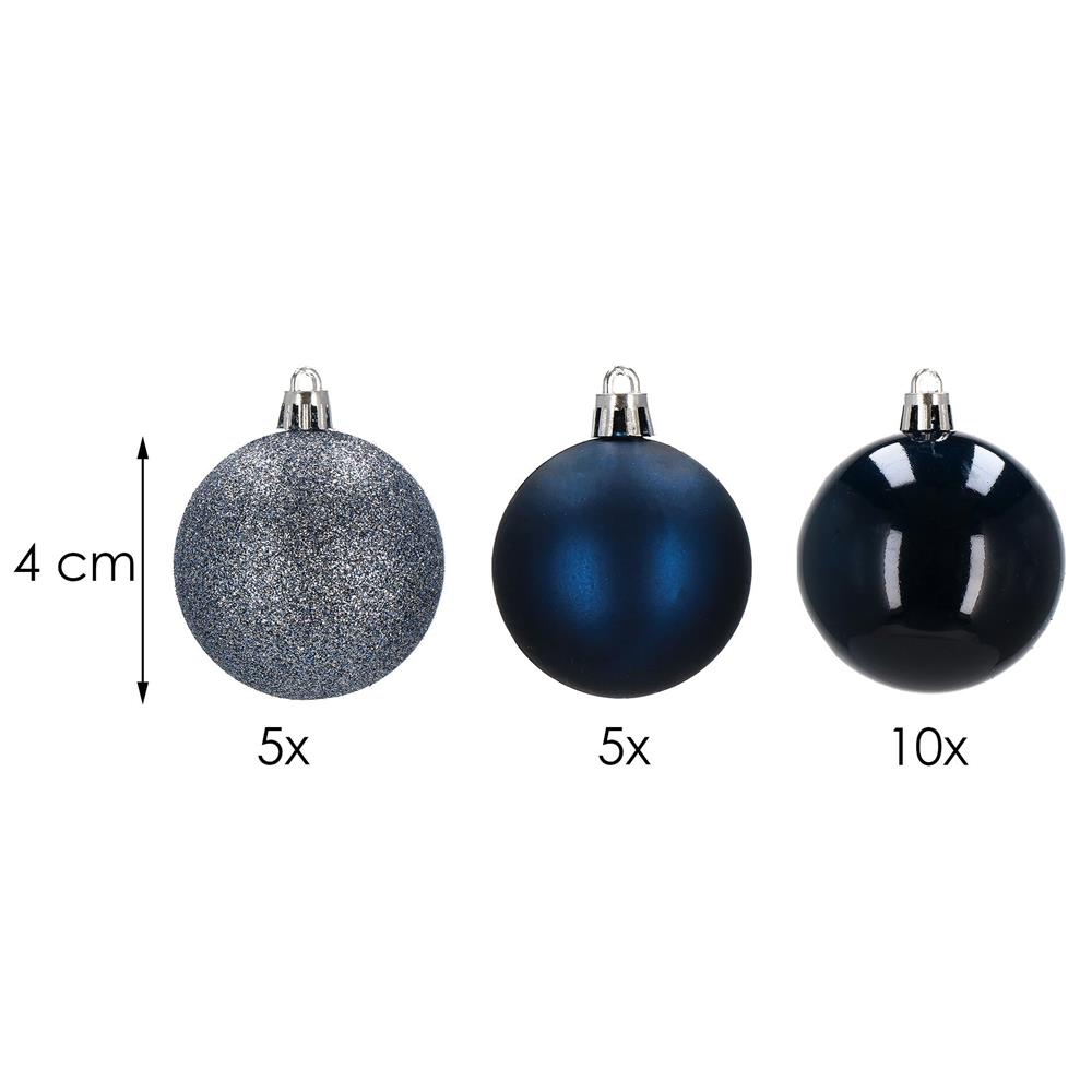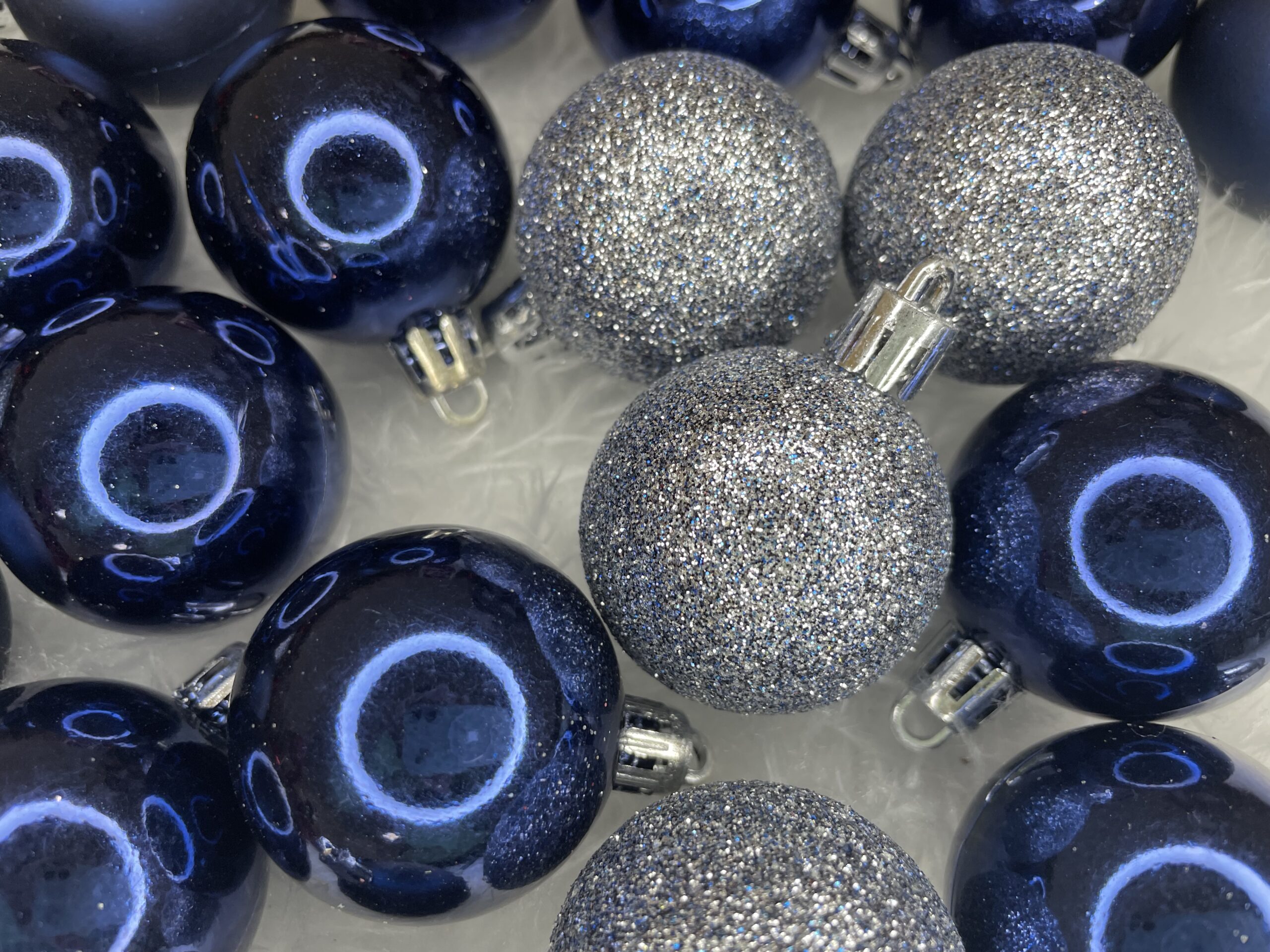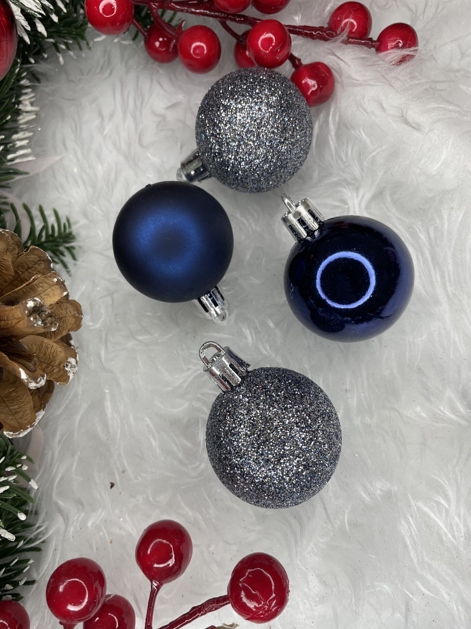 Culoare: albastru marin Material: plastic Dimensiune: 4 cm Cantitate: 20 bucati de globulete Modele: mat, cu sclipici, perlat Incasabil, snururi argintii pentru agatat Craciunul, ca si intreaga perioada de iarna, este o perioada magica, plina de caldura si de o atmosfera unica, creata datorita unui spectacol de decoratiuni fabuloase si constelatii luminoase incantatoare. Designul din plastic creste siguranta datorita materialului incasabil. Alegerea lor in locul globurilor de sticla va contribui la siguranta celor mici din casa. Globuletele pentru bradul de Craciun arata la fel ca cele din sticla. Datorita suprafetei lor netede ca o oglinda si a finisajului cu sclipici, acestea reflecta lumina in mod fantastic, sporind efectul de decoratiuni sclipitoare si stralucitoare, care aduc in minte asocieri cu un peisaj de iarna rece si inzapezit. Globuletele pentru bradul de Craciun va vor permite sa va decorati casa de Craciun intr-un mod nelimitat. Puteti crea din ele: Aranjamente unice pentru bradul de Craciun Aranjamente de masa si de pervaz Decoratiuni pentru usi si ornamente pentru rame de usa Cadouri practice de Craciun pentru cei dragi Impachetari unice pentru cadouri - folositi mai multe in loc de funda