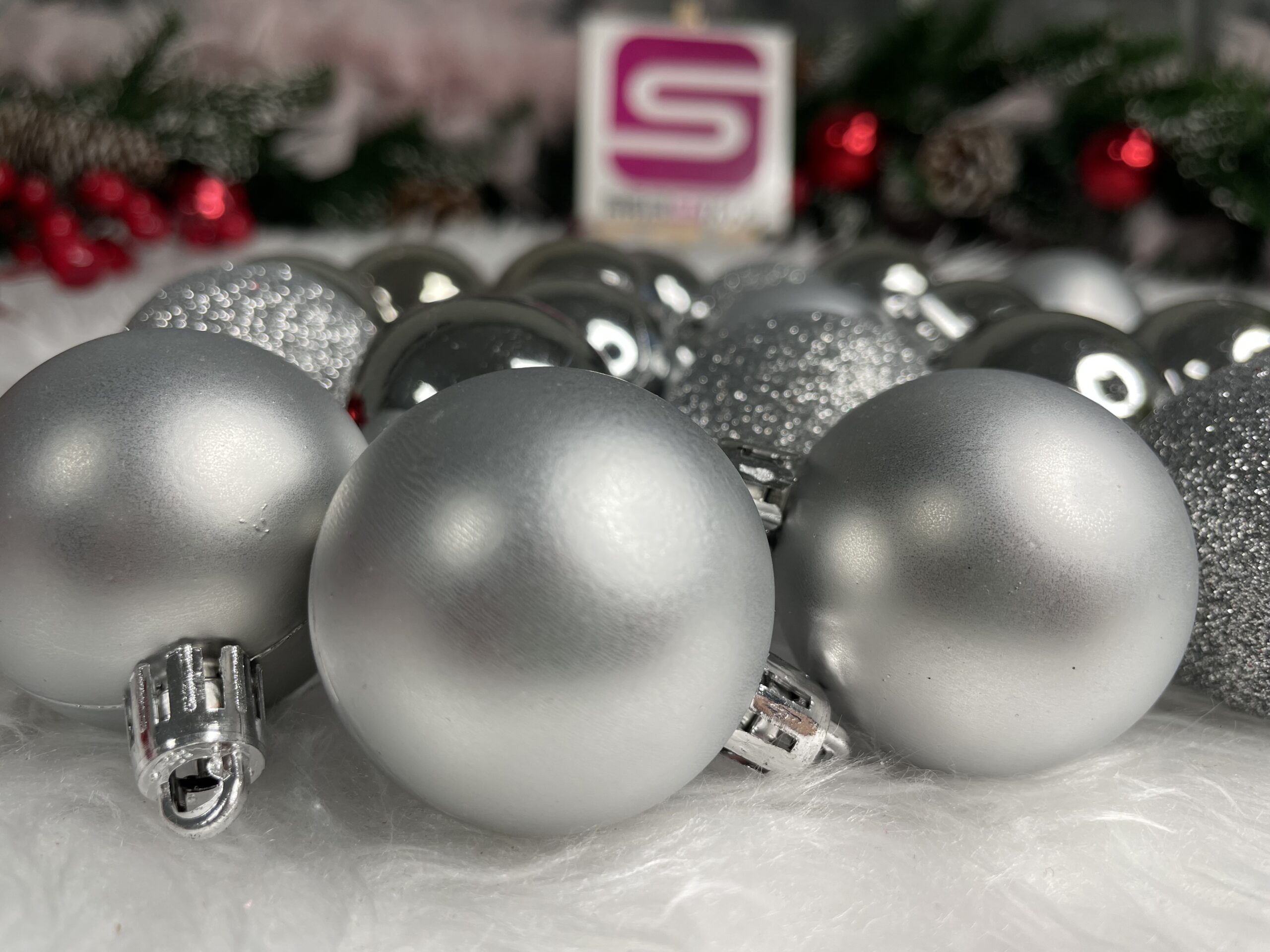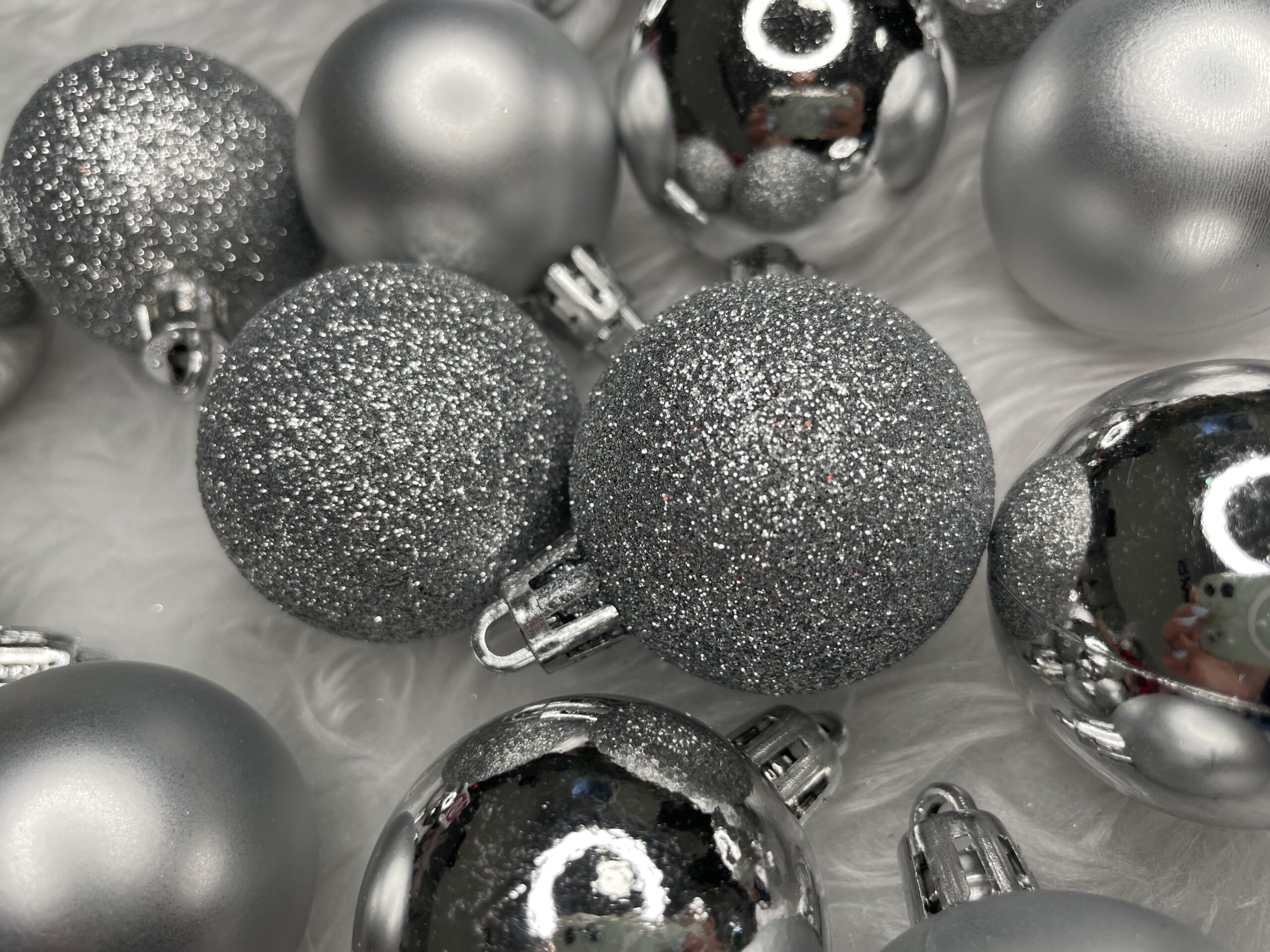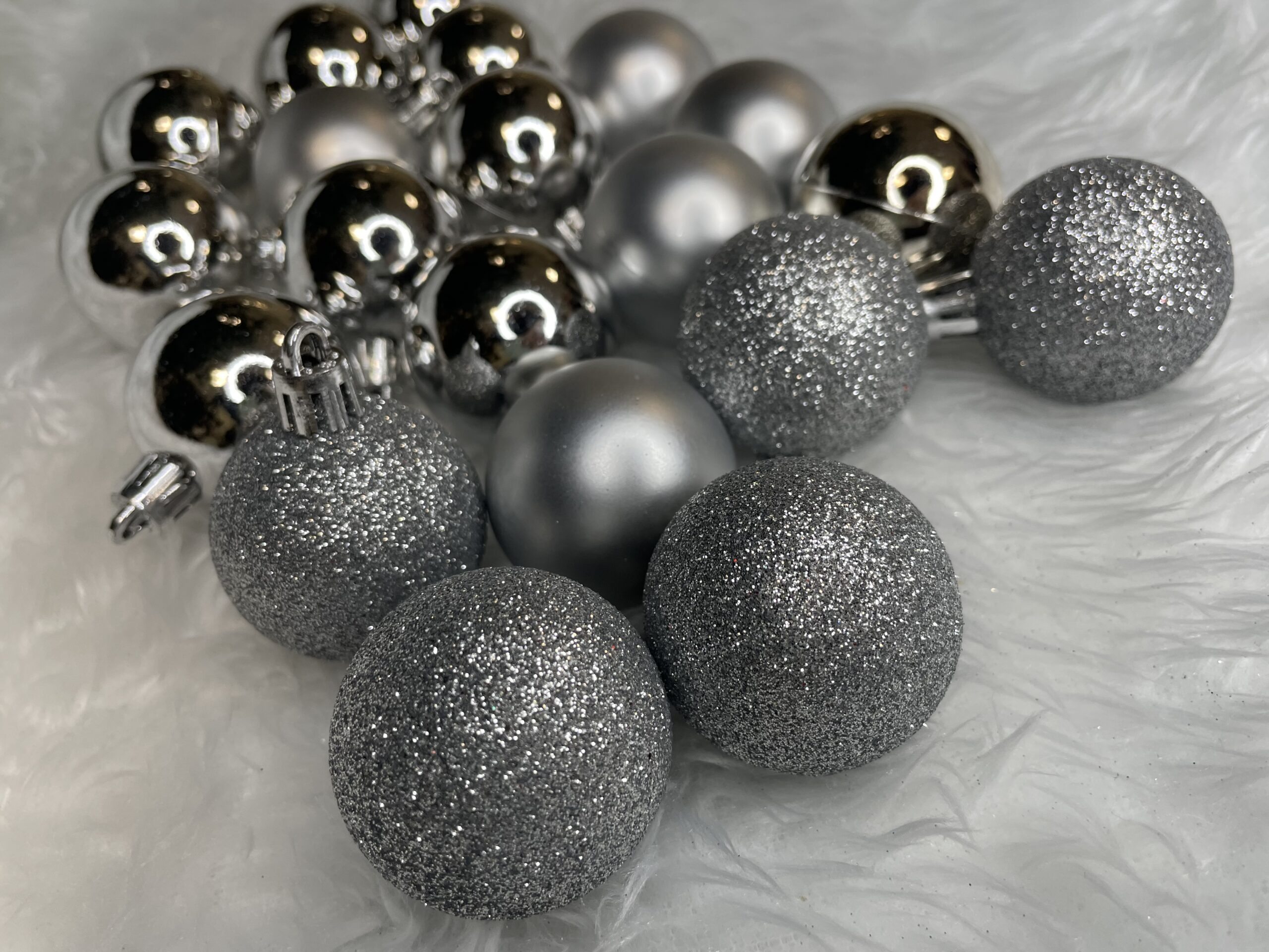Culoare: argintiu Material: plastic Cantitate: 20 bucati de globulete Dimensiune: 4 cm Modele: mat, sclipici, stralucitor Incasabil, cordoane argintii pentru agatat Craciunul, ca si intreaga perioada de iarna, este o perioada magica, plina de caldura si de o atmosfera unica, creata datorita unui spectacol de decoratiuni fabuloase si constelatii luminoase incantatoare. Designul din plastic creste siguranta datorita materialului incasabil. Alegerea lor in locul globurilor de sticla va contribui la siguranta celor mici din casa. Globuletele pentru bradul de Craciun arata la fel ca cele din sticla. Datorita suprafetei lor netede ca o oglinda si a finisajului cu sclipici, acestea reflecta lumina in mod fantastic, sporind efectul de decoratiuni sclipitoare si stralucitoare, care aduc in minte asocieri cu un peisaj de iarna rece si inzapezit. Incasabil - sigur pentru casele cu copii si animale de companie Culori la moda - ideale atat pentru decoruri traditionale, cat si moderne Impachetate estetic - pur si simplu le infasurati cu panglica si sunt gata de a fi oferite cadou Vin cu snururi decorative - nu trebuie sa va faceti griji cu privire la problemele de agatare Globuletele pentru bradul de Craciun va vor permite sa va decorati casa de Craciun intr-un mod nelimitat. Puteti crea din ele: Aranjamente unice pentru bradul de Craciun Aranjamente de masa si de pervaz Decoratiuni pentru usi si ornamente pentru rame de usa Cadouri practice de Craciun pentru cei dragi Impachetari unice pentru cadouri - folositi mai multe in loc de funda