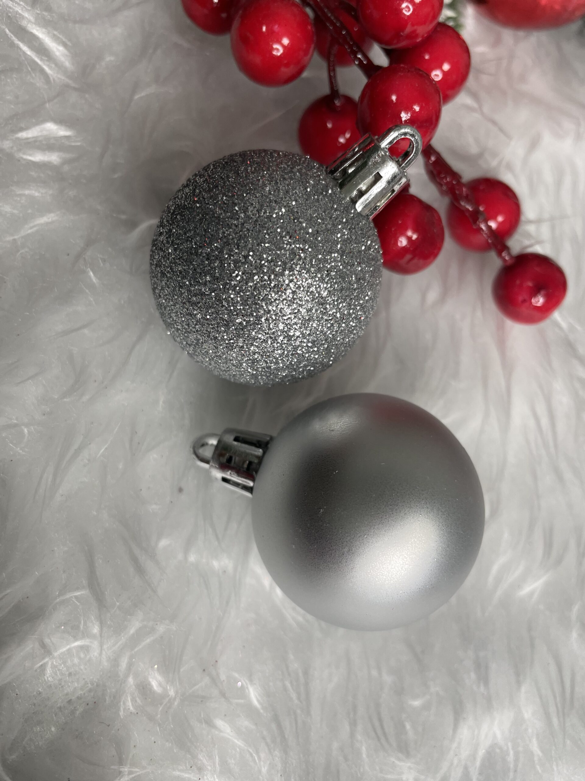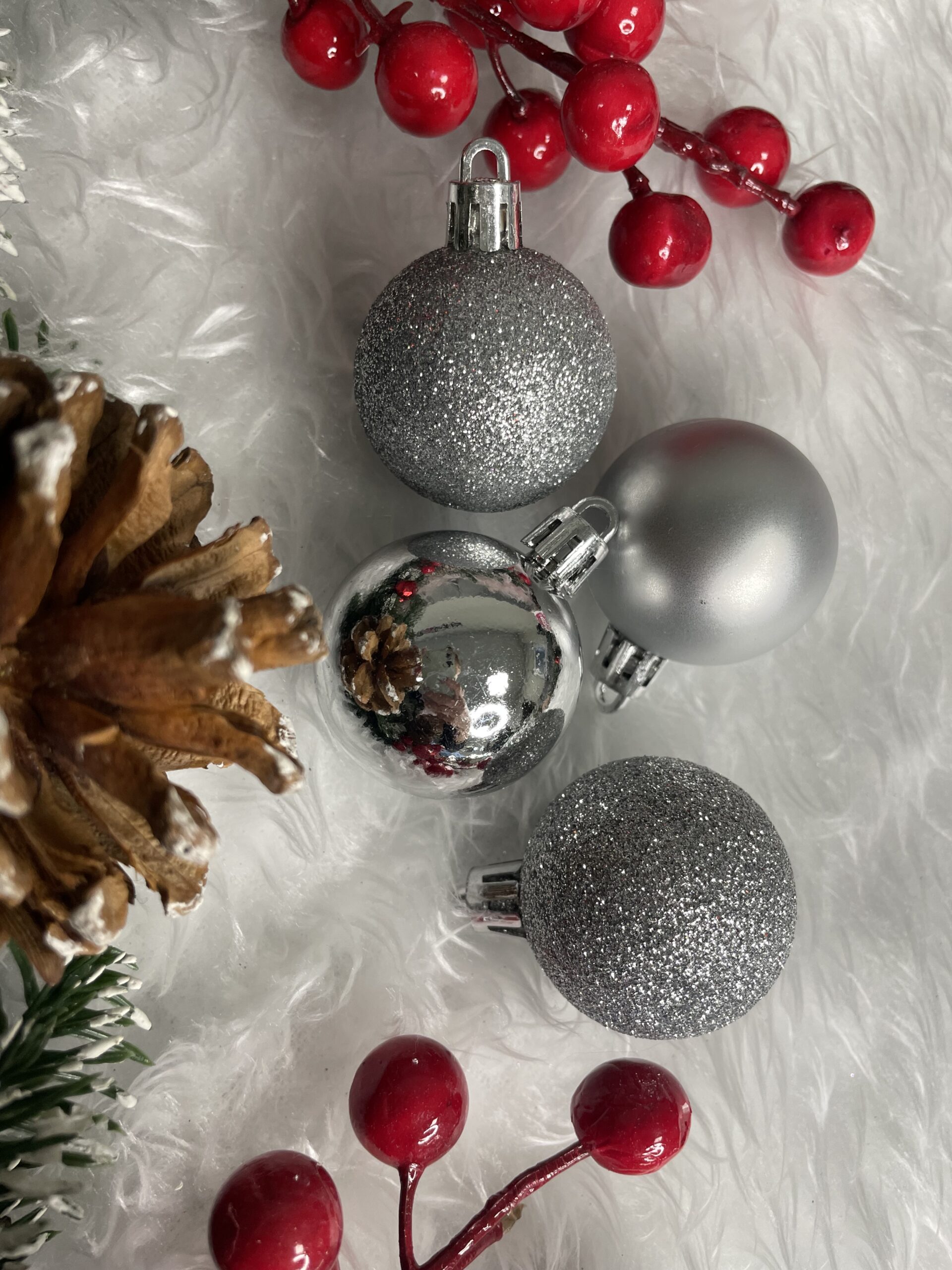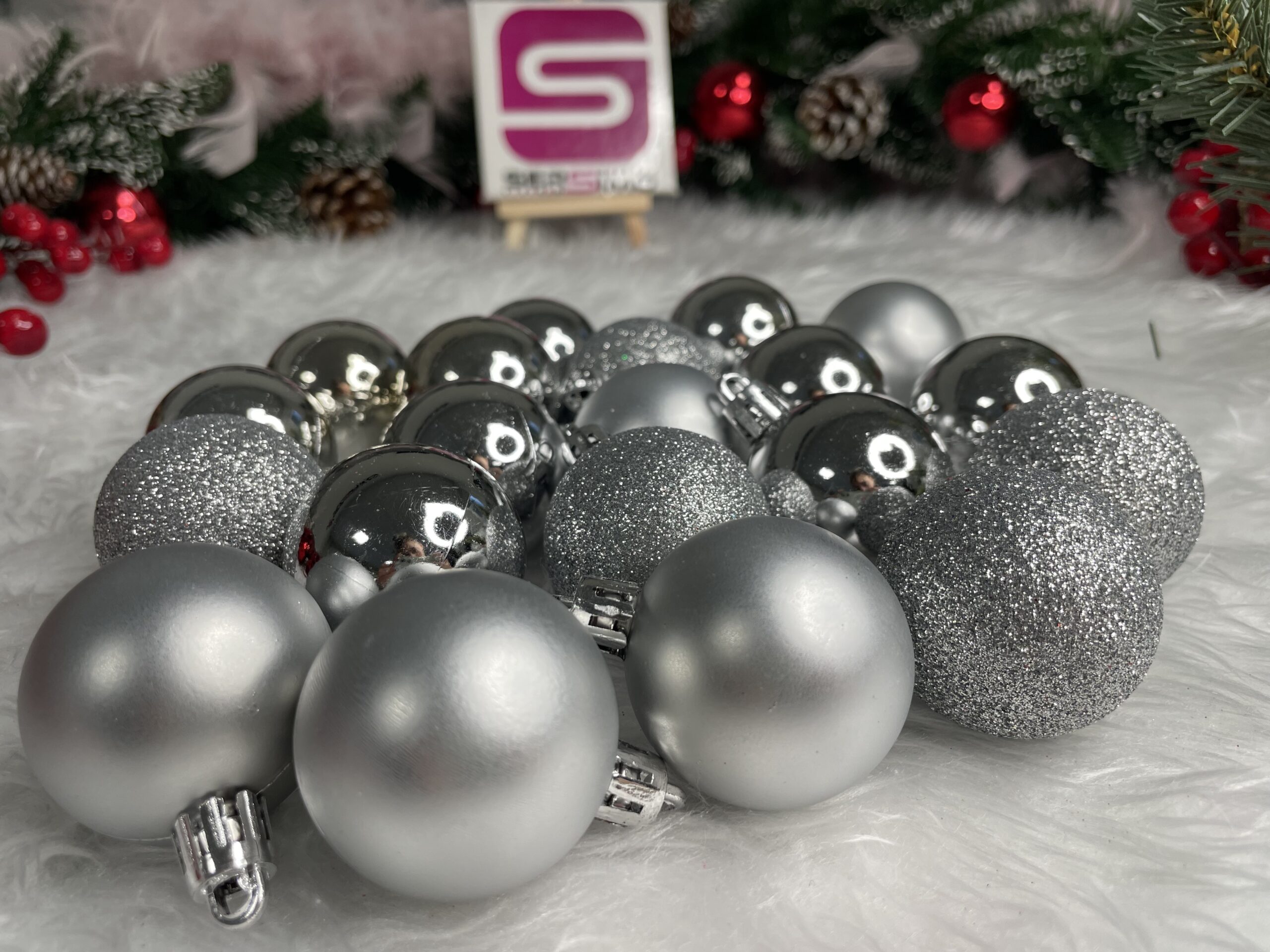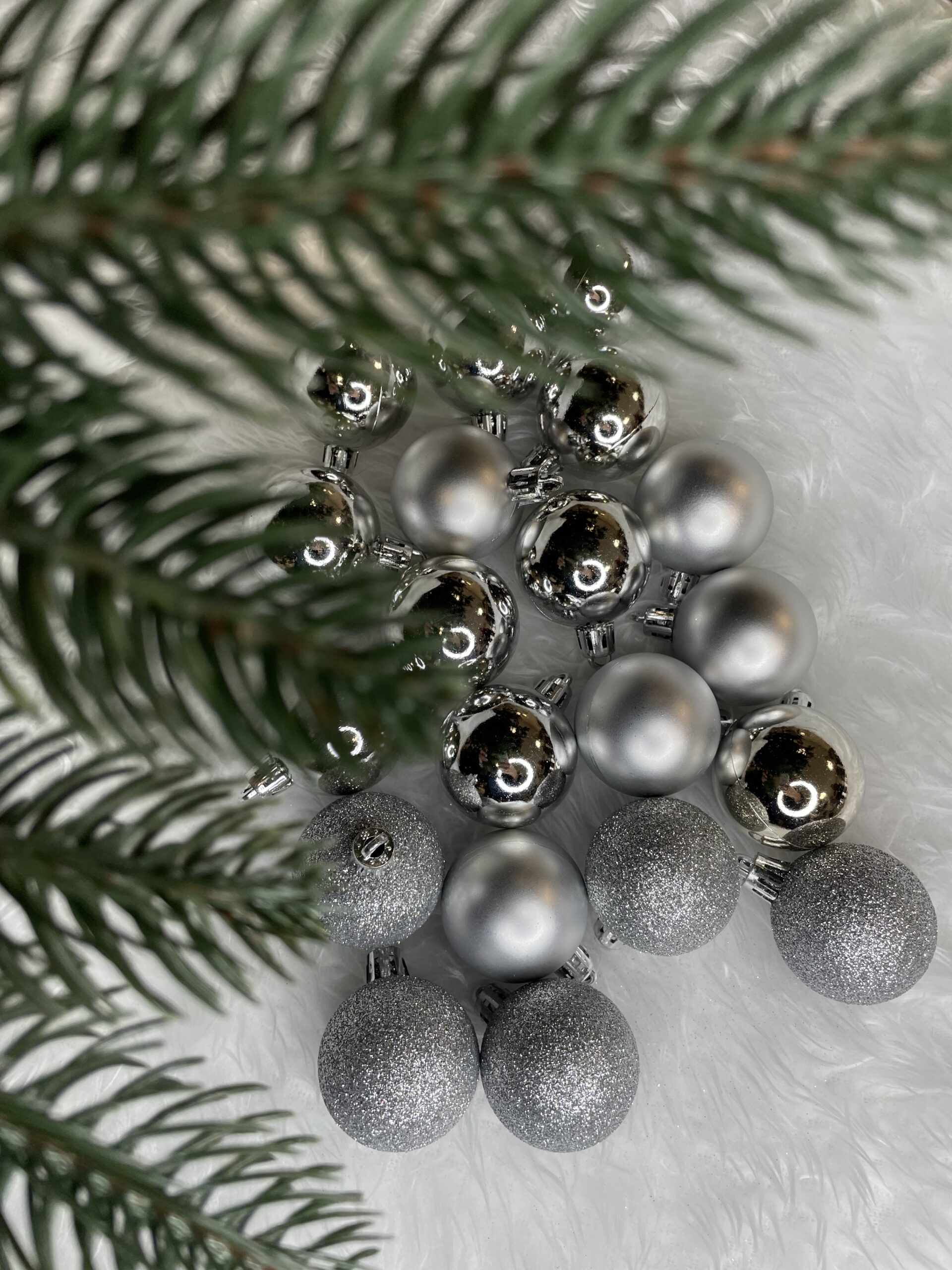 Culoare: argintiu Material: plastic Cantitate: 20 bucati de globulete Dimensiune: 4 cm Modele: mat, sclipici, stralucitor Incasabil, cordoane argintii pentru agatat Craciunul, ca si intreaga perioada de iarna, este o perioada magica, plina de caldura si de o atmosfera unica, creata datorita unui spectacol de decoratiuni fabuloase si constelatii luminoase incantatoare. Designul din plastic creste siguranta datorita materialului incasabil. Alegerea lor in locul globurilor de sticla va contribui la siguranta celor mici din casa. Globuletele pentru bradul de Craciun arata la fel ca cele din sticla. Datorita suprafetei lor netede ca o oglinda si a finisajului cu sclipici, acestea reflecta lumina in mod fantastic, sporind efectul de decoratiuni sclipitoare si stralucitoare, care aduc in minte asocieri cu un peisaj de iarna rece si inzapezit. Incasabil - sigur pentru casele cu copii si animale de companie Culori la moda - ideale atat pentru decoruri traditionale, cat si moderne Impachetate estetic - pur si simplu le infasurati cu panglica si sunt gata de a fi oferite cadou Vin cu snururi decorative - nu trebuie sa va faceti griji cu privire la problemele de agatare Globuletele pentru bradul de Craciun va vor permite sa va decorati casa de Craciun intr-un mod nelimitat. Puteti crea din ele: Aranjamente unice pentru bradul de Craciun Aranjamente de masa si de pervaz Decoratiuni pentru usi si ornamente pentru rame de usa Cadouri practice de Craciun pentru cei dragi Impachetari unice pentru cadouri - folositi mai multe in loc de funda