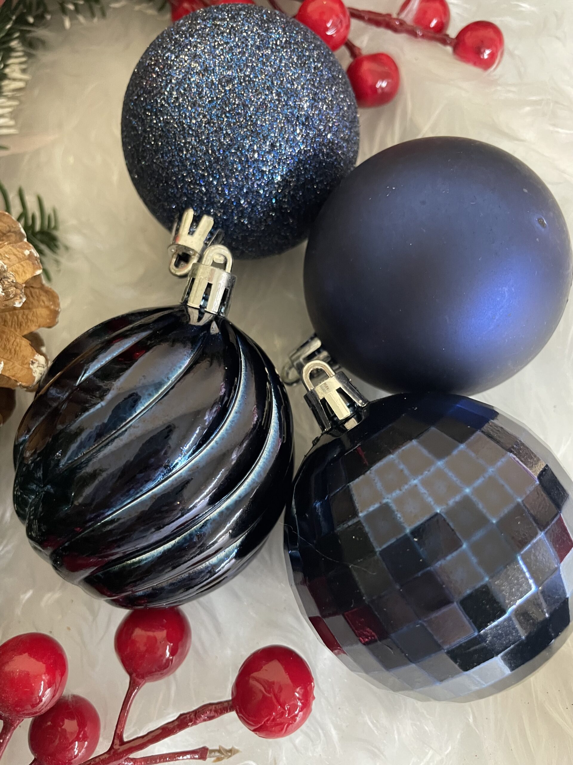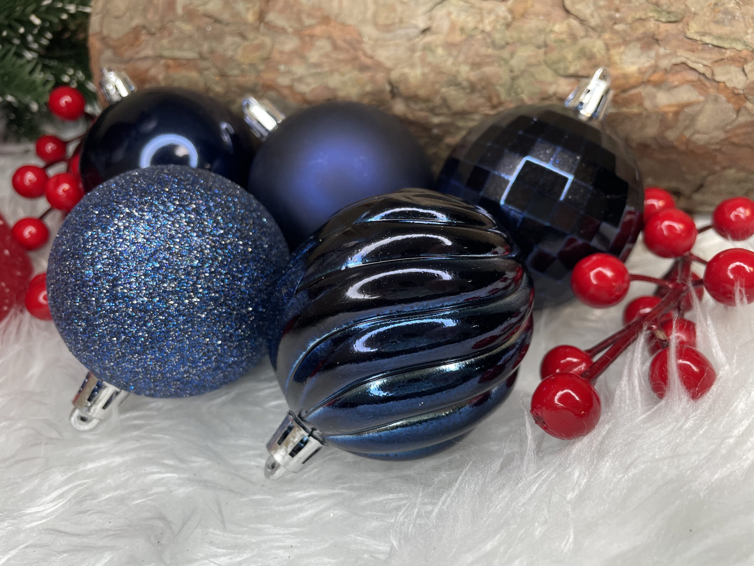 Set globuri de Craciun, 20 bucati, 5 modele, 6cm, albastru inchis