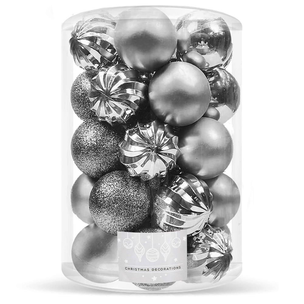 Culoare: argintiu Material: plastic Cantitate: 20 de globulete Modele: mat, cu sclipici, in relief si bile disco Incasabil, snur pentru agatat Craciunul, ca si intreaga perioada de iarna, este o perioada magica, plina de caldura si de o atmosfera unica, creata datorita unui spectacol de decoratiuni fabuloase si constelatii luminoase incantatoare. Designul din plastic creste siguranta datorita materialului incasabil. Alegerea lor in locul globurilor de sticla va contribui la siguranta celor mici din casa. Globuletele pentru bradul de Craciun arata la fel ca cele din sticla. Datorita suprafetei lor netede ca o oglinda si a finisajului cu sclipici, acestea reflecta lumina in mod fantastic, sporind efectul de decoratiuni sclipitoare si stralucitoare, care aduc in minte asocieri cu un peisaj de iarna rece si inzapezit. Incasabil - sigur pentru casele cu copii si animale de companie Culori la moda - ideale atat pentru decoruri traditionale, cat si moderne Impachetate estetic - pur si simplu le infasurati cu panglica si sunt gata de a fi oferite cadou Vin cu snururi decorative - nu trebuie sa va faceti griji cu privire la problemele de agatare Globuletele pentru bradul de Craciun va vor permite sa va decorati casa de Craciun intr-un mod nelimitat. Puteti crea din ele: Aranjamente unice pentru bradul de Craciun Aranjamente de masa si de pervaz Decoratiuni pentru usi si ornamente pentru rame de usa Cadouri practice de Craciun pentru cei dragi Impachetari unice pentru cadouri - folositi mai multe in loc de funda