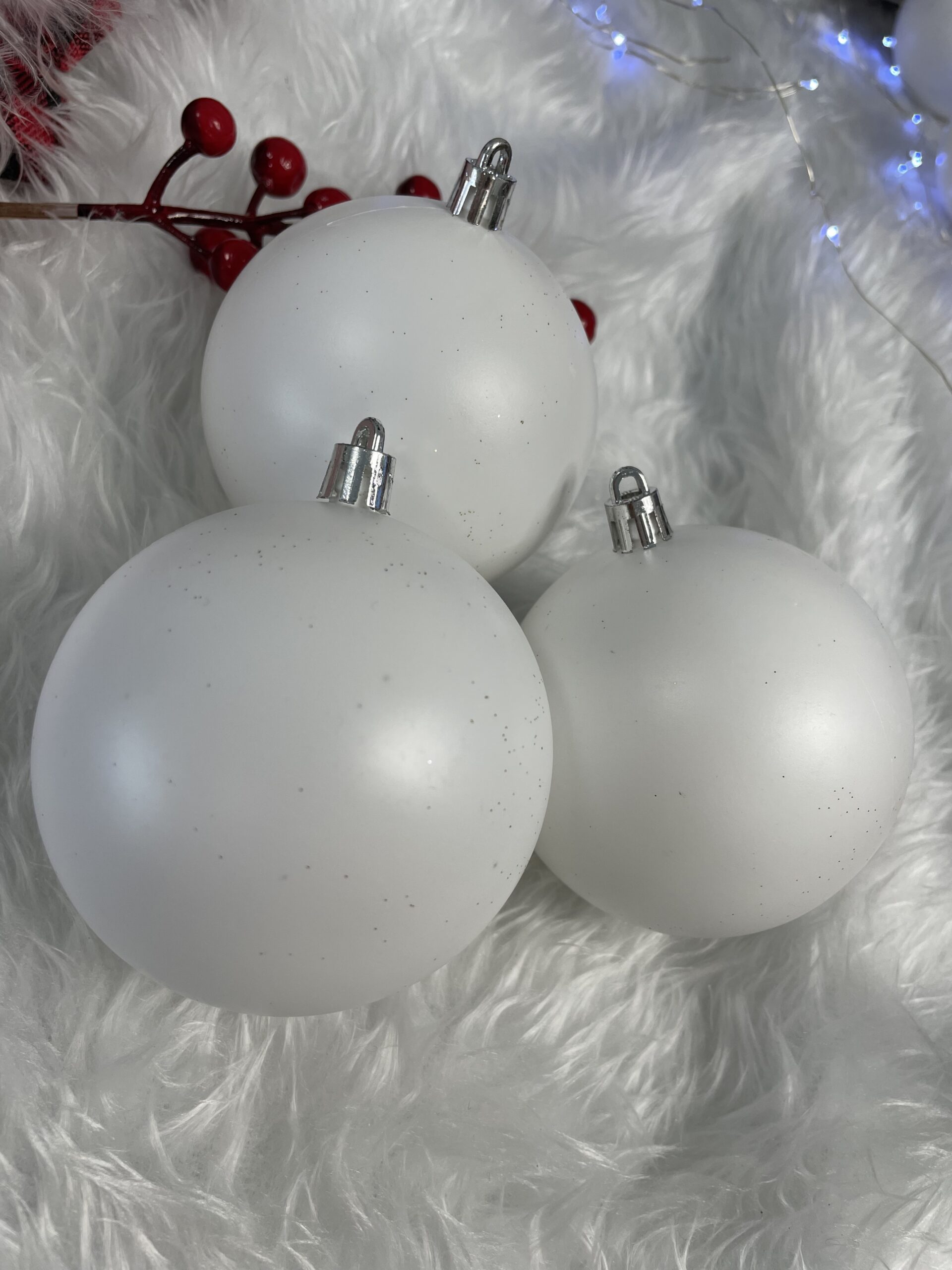 Culoare: nuanta de alb Material: plastic/plastic Dimensiune: 8 cm Cantitate: 20 bucati de globulete Design: mat Incasabil, snur argintiu pentru agatat Craciunul, ca si intreaga perioada de iarna, este o perioada magica, plina de caldura si de o atmosfera unica, creata datorita unui spectacol de decoratiuni fabuloase si constelatii luminoase incantatoare. Designul din plastic creste siguranta datorita materialului incasabil. Alegerea lor in locul globurilor de sticla va contribui la siguranta celor mici din casa. Globuletele pentru bradul de Craciun arata la fel ca cele din sticla. Datorita suprafetei lor netede ca o oglinda si a finisajului cu sclipici, acestea reflecta lumina in mod fantastic, sporind efectul de decoratiuni sclipitoare si stralucitoare, care aduc in minte asocieri cu un peisaj de iarna rece si inzapezit. Globuletele pentru bradul de Craciun va vor permite sa va decorati casa de Craciun intr-un mod nelimitat. Puteti crea din ele:  Aranjamente unice pentru bradul de Craciun  Aranjamente de masa si de pervaz  Decoratiuni pentru usi si ornamente pentru rame de usa  Cadouri practice de Craciun pentru cei dragi  Impachetari unice pentru cadouri - folositi mai multe in loc de funda