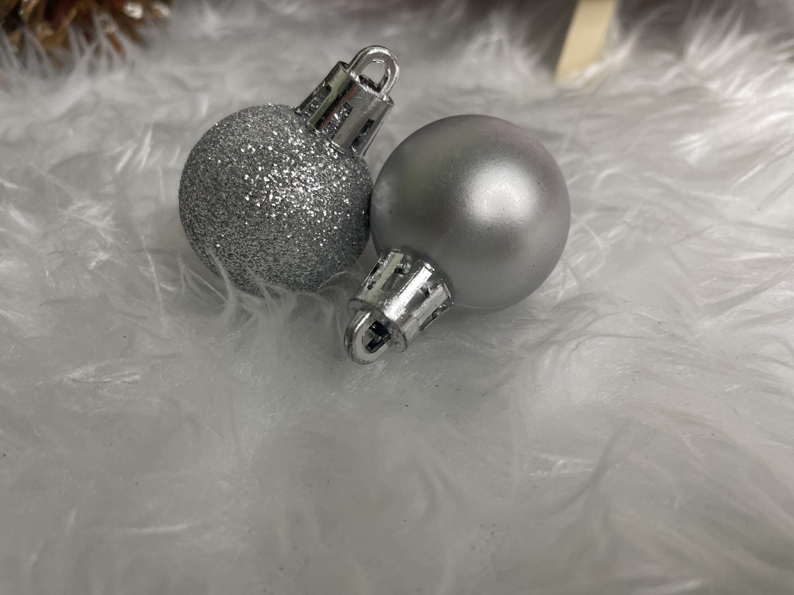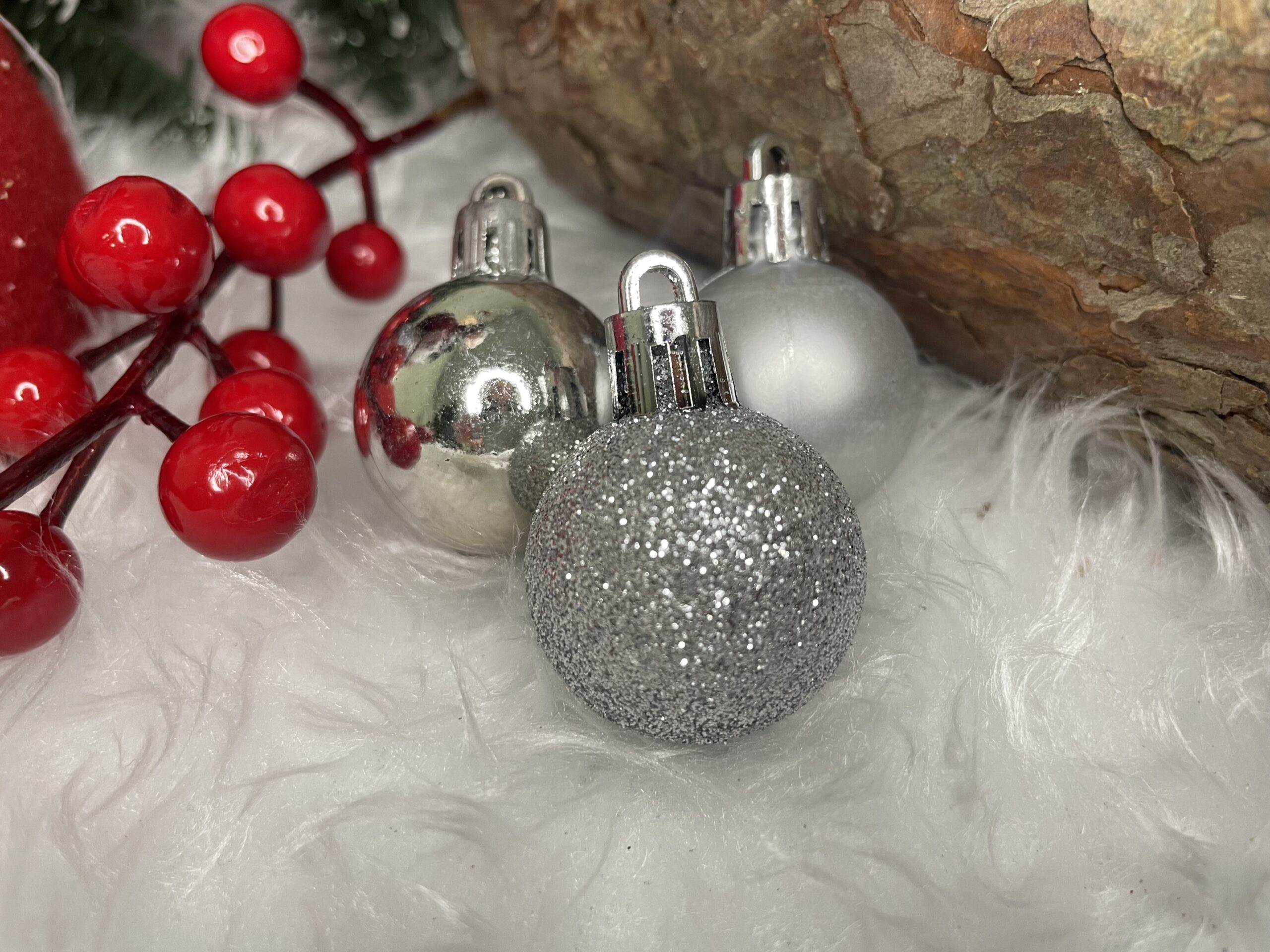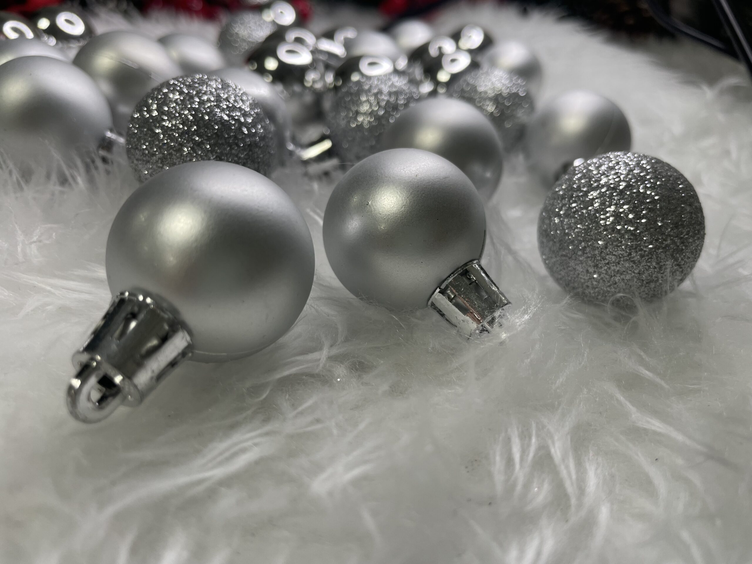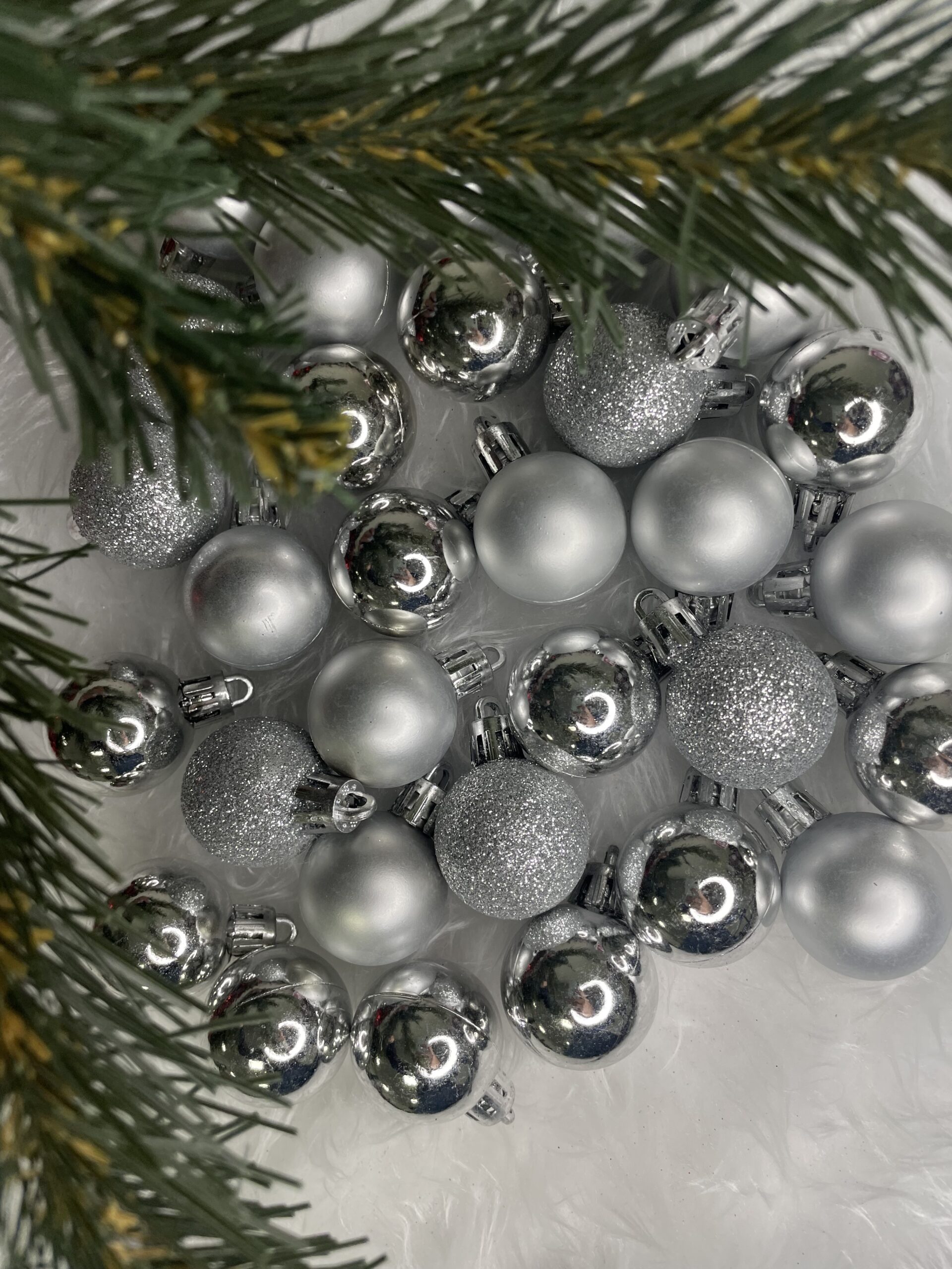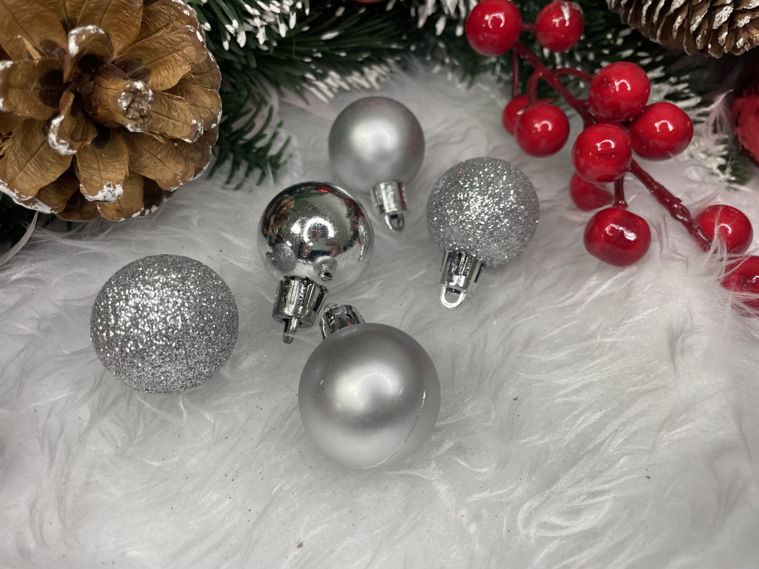 Set globuri de Craciun, 30 bucati, 3 modele, 3cm, argintiu