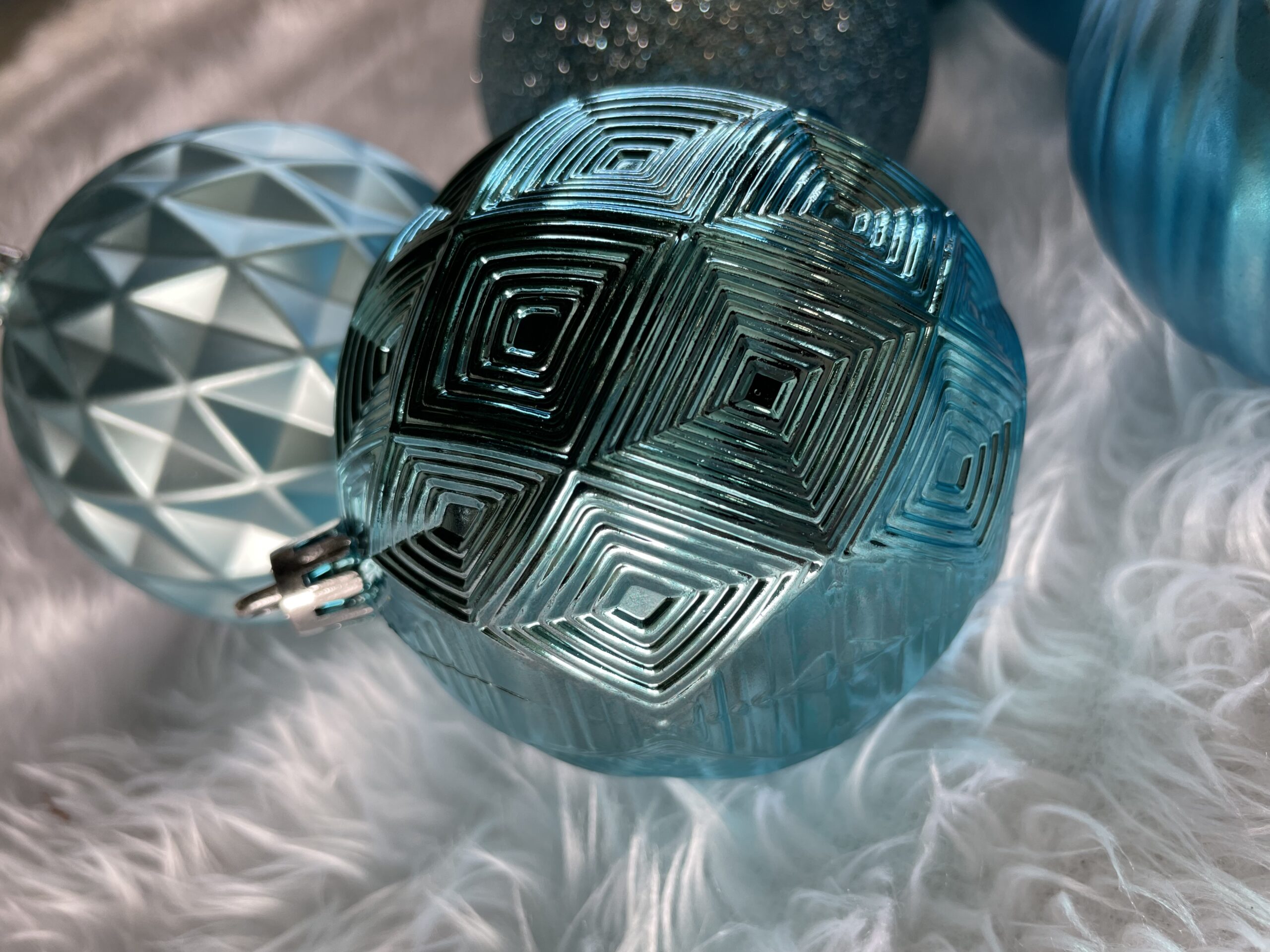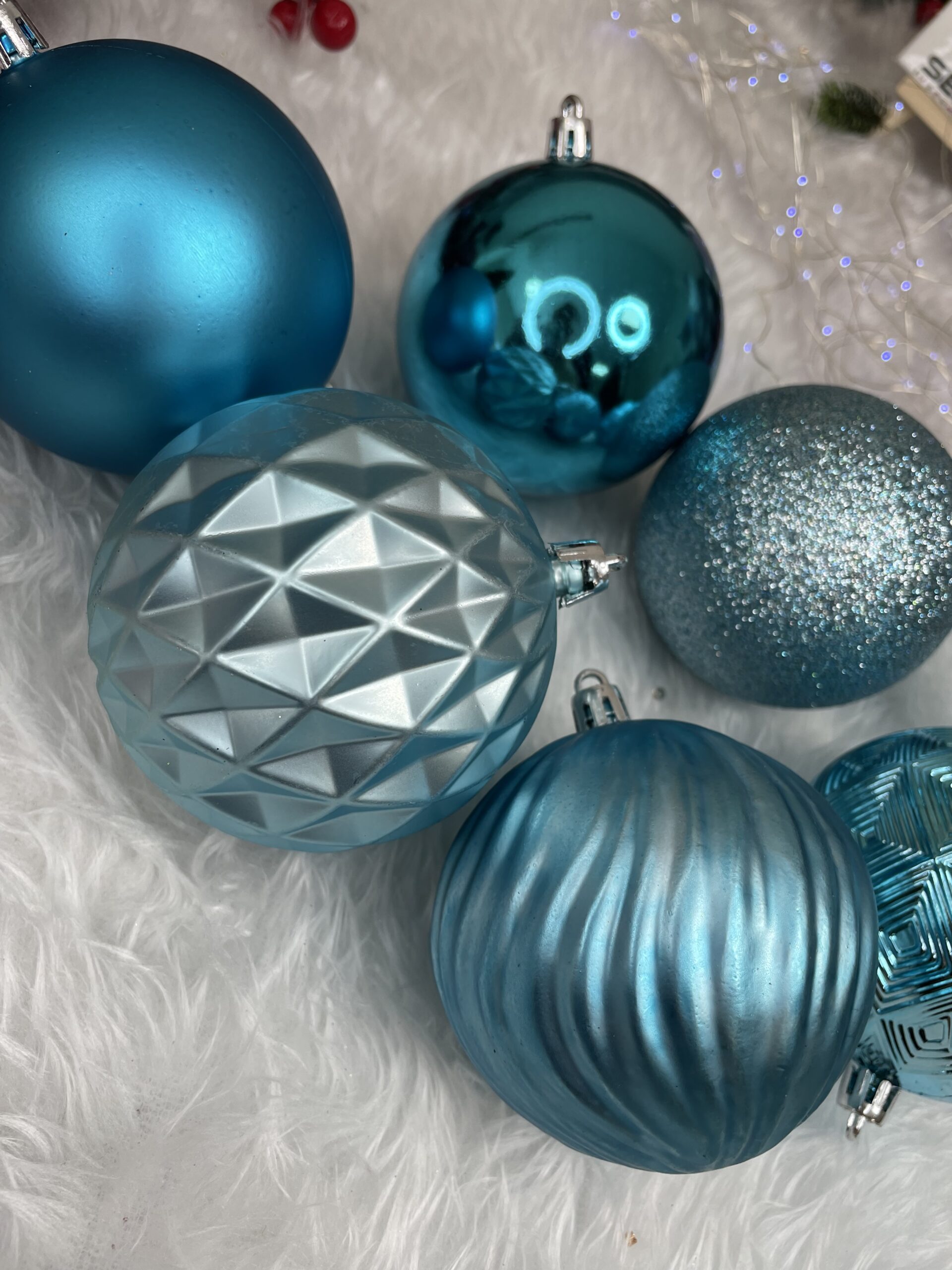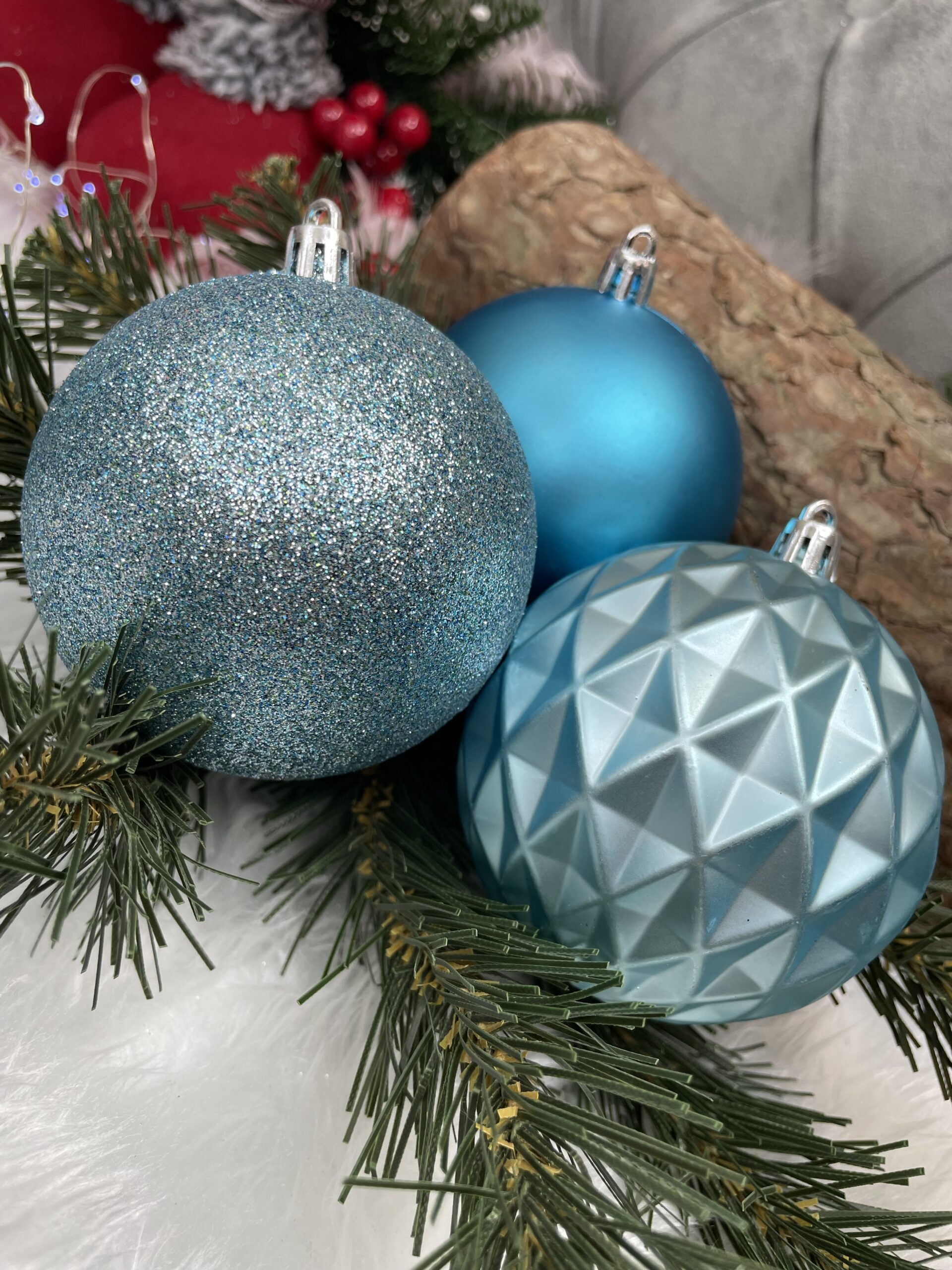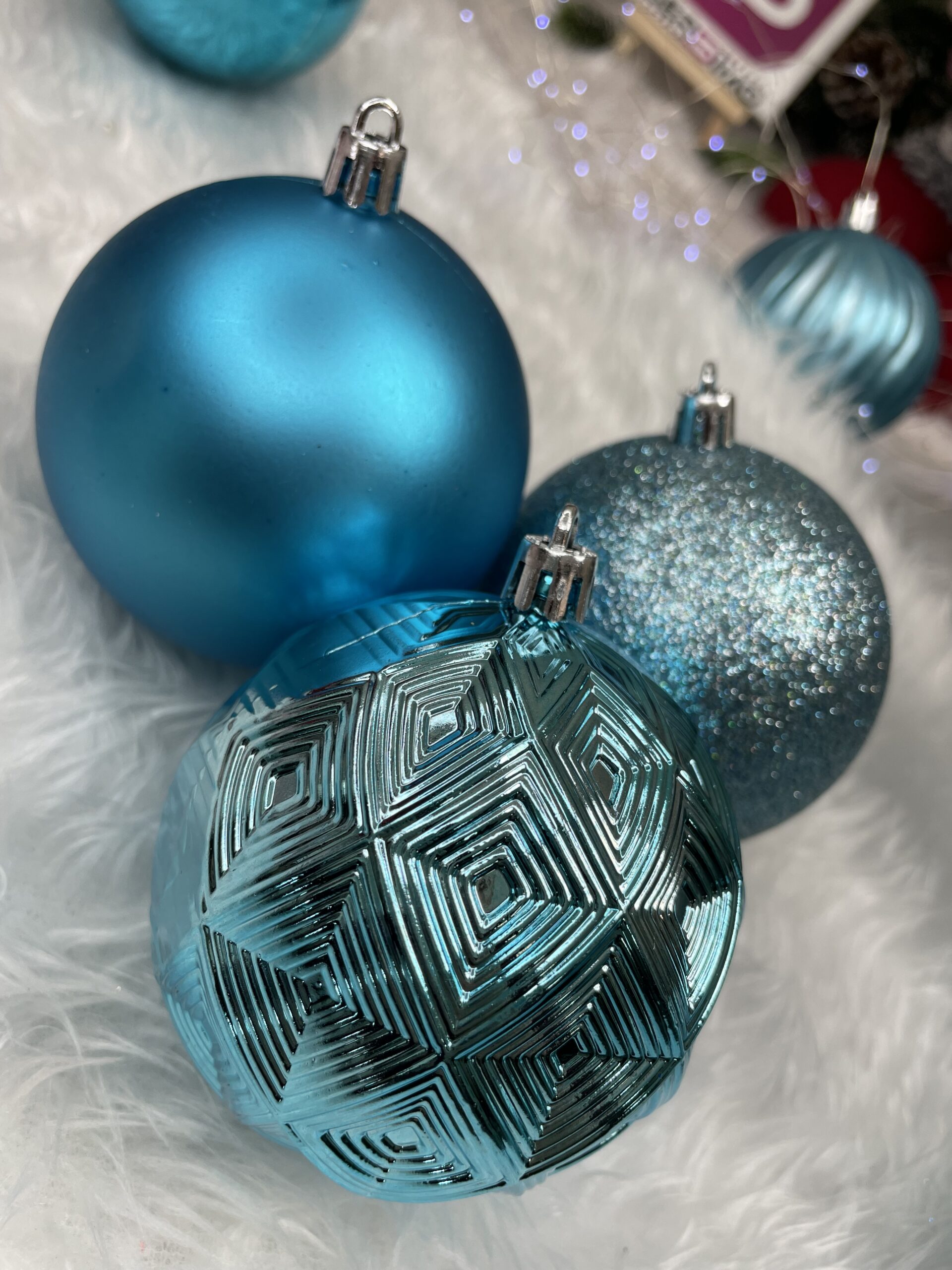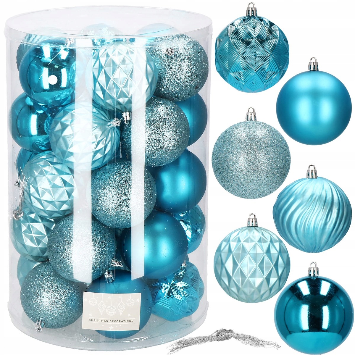 Culoare: albastru Material: plastic Cantitate: 30 bucati globuri (+/- 1 bucata) Modele: mat, sclipici, stralucitor Globurile va vor permite sa creati un decor minunat pentru brad. Arata frumos in timpul zilei si dupa intuneric, insotite de iluminat festiv. Setul include snururi care va permit sa agatati globurile rapid si usor in locul dorit. Designul din plastic creste siguranta datorita materialului incasabil. Alegerea lor in locul globurilor de sticla va contribui la siguranta celor mici din casa. Diversele dimensiuni va permit sa creati modele inedite de aranjare a bradului de Craciun. Setul include urmatoarele globuri 5x glob rotund mat - 8 cm 5x glob sclipici rotund - 8 cm 5x glob rotund lucios - 8 cm 5x glob rotund cu caneluri - 8 cm 5x glob rotund geometric mat - 8 cm 5x glob lucios geometric rotund - 8 cm Atentie! Numarul de piese din set poate varia + - 1 buc.