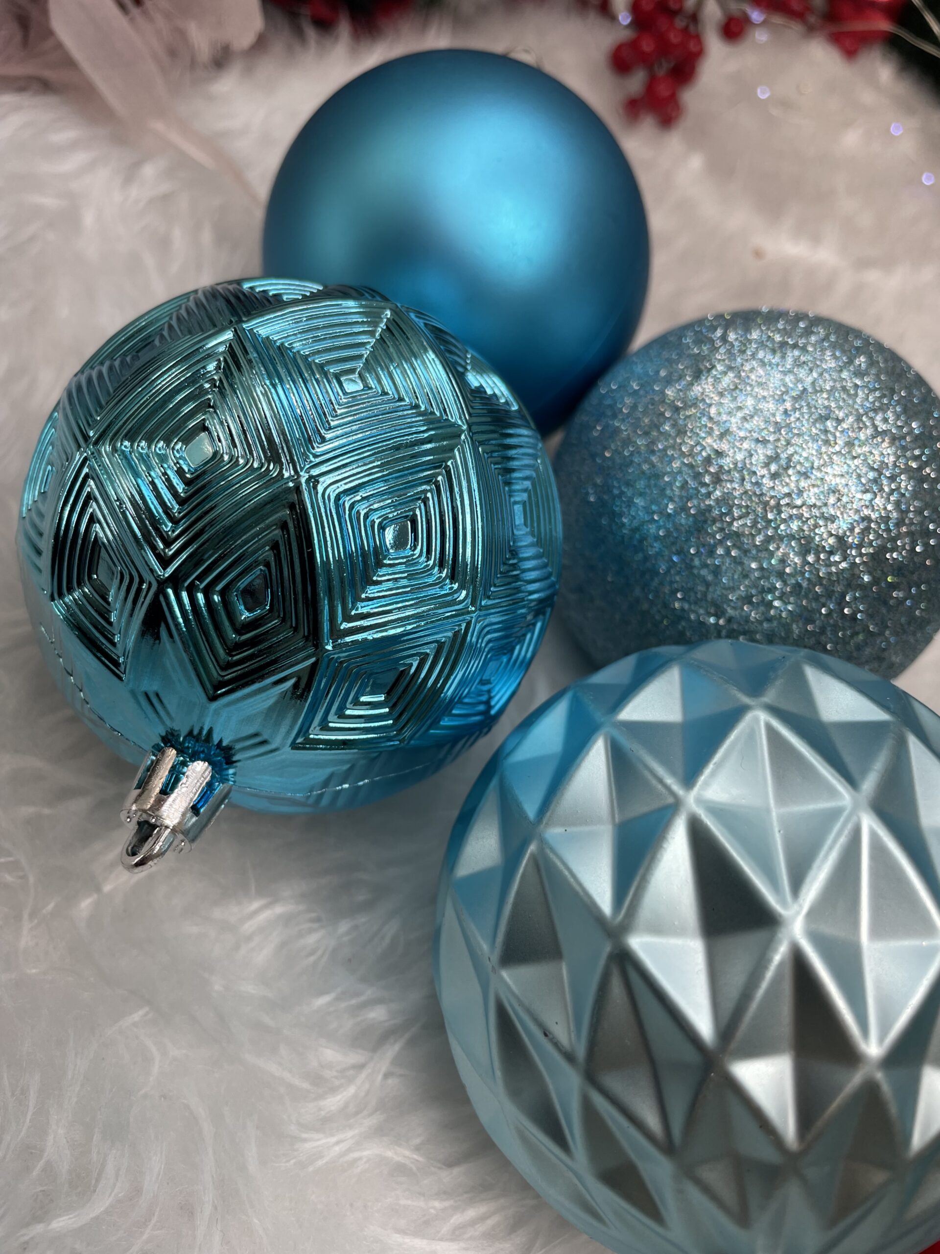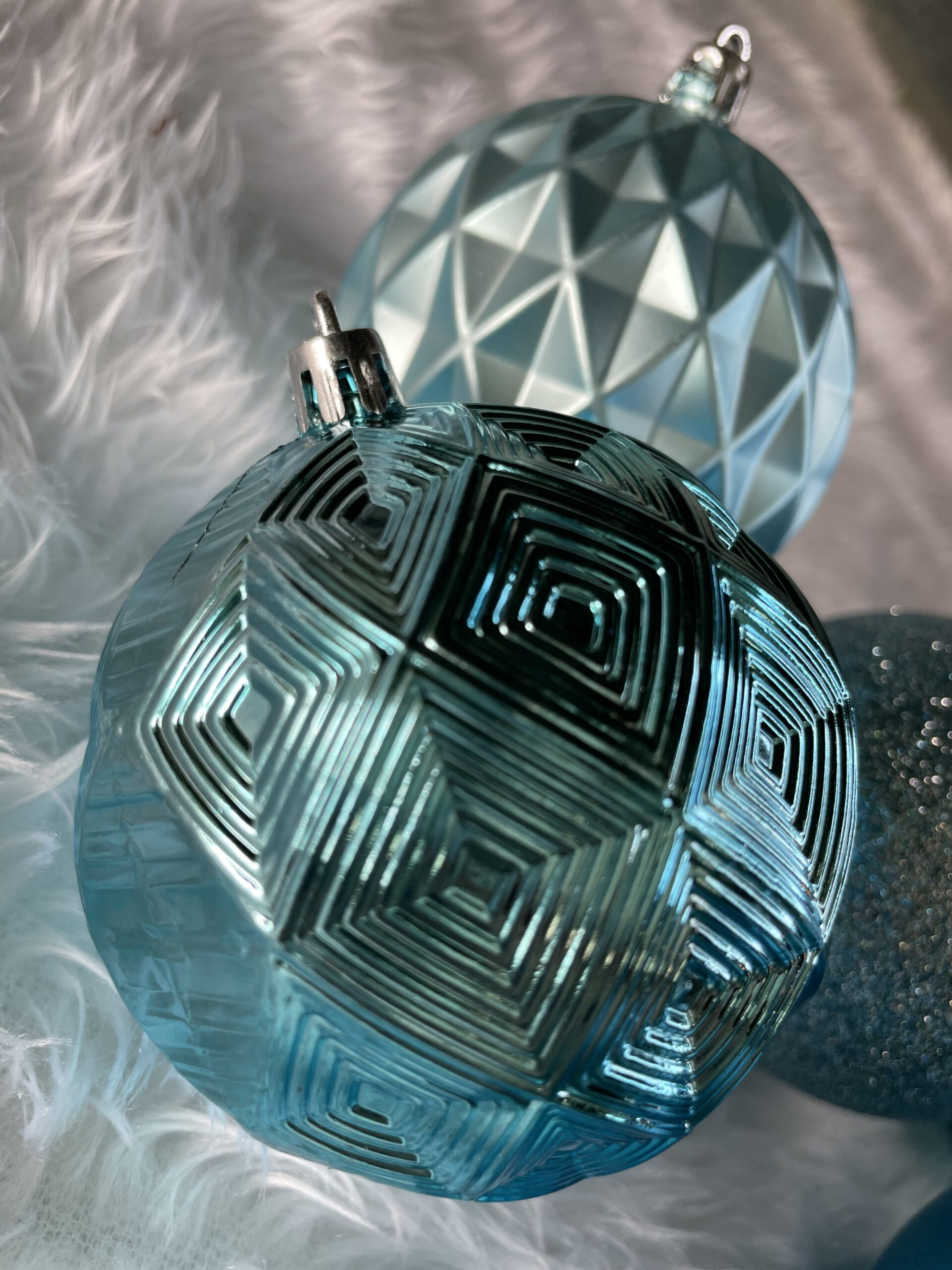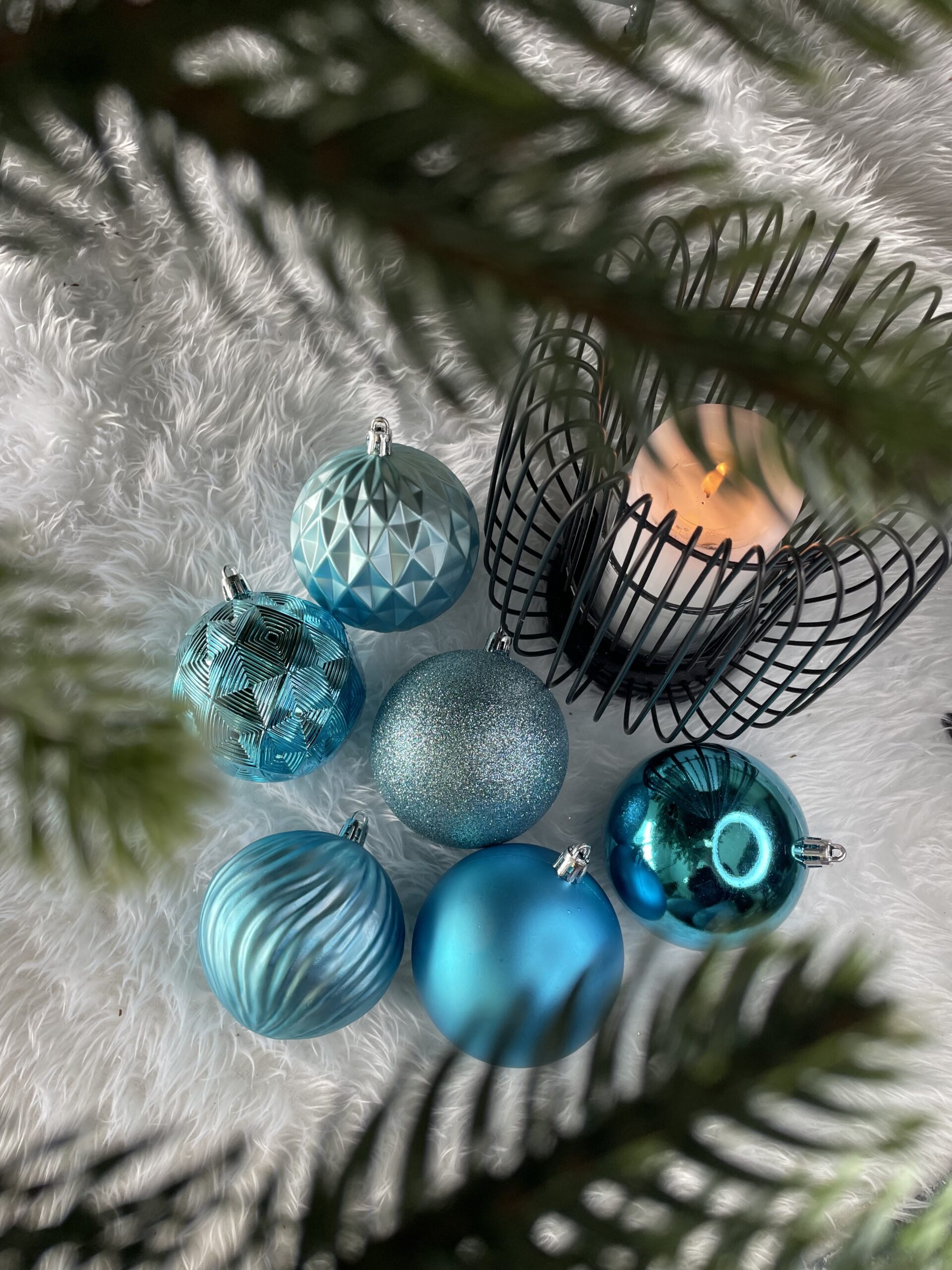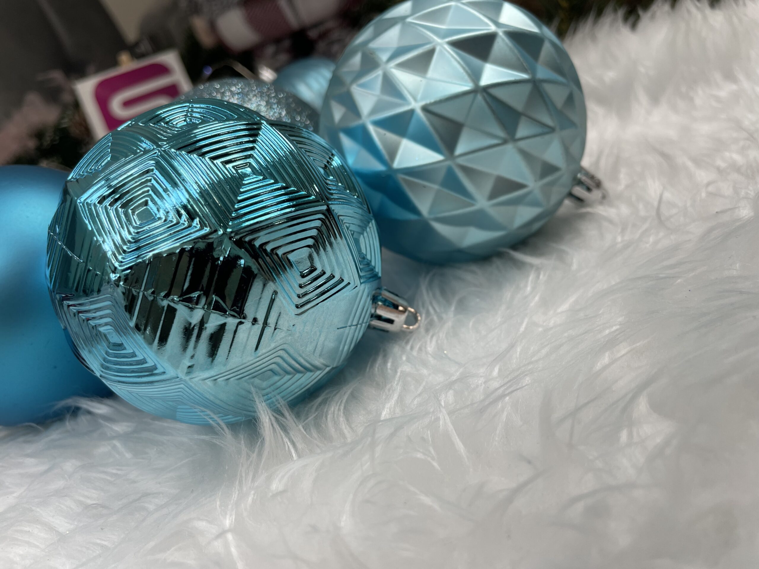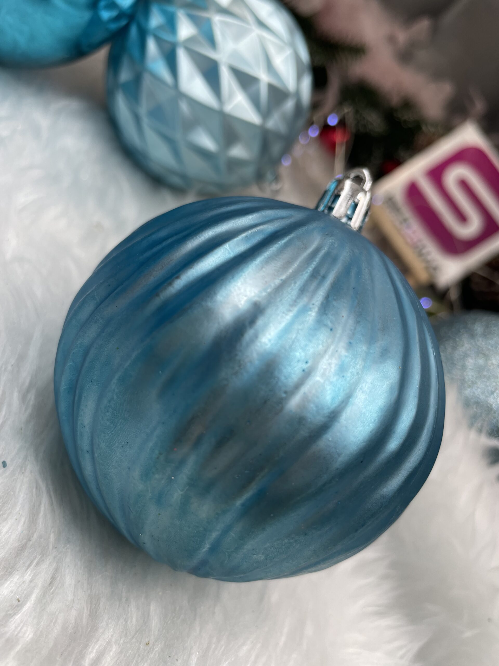 Culoare: albastru Material: plastic Cantitate: 30 bucati globuri (+/- 1 bucata) Modele: mat, sclipici, stralucitor Globurile va vor permite sa creati un decor minunat pentru brad. Arata frumos in timpul zilei si dupa intuneric, insotite de iluminat festiv. Setul include snururi care va permit sa agatati globurile rapid si usor in locul dorit. Designul din plastic creste siguranta datorita materialului incasabil. Alegerea lor in locul globurilor de sticla va contribui la siguranta celor mici din casa. Diversele dimensiuni va permit sa creati modele inedite de aranjare a bradului de Craciun. Setul include urmatoarele globuri 5x glob rotund mat - 8 cm 5x glob sclipici rotund - 8 cm 5x glob rotund lucios - 8 cm 5x glob rotund cu caneluri - 8 cm 5x glob rotund geometric mat - 8 cm 5x glob lucios geometric rotund - 8 cm Atentie! Numarul de piese din set poate varia + - 1 buc.