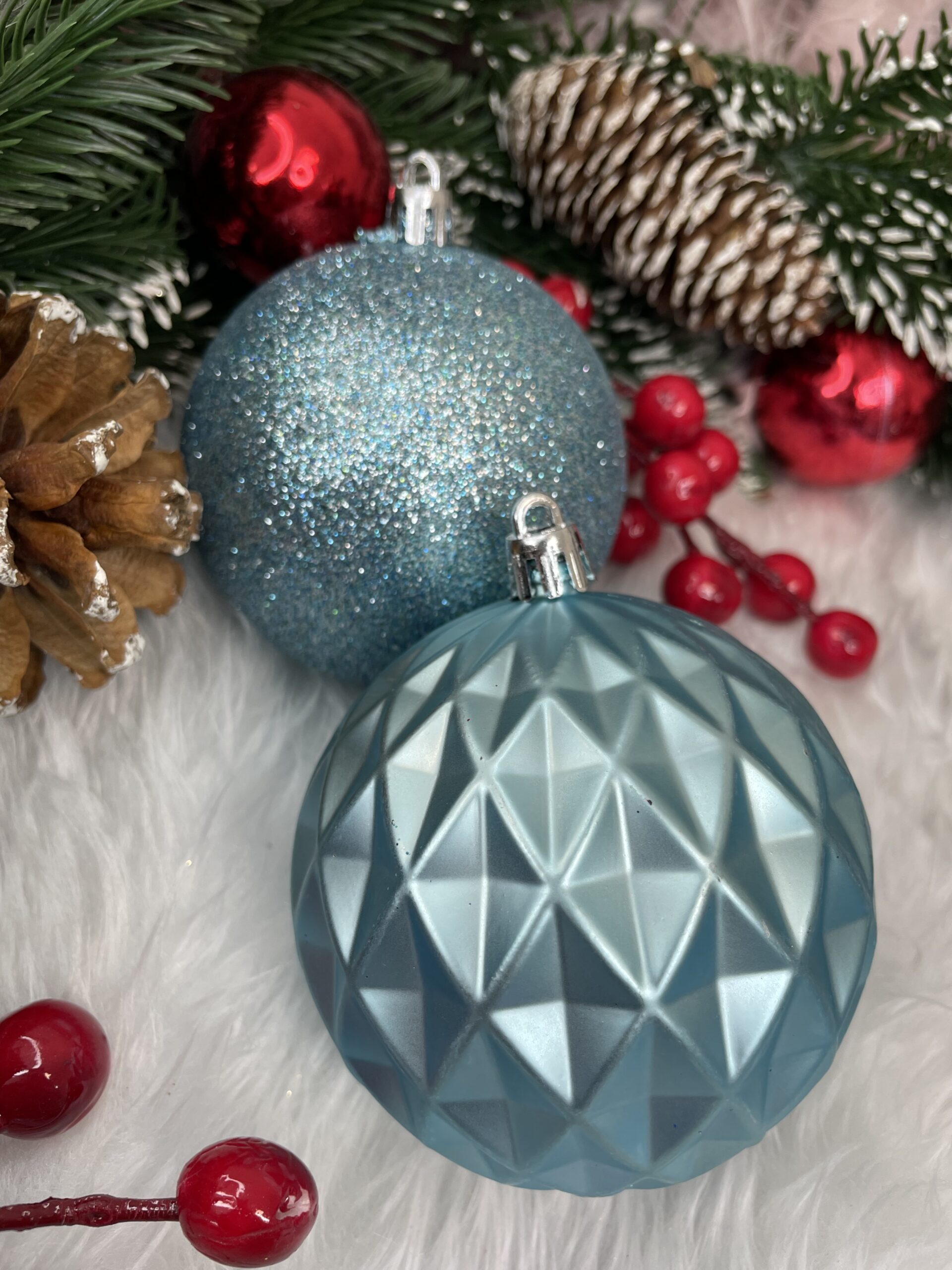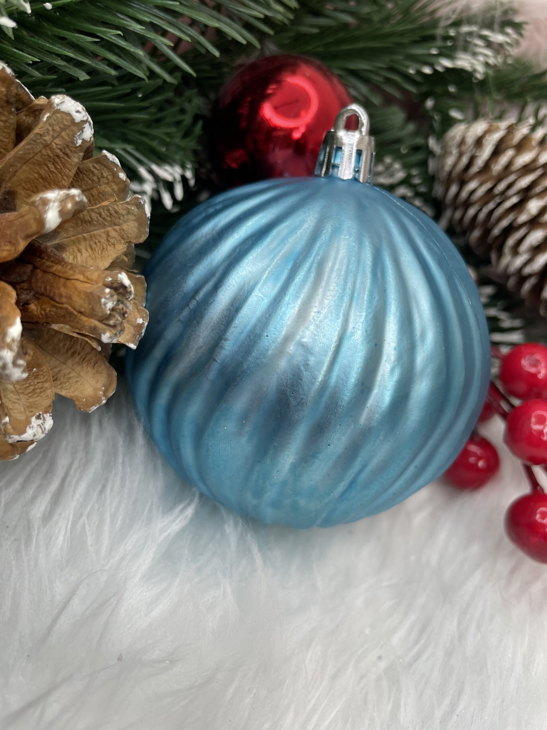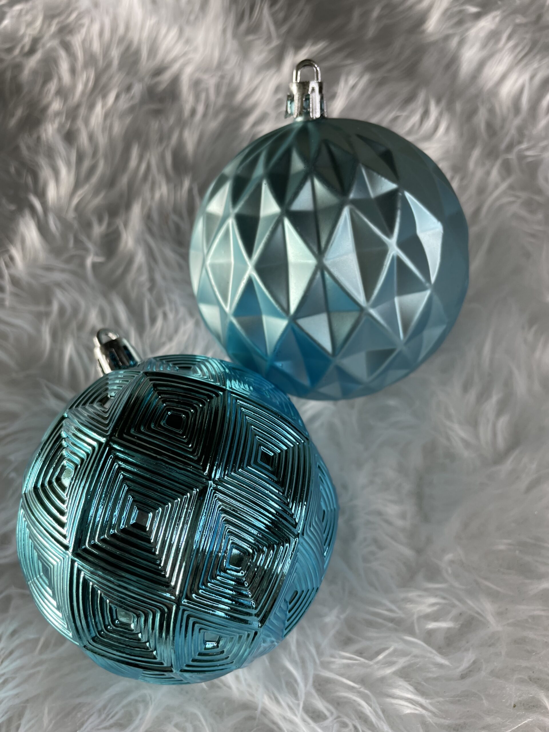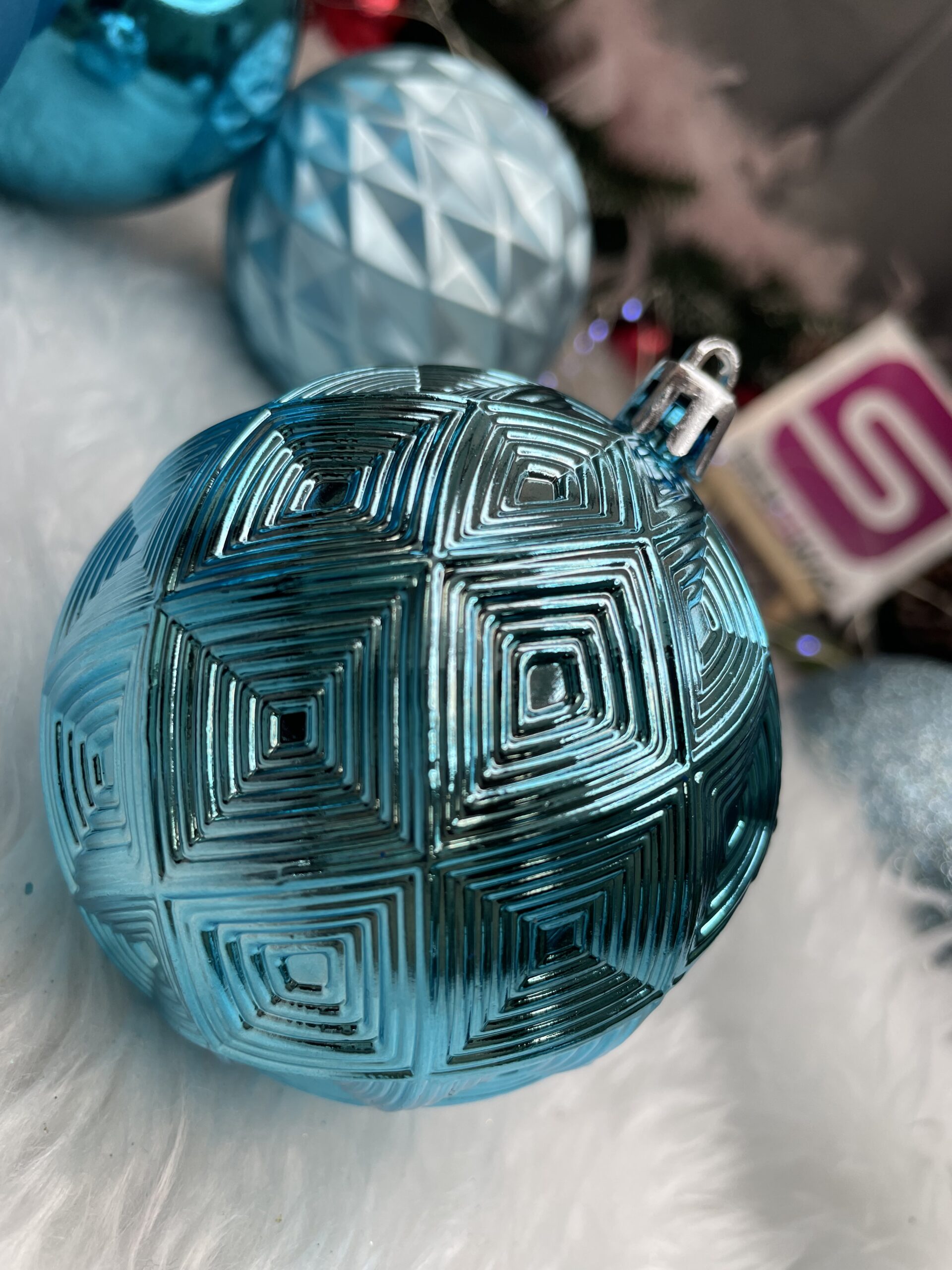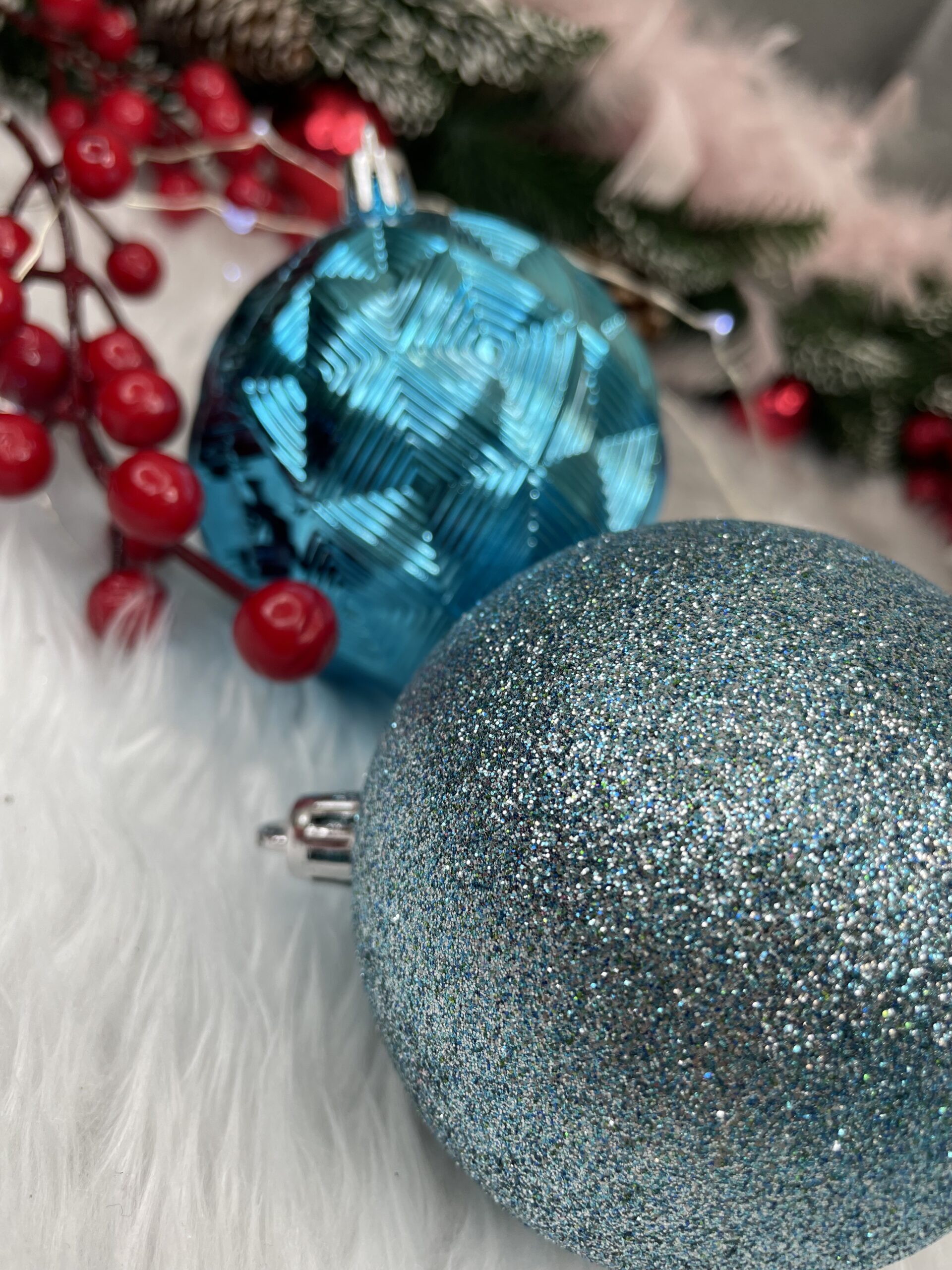 Culoare: albastru Material: plastic Cantitate: 30 bucati globuri (+/- 1 bucata) Modele: mat, sclipici, stralucitor Globurile va vor permite sa creati un decor minunat pentru brad. Arata frumos in timpul zilei si dupa intuneric, insotite de iluminat festiv. Setul include snururi care va permit sa agatati globurile rapid si usor in locul dorit. Designul din plastic creste siguranta datorita materialului incasabil. Alegerea lor in locul globurilor de sticla va contribui la siguranta celor mici din casa. Diversele dimensiuni va permit sa creati modele inedite de aranjare a bradului de Craciun. Setul include urmatoarele globuri 5x glob rotund mat - 8 cm 5x glob sclipici rotund - 8 cm 5x glob rotund lucios - 8 cm 5x glob rotund cu caneluri - 8 cm 5x glob rotund geometric mat - 8 cm 5x glob lucios geometric rotund - 8 cm Atentie! Numarul de piese din set poate varia + - 1 buc.