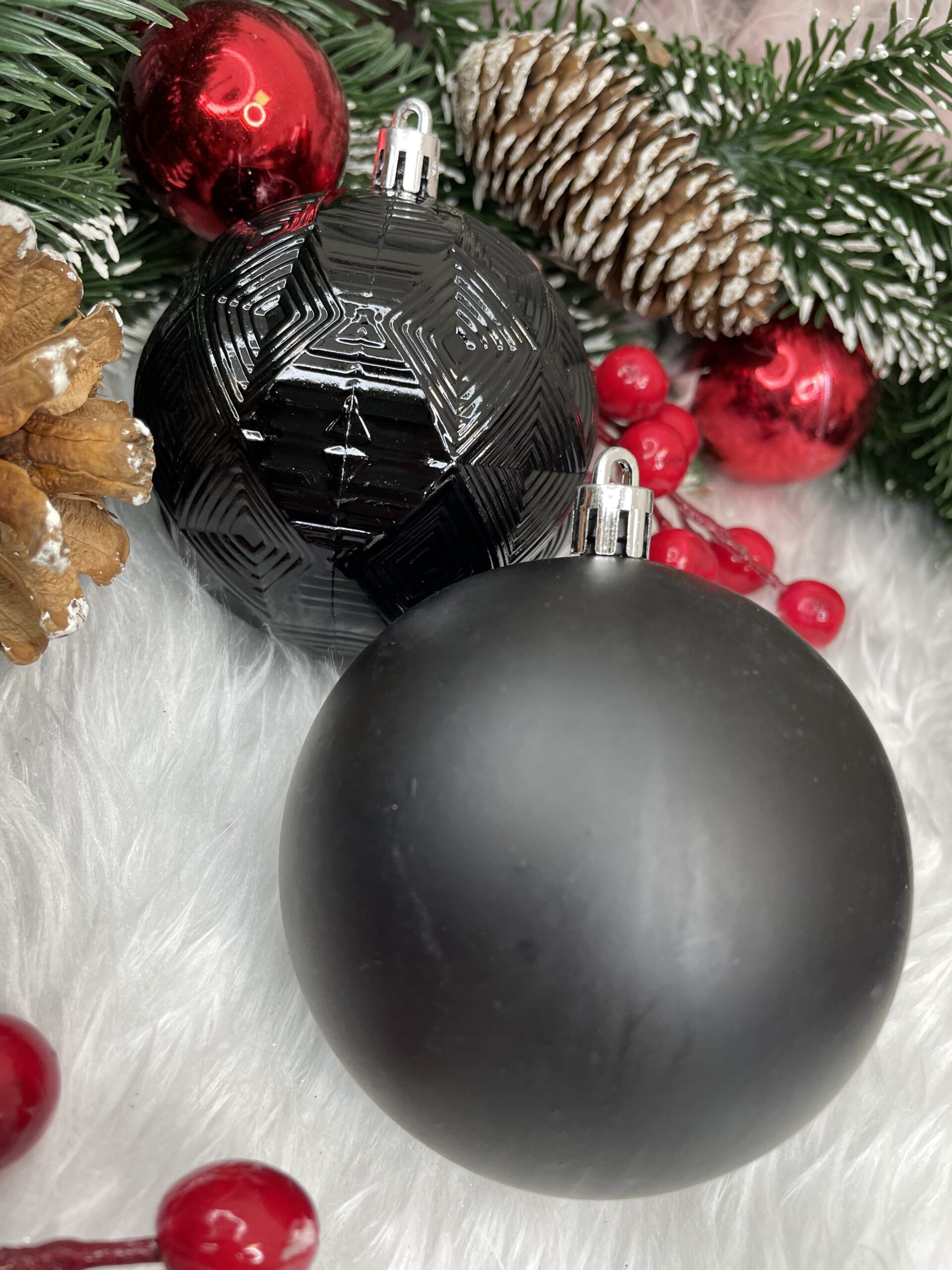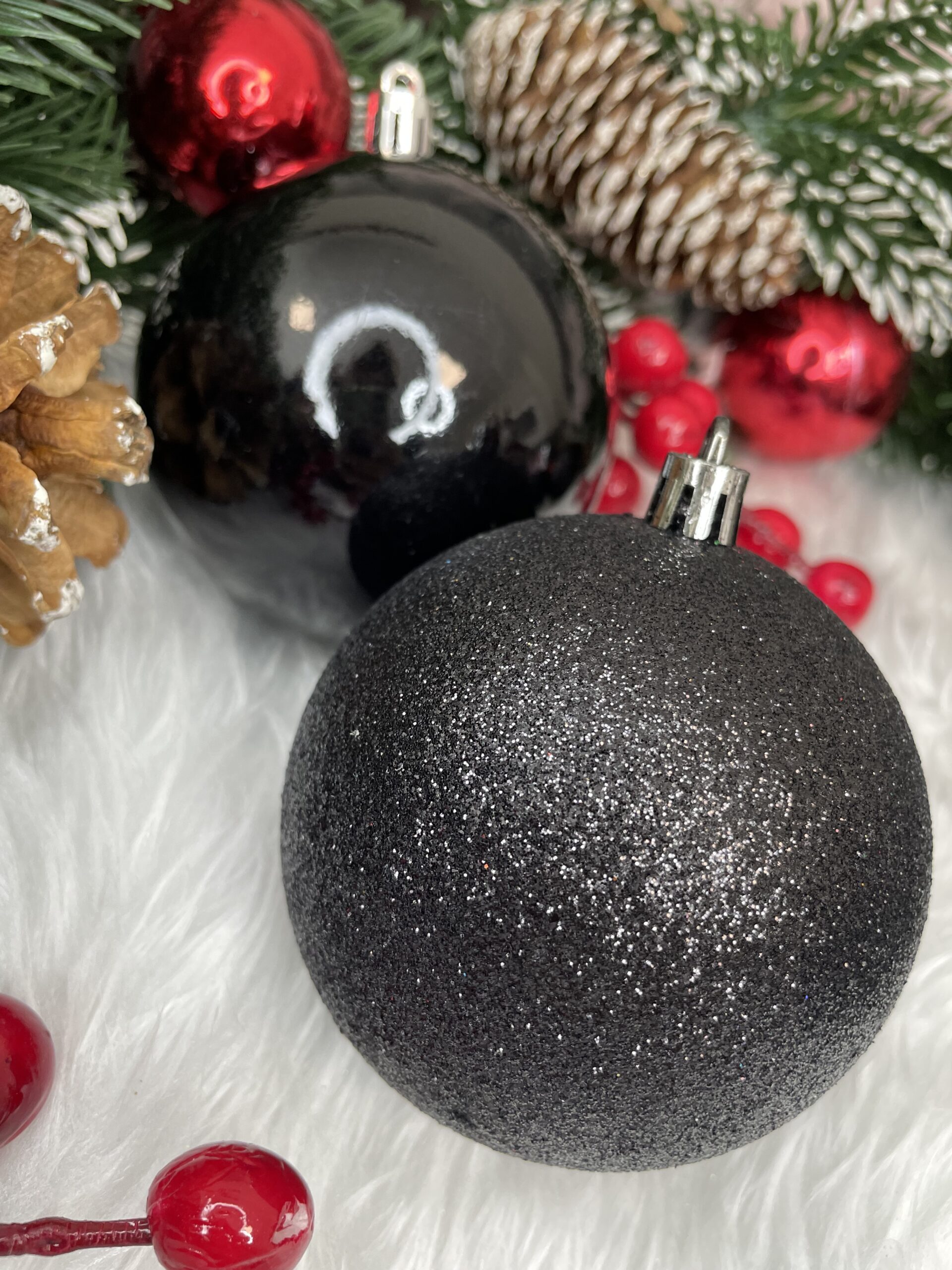 PARAMETRII: Culoare: negru Material: plastic Cantitate: 30 bucati globuri (+/- 1 bucata) Modele: mat, sclipici, stralucitor Craciunul, ca si intreaga perioada de iarna, este o perioada magica, plina de caldura si de o atmosfera unica, creata datorita unui spectacol de decoratiuni fabuloase si constelatii luminoase incantatoare. Designul din plastic creste siguranta datorita materialului incasabil. Alegerea lor in locul globurilor de sticla va contribui la siguranta celor mici din casa. Globuletele pentru bradul de Craciun arata la fel ca cele din sticla. Datorita suprafetei lor netede ca o oglinda si a finisajului cu sclipici, acestea reflecta lumina in mod fantastic, sporind efectul de decoratiuni sclipitoare si stralucitoare, care aduc in minte asocieri cu un peisaj de iarna rece si inzapezit PRODUS PREMIUM: de inalta calitate - un produs al unui producator de top de decoratiuni si brazi de Craciun rezistent la spargere - sigur pentru casele cu copii si animale de companie asemanator confuz cu sticla - dar mai durabil in culori la moda - vor fi perfecte atat pentru interioarele traditionale, cat si pentru cele moderne ambalate estetic - doar impachetati-le cu o panglica si vor fi gata sa fie prezentate cadou vine cu snur decorative - nu trebuie sa va faceti griji cu privire la problemele de agatat realizat cu grija - cu atentie la cel mai mic detaliu