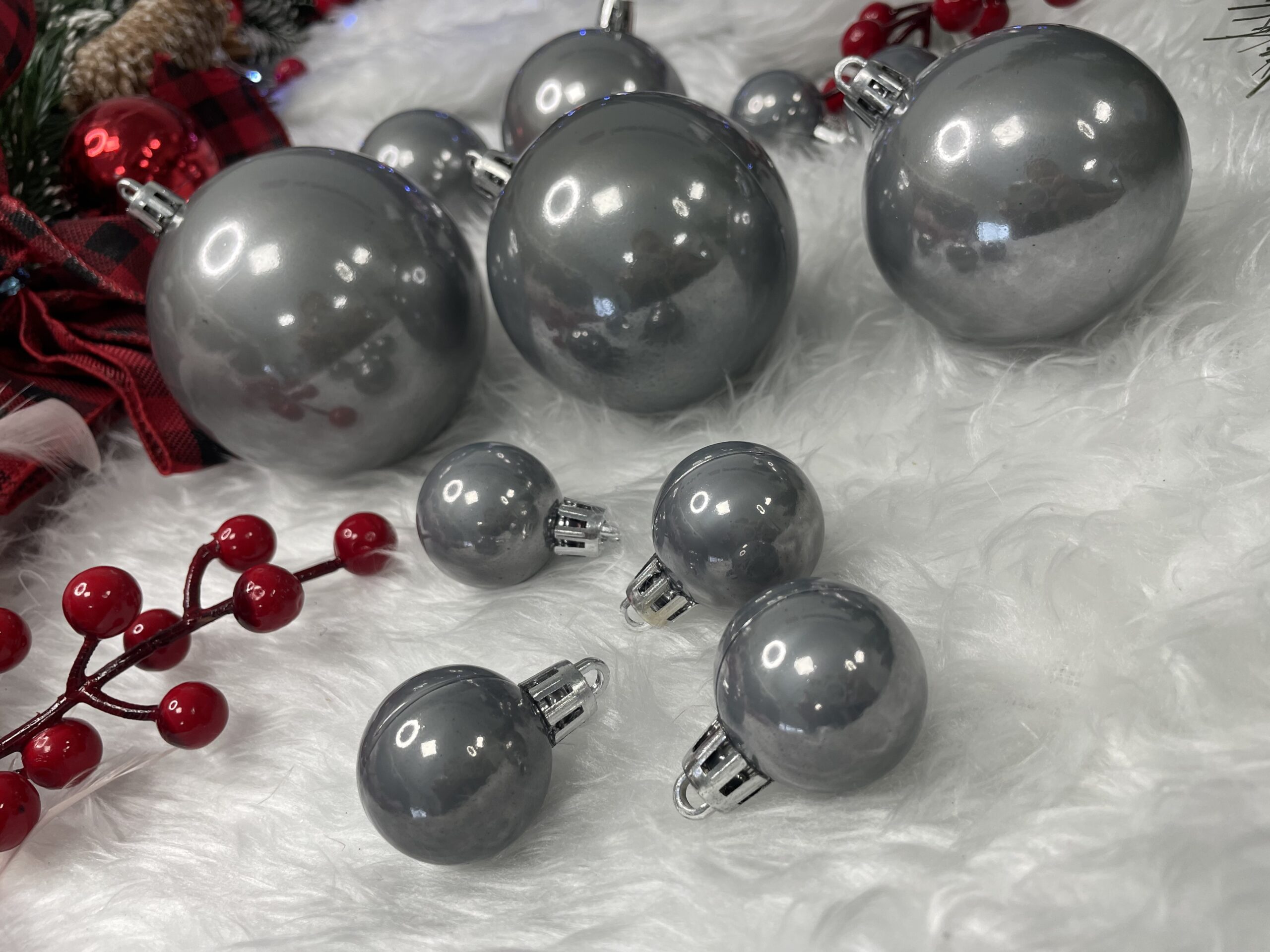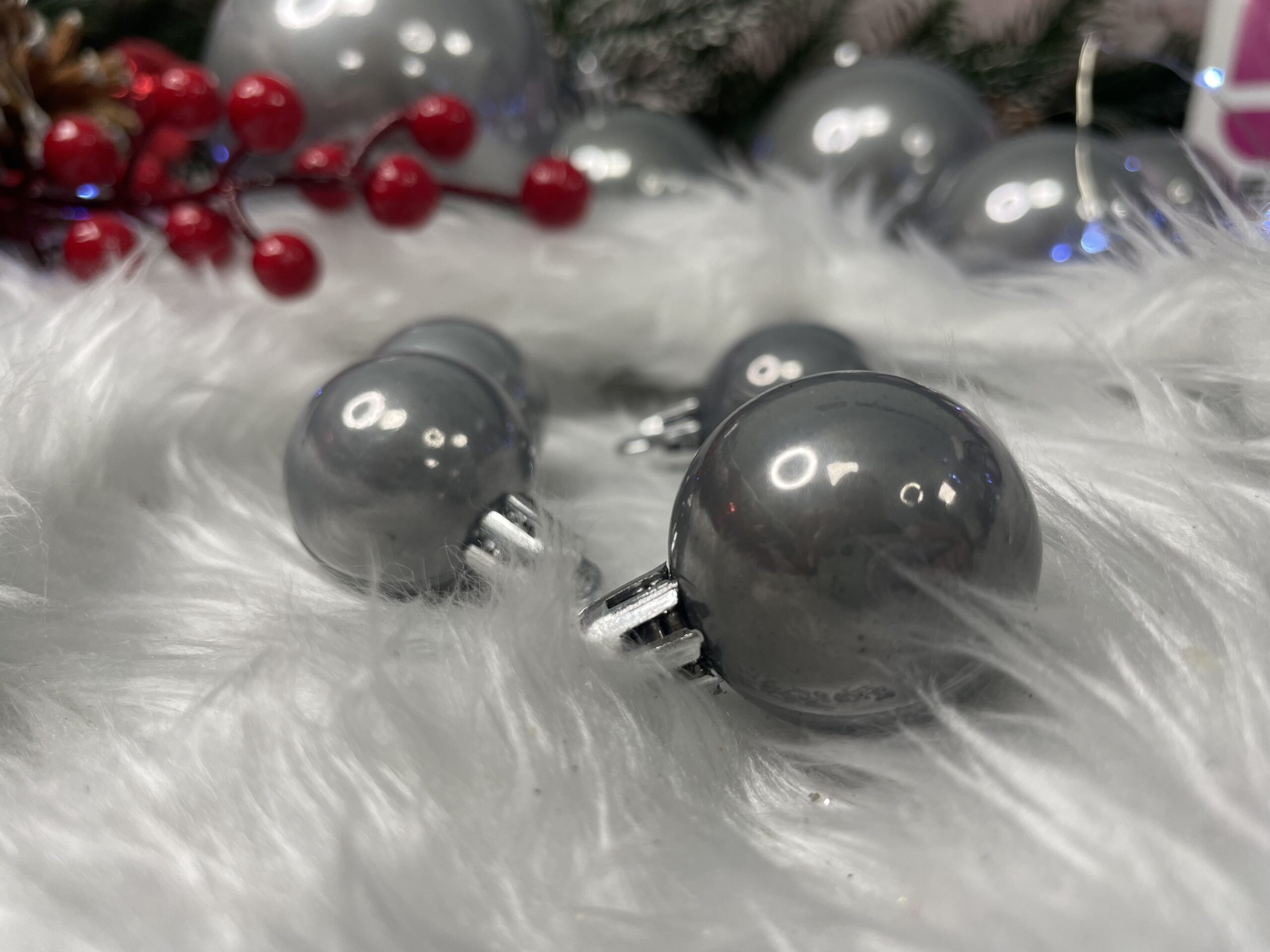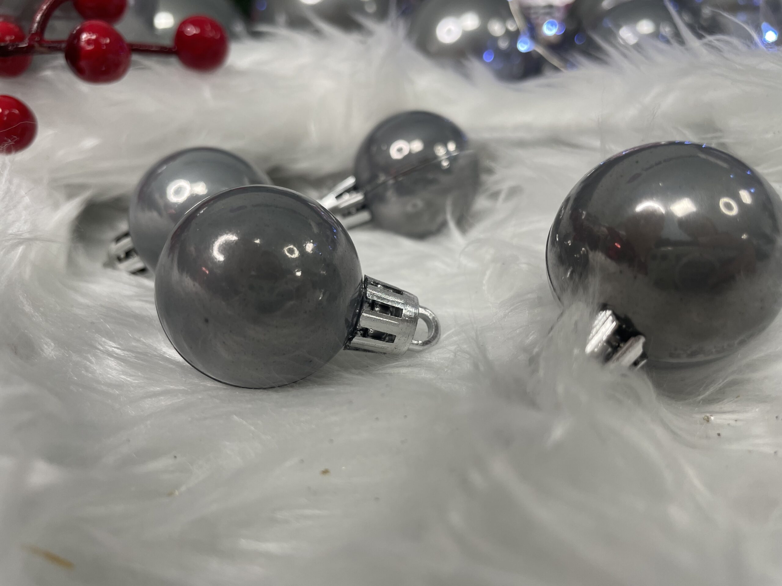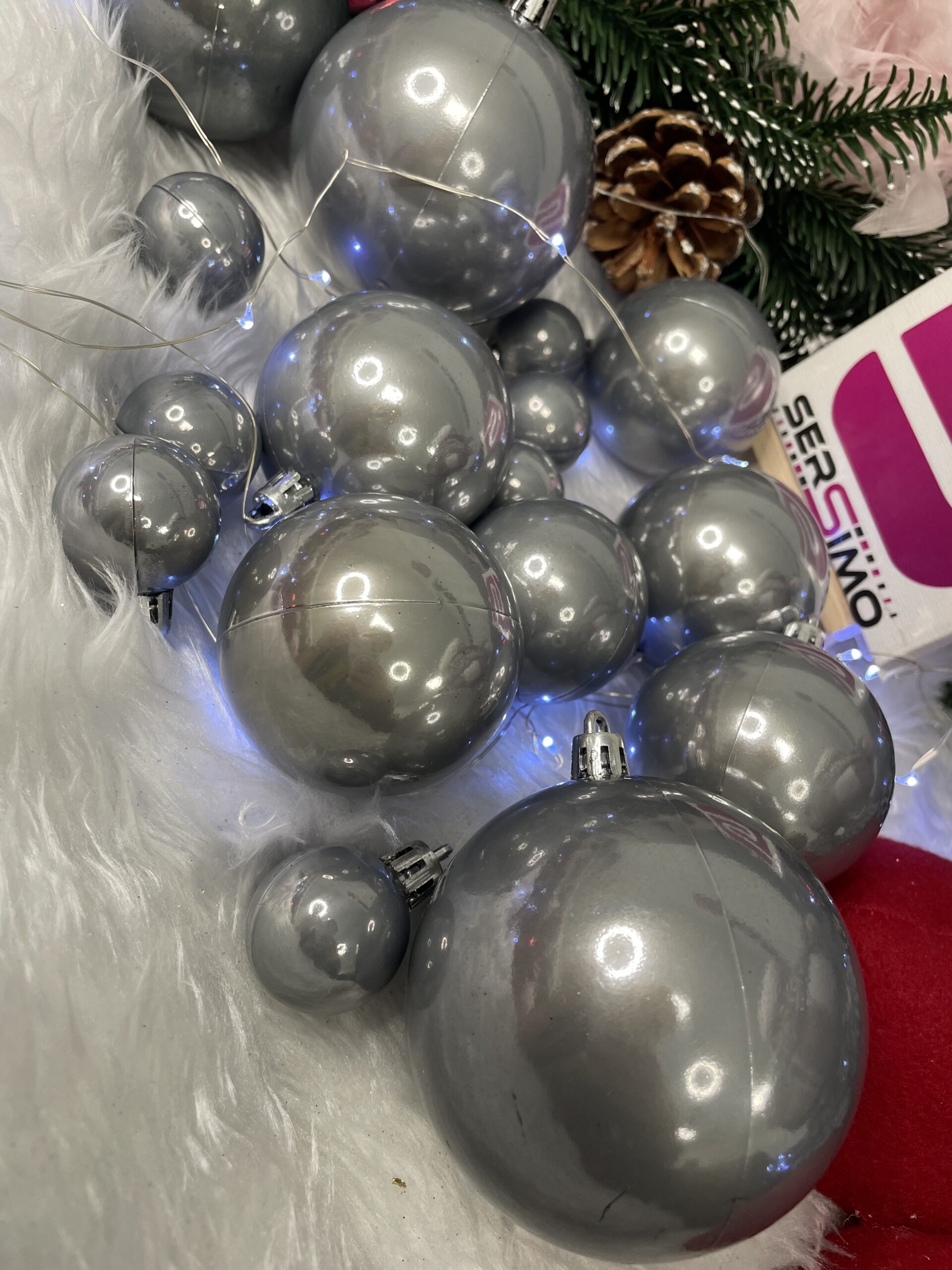 Globurile dintr-un set cu o singura culoare va vor permite sa creati un decor minunat pentru brad. Arata frumos in timpul zilei si dupa intuneric, insotite de iluminat festiv. Setul include snururi care va permit sa agatati globurile rapid si usor in locul dorit. Designul din plastic creste siguranta datorita materialului incasabil. Alegerea lor in locul globurilor de sticla va contribui la siguranta celor mici din casa. Diversele dimensiuni va permit sa creati modele inedite de aranjare a bradului de Craciun. Culoare: gri argintiu perla Material: plastic Cantitate: 37 bucati globuri (+/- 1 bucata) Setul include urmatoarele globuri Mini 10x - 3 cm Mic 10x - 5 cm Mediu 8x - 6 cm Mare 5x - 7 cm Maxi 4x - 8 cmAtentie! Numarul de piese din set poate varia + - 1 buc.