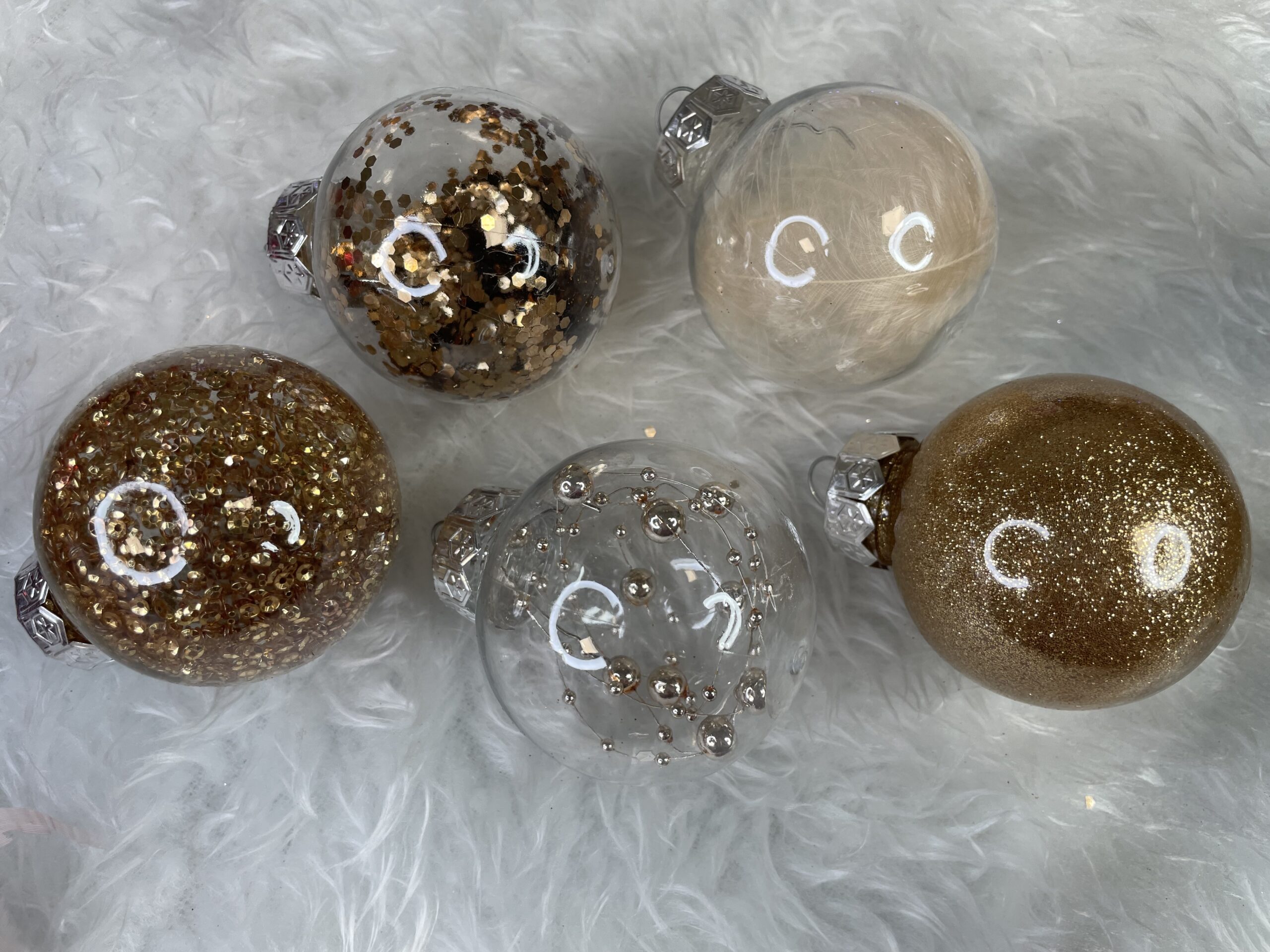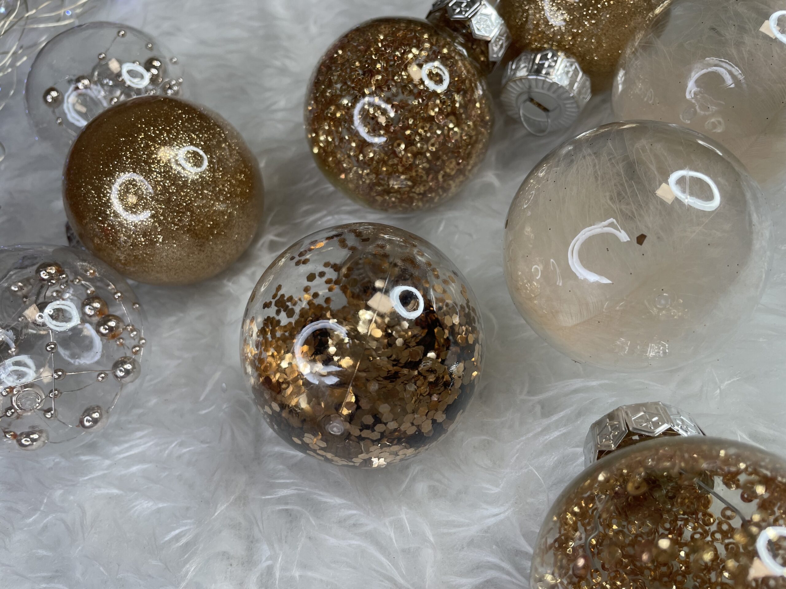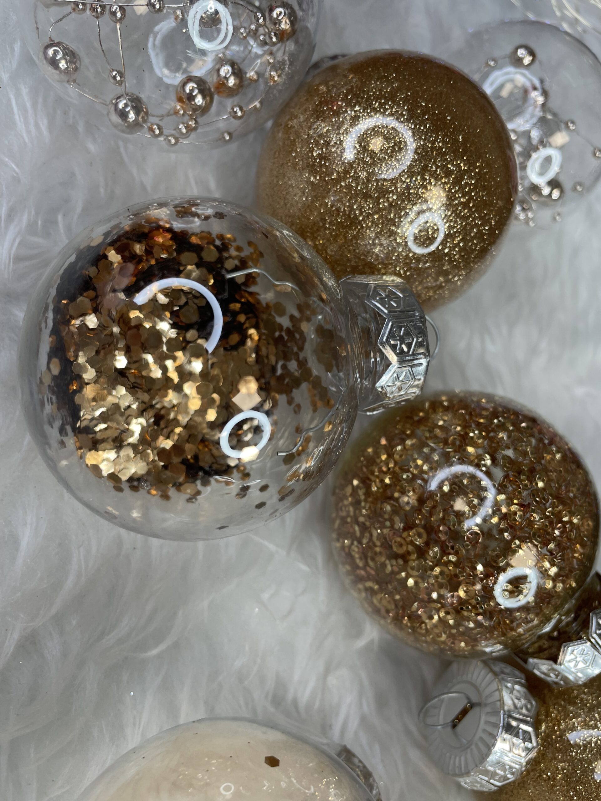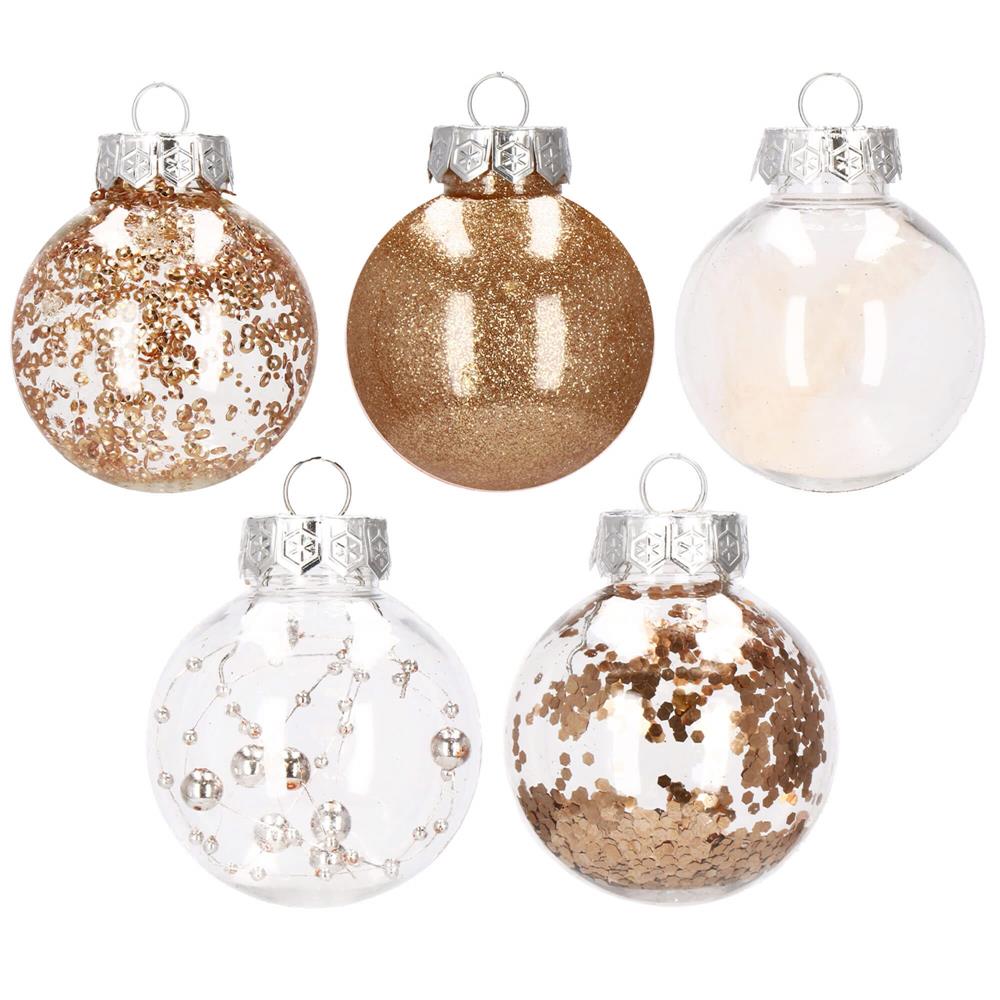 Set globuri de Craciun Inedit, 30 bucati, 6cm, transparente si auriu