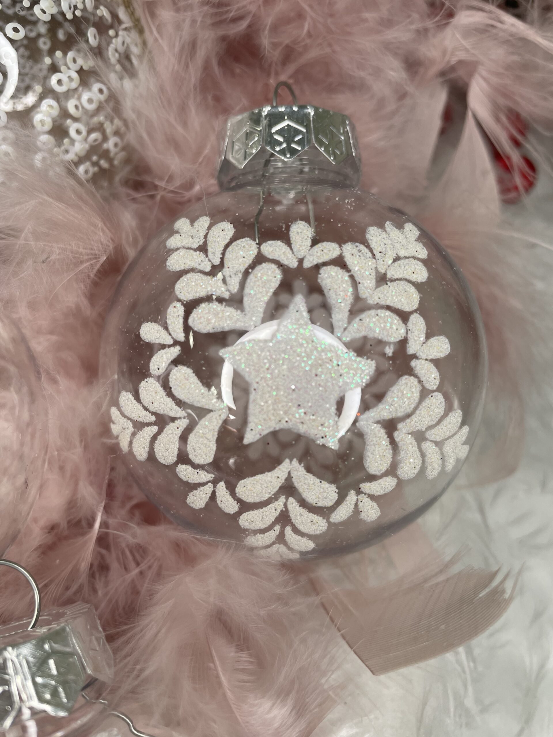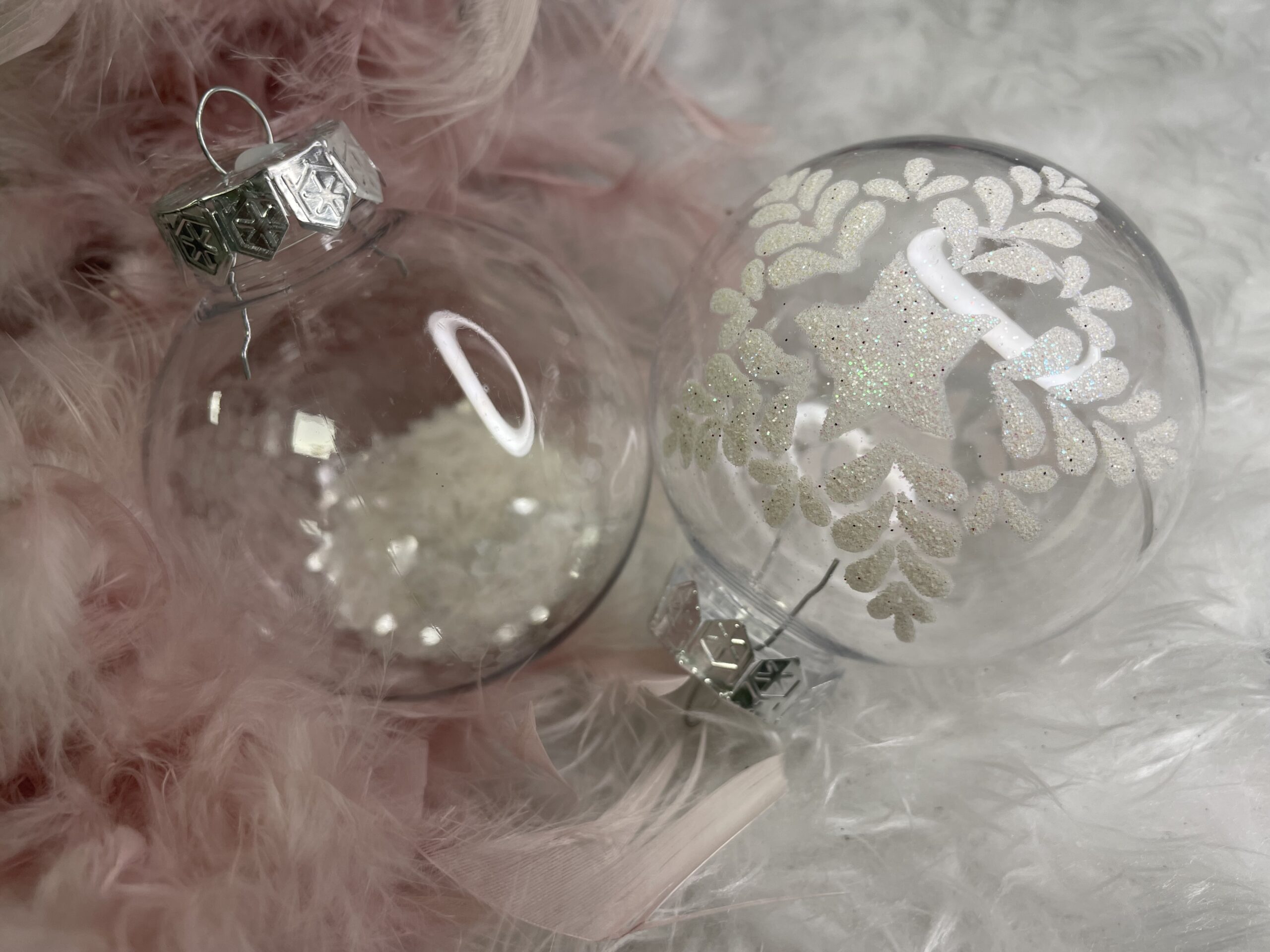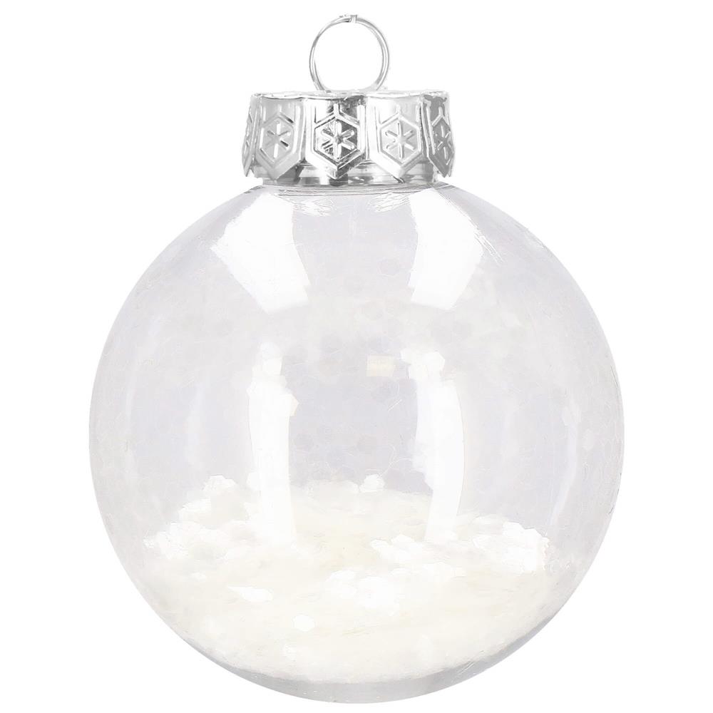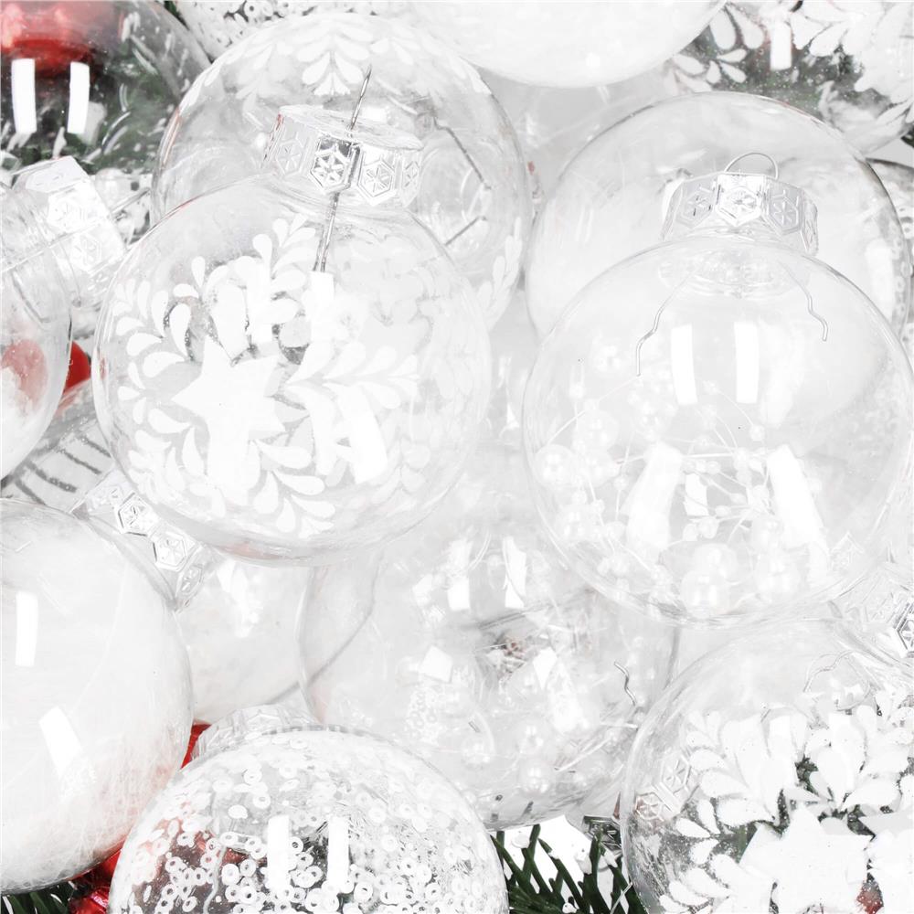 Set globuri de Craciun Inedit, 30 bucati, 7cm, transparente si alb