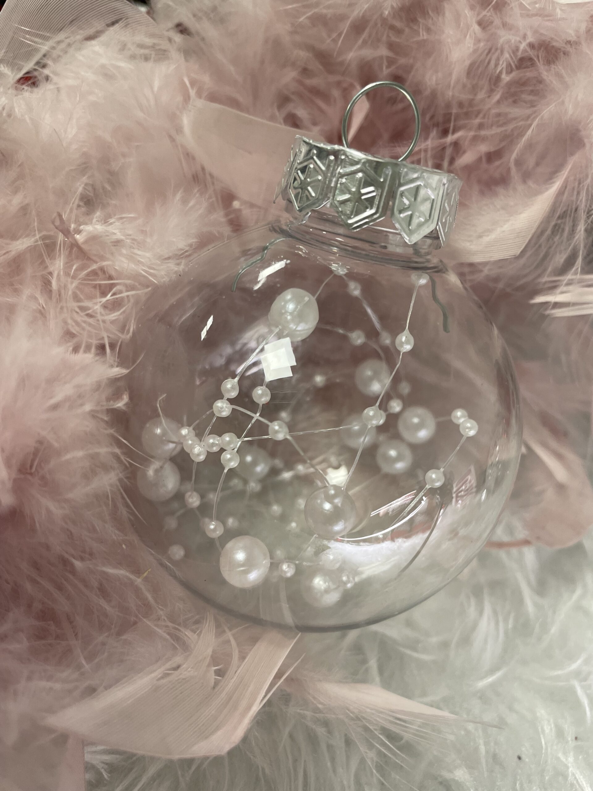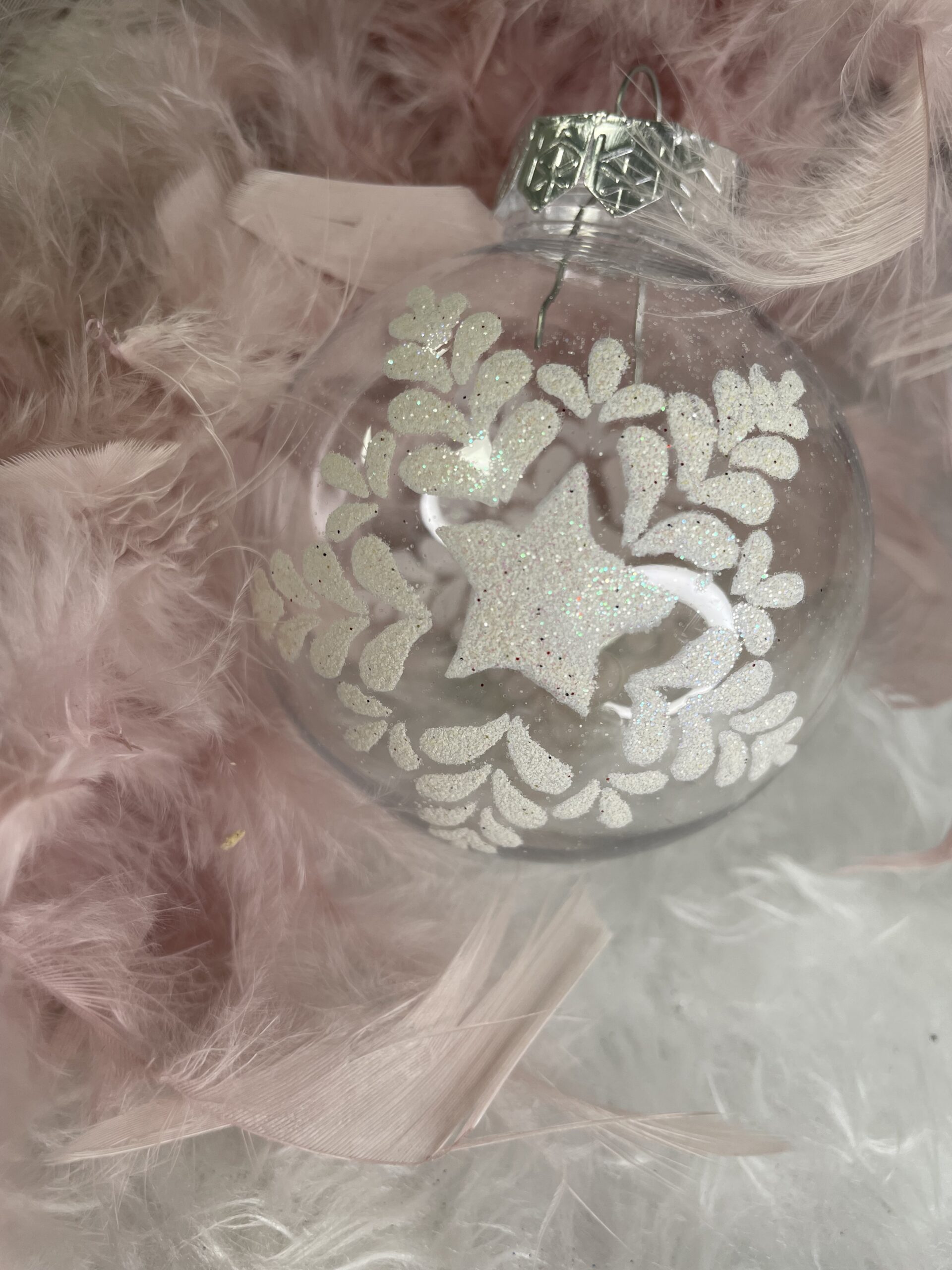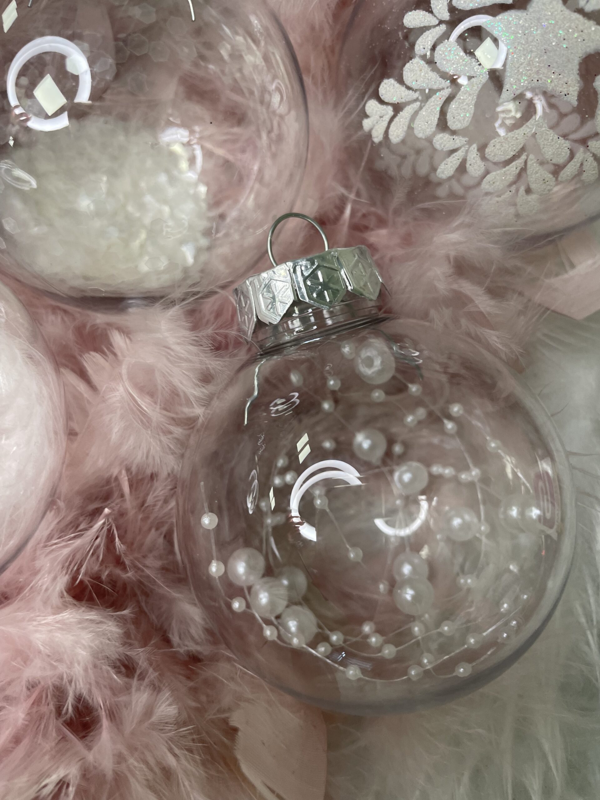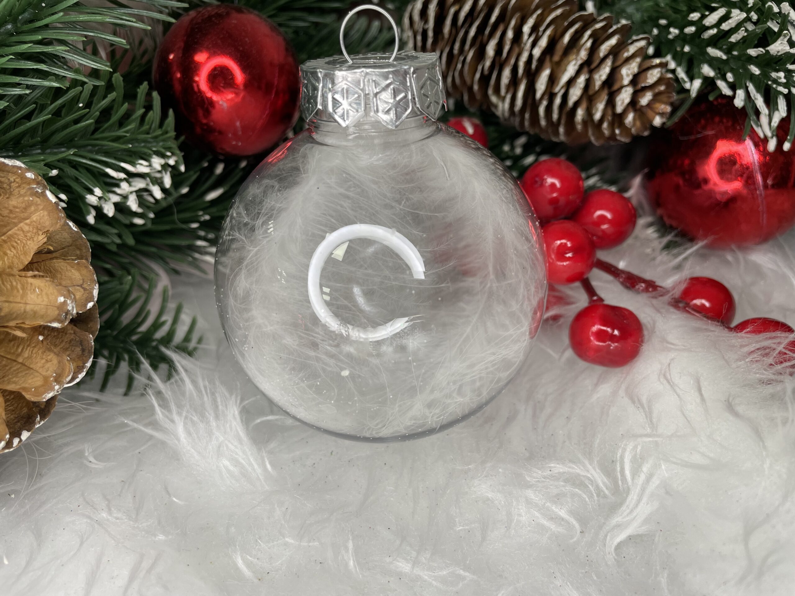 Set globuri de Craciun Inedit, 30 bucati, 7cm, transparente si alb