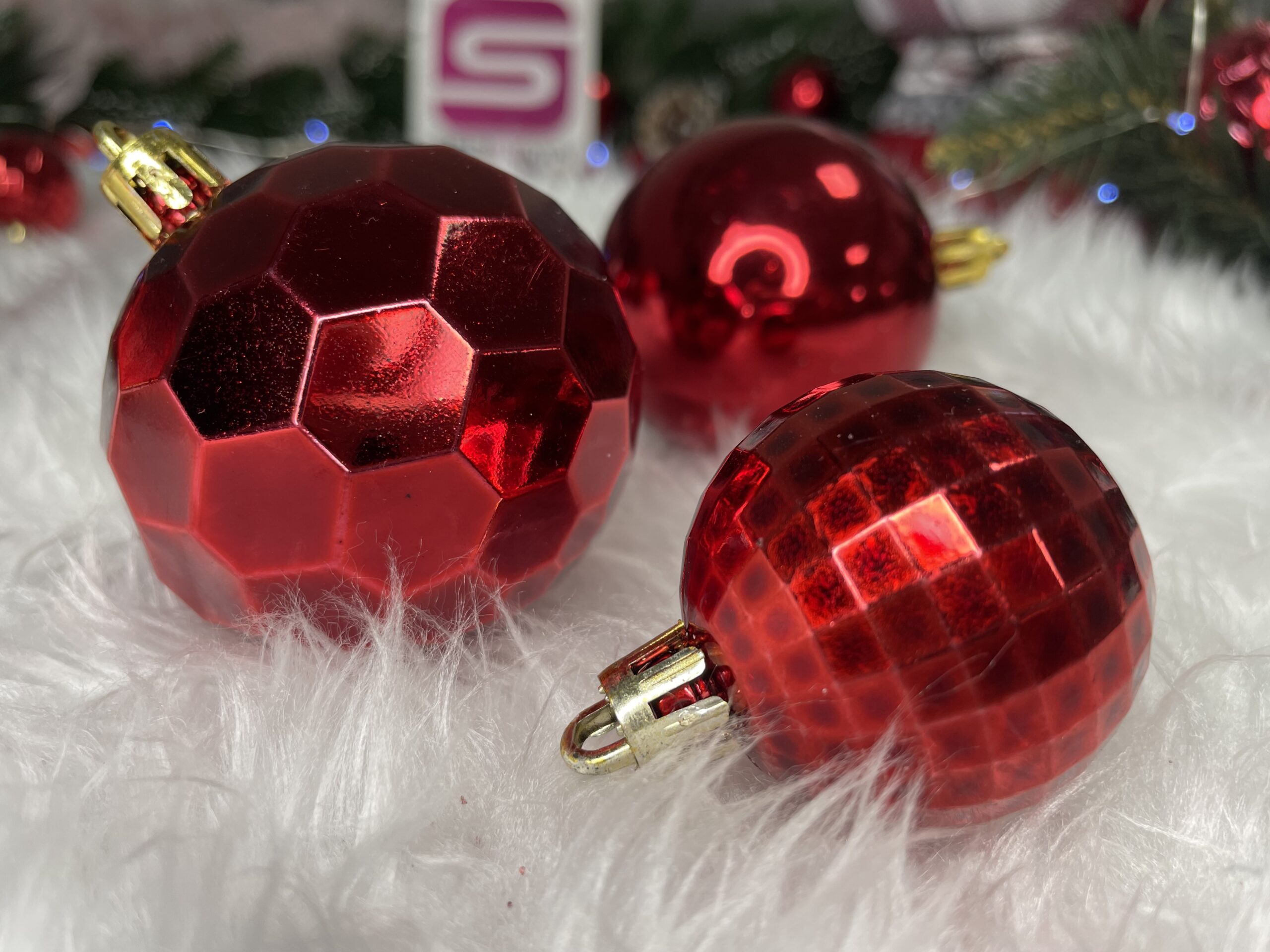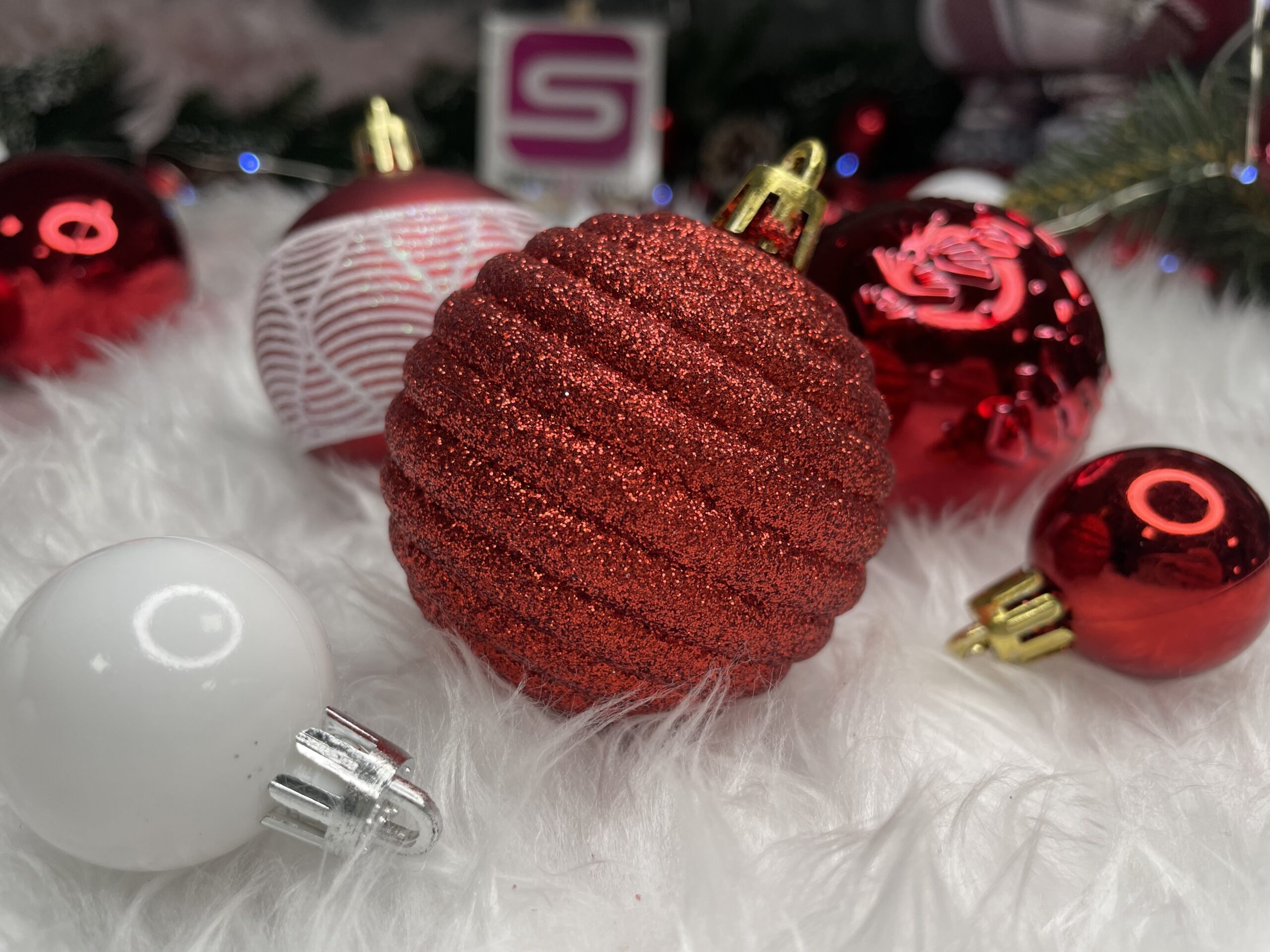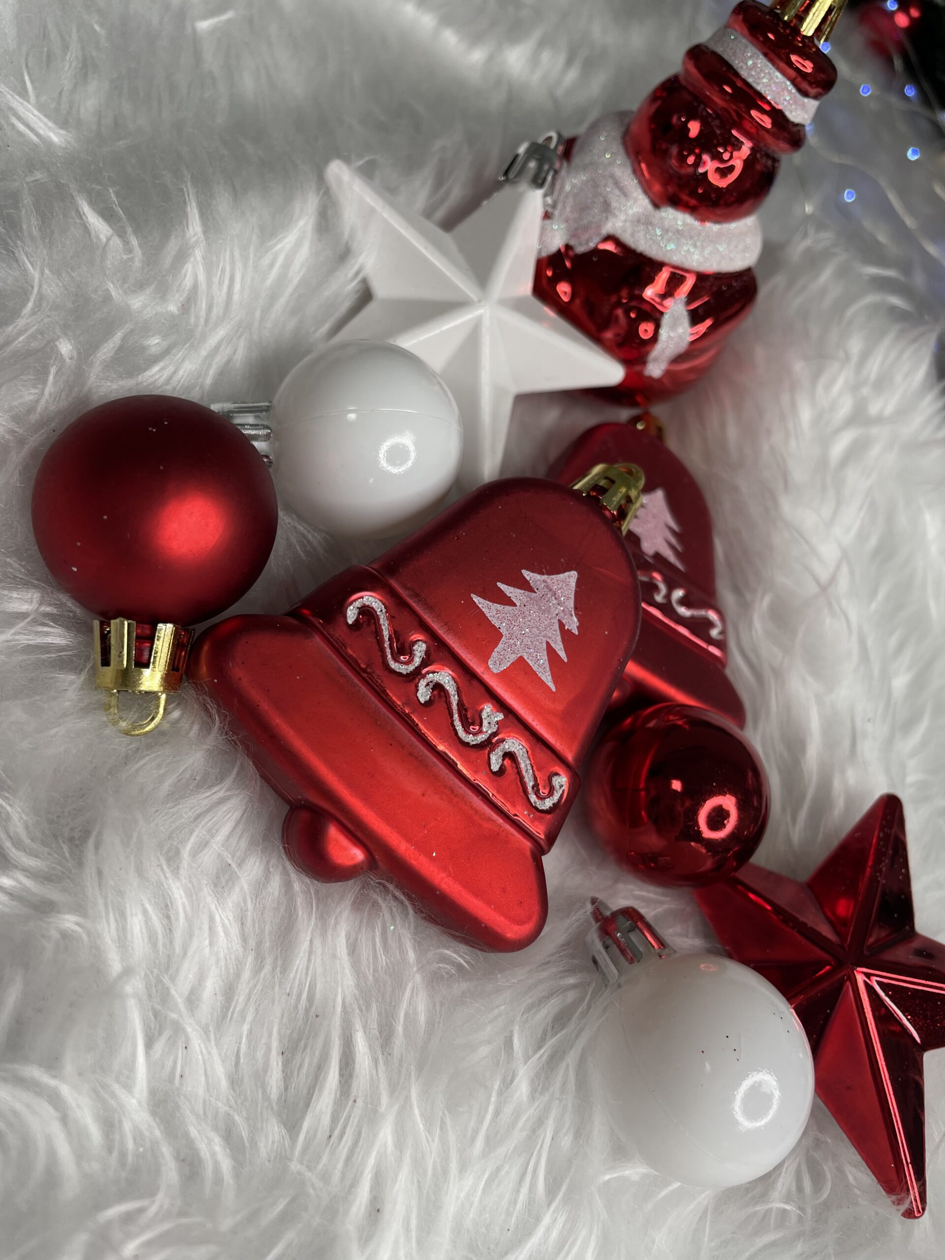 Globurile si decoratiunile dintr-un set cu o singura culoare va vor permite sa creati un decor minunat pentru brad. Arata frumos in timpul zilei si dupa intuneric, insotite de iluminat festiv. Setul include snururi care va permit sa agatati globurile rapid si usor in locul dorit. Designul din plastic creste siguranta datorita materialului incasabil. Alegerea lor in locul globurilor de sticla va contribui la siguranta celor mici din casa. Diversele dimensiuni va permit sa creati modele inedite de aranjare a bradului de Craciun. Culoare: alb rosu Material: plastic Cantitate: 105 piese Modele: 10 modele diferite incluse in set Diametru: diverse marimi Setul include urmatoarele piese 16x mini glob- 3 cm 24x glob mic mata - 4 cm 12x glob disco mic -4cm 2x om de zapada - 8 cm 4x stea rosie lucioasa - 6 cm 4x stea alba, mata - 6 cm 6x clopotel - 7 cm 8x turturi rosii cu sclipici - 12 cm 4x turturi albe cu sclipici - 12 cm 4x sclipici mare - 6 cm 8x glob de covoras mare - 6 cm 4x glob de covoras mare cu decor - 6 cm 4x glob lucios mare - 6 cm 2x glob mare geometric lucioasa - 6 cm 2x glob lucios cu model in relief - 6 cm 1x stea cu sclipici pe varf - 15 cm Atentie! Numarul de piese din set poate varia + - 1 buc.